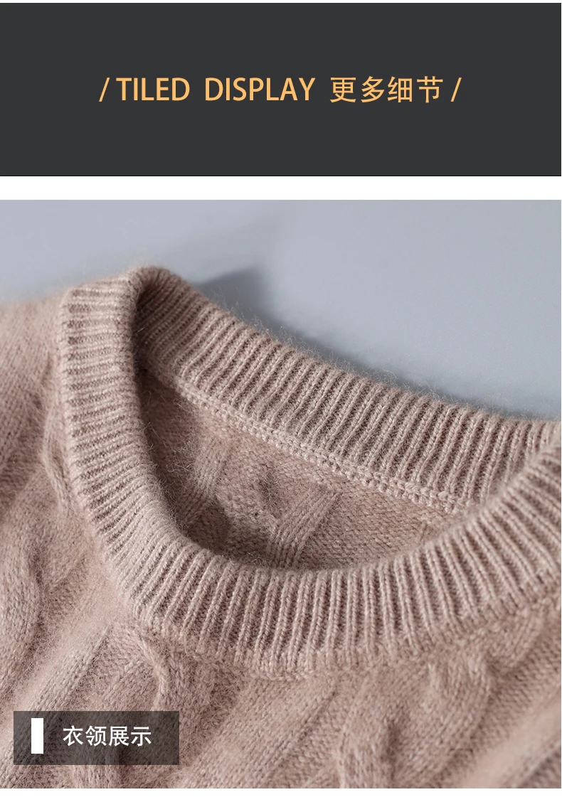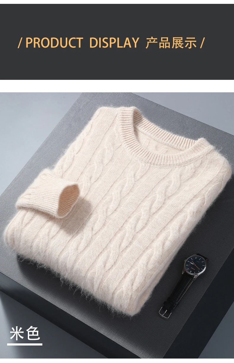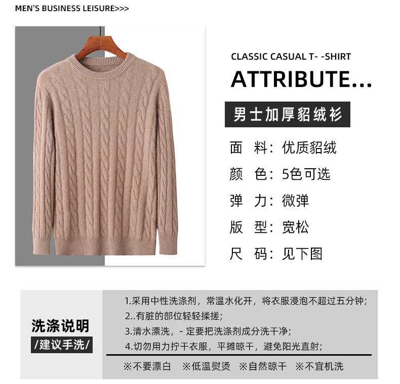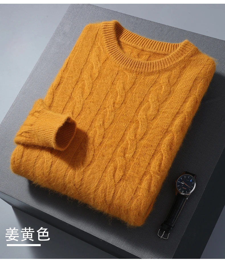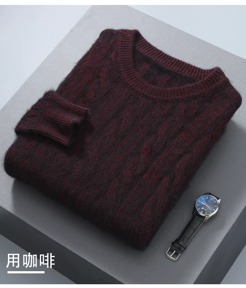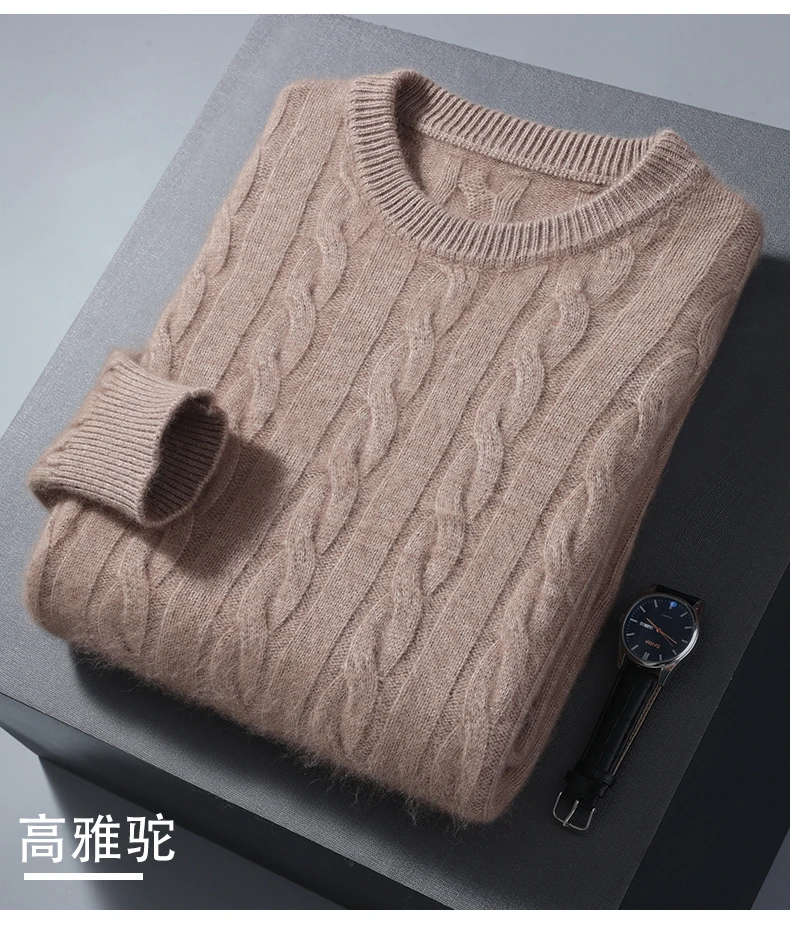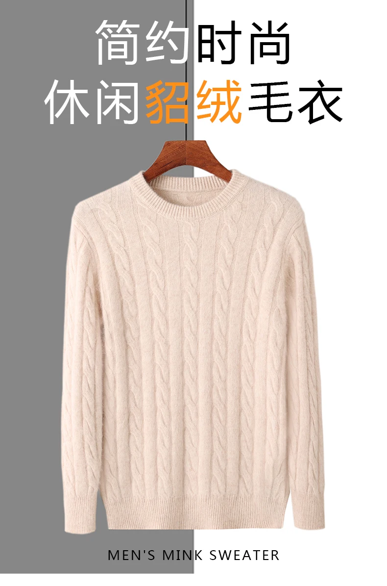 100% Pure Mink Cashmere Sweaters Men's Round Neck Thickened Pullover Autumn and Winter Warm Casual Knitted Large Size Twist Tops