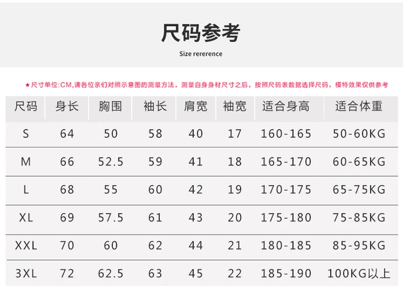 S: Bust: 100cm, Length: 64cm, Sleeve Length:58cm, Shoulder width:40cm