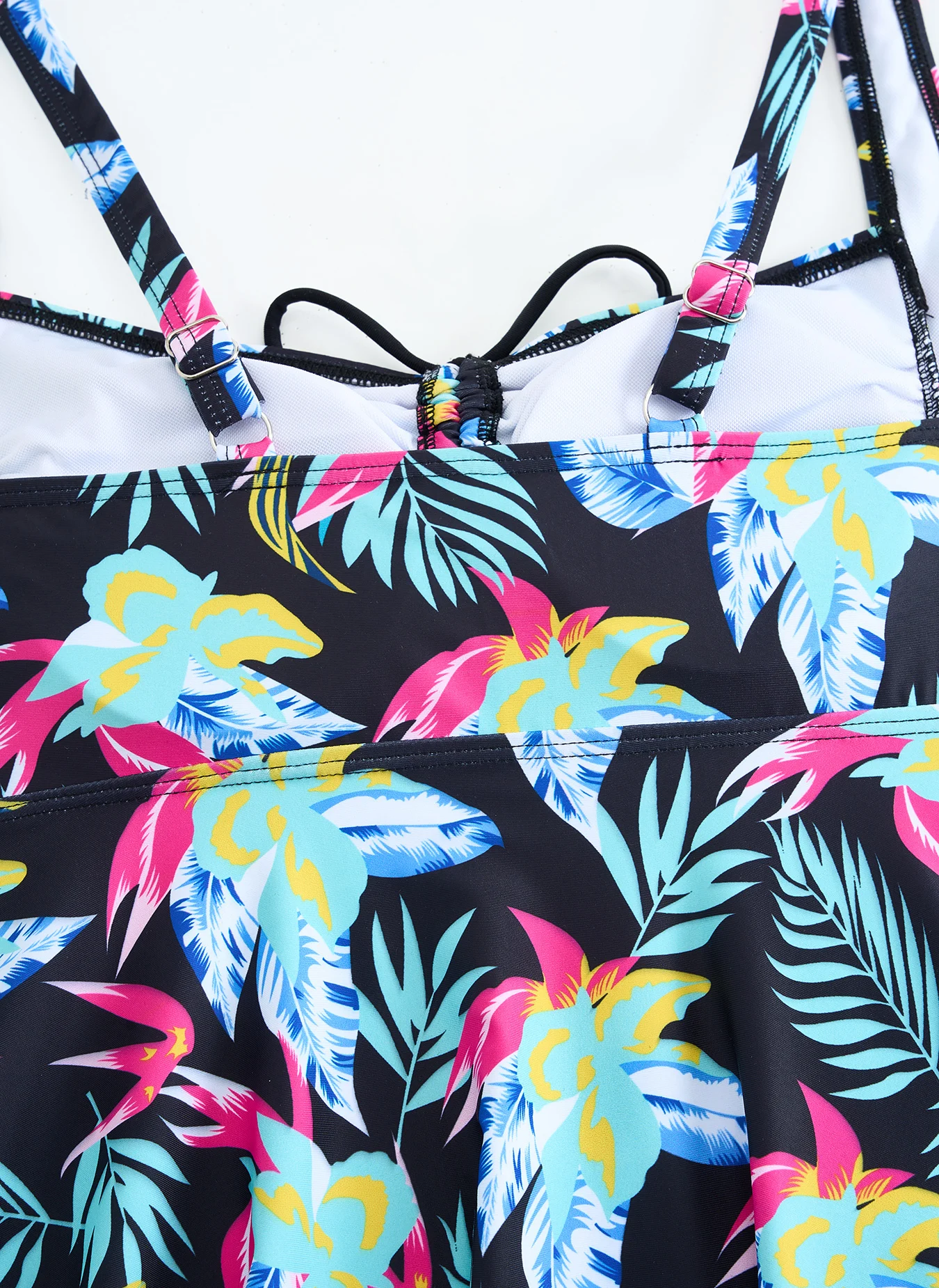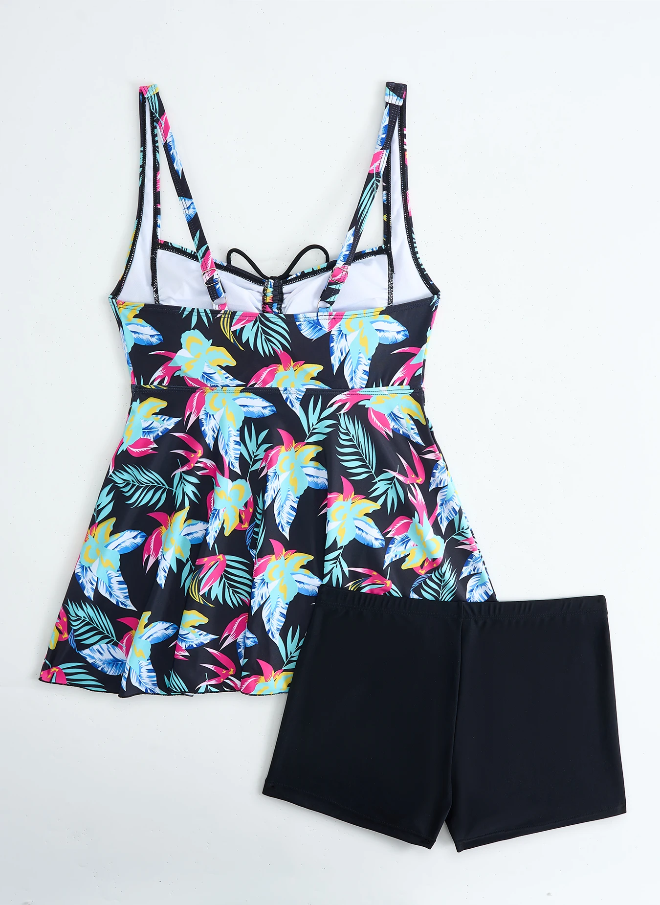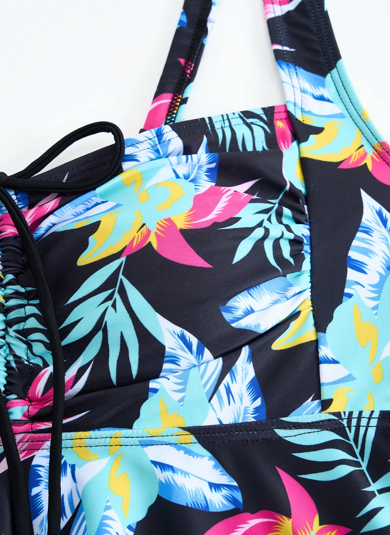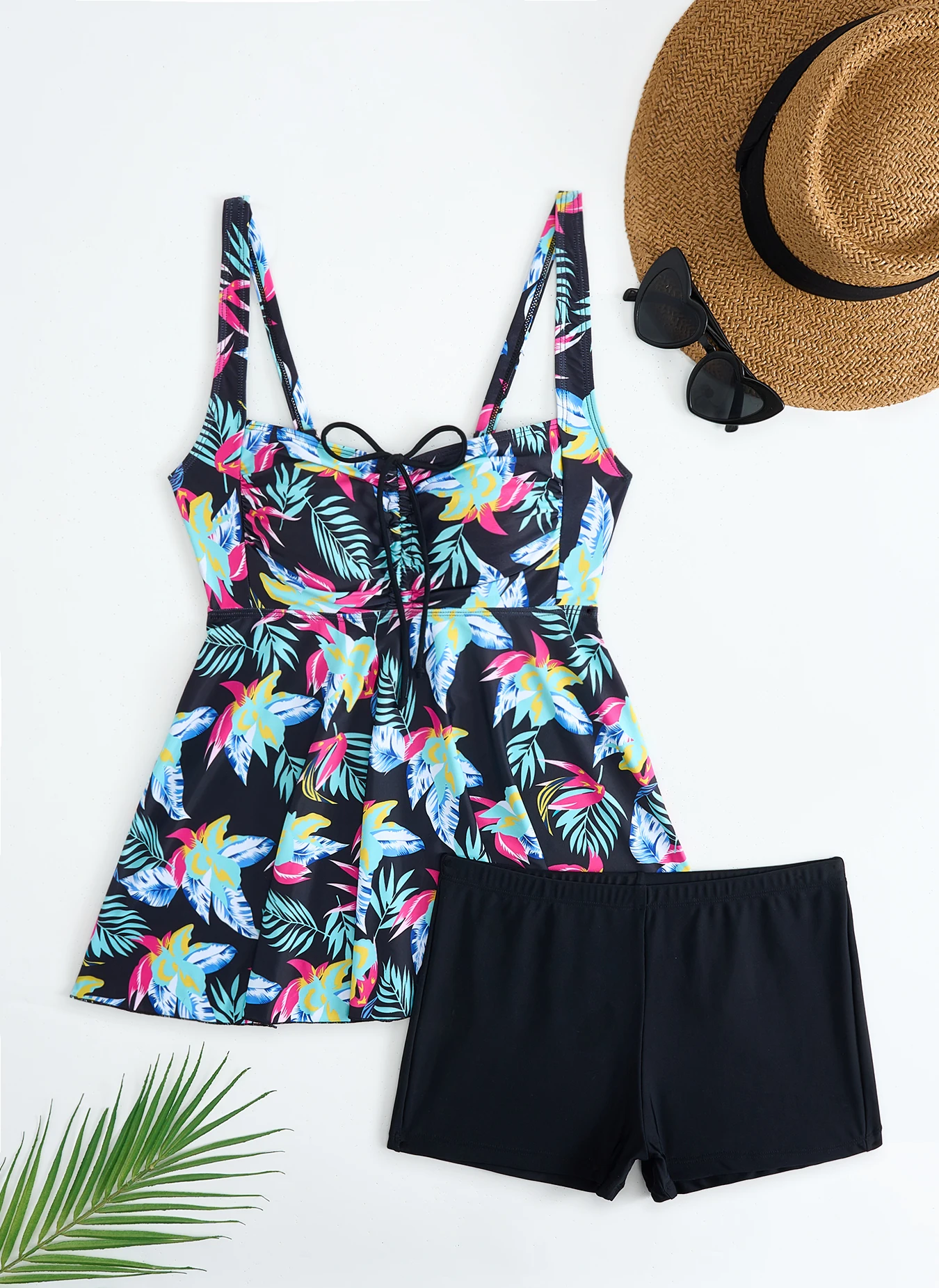 2025 Drawstring Tankini Set Two Piece Swimsuit Box Short Women Floral Printed Swimwear Female Bathing Suit Beachwear Swimming