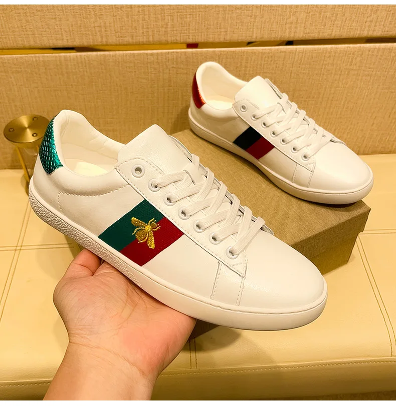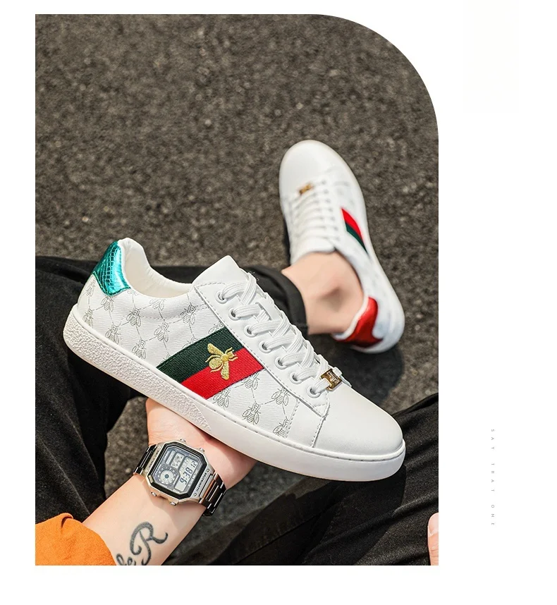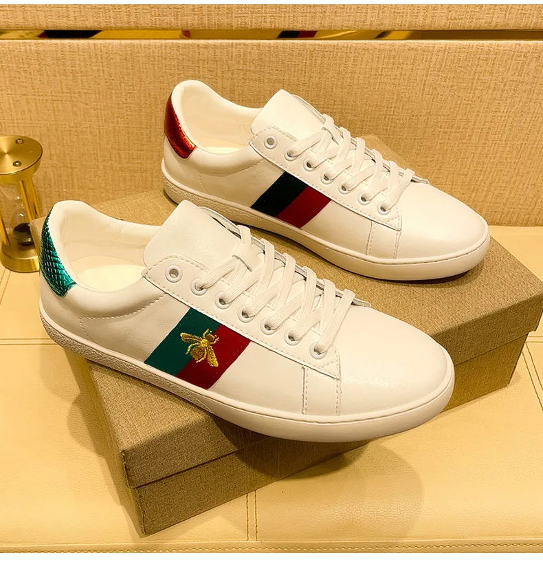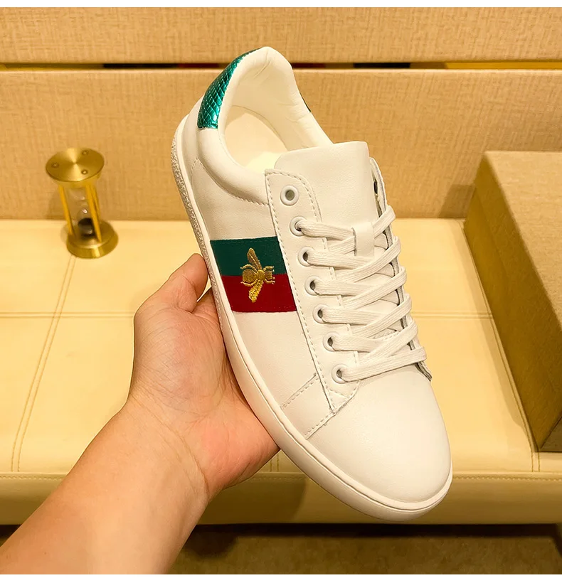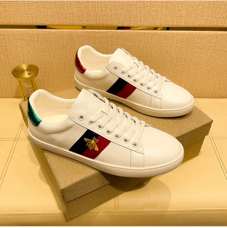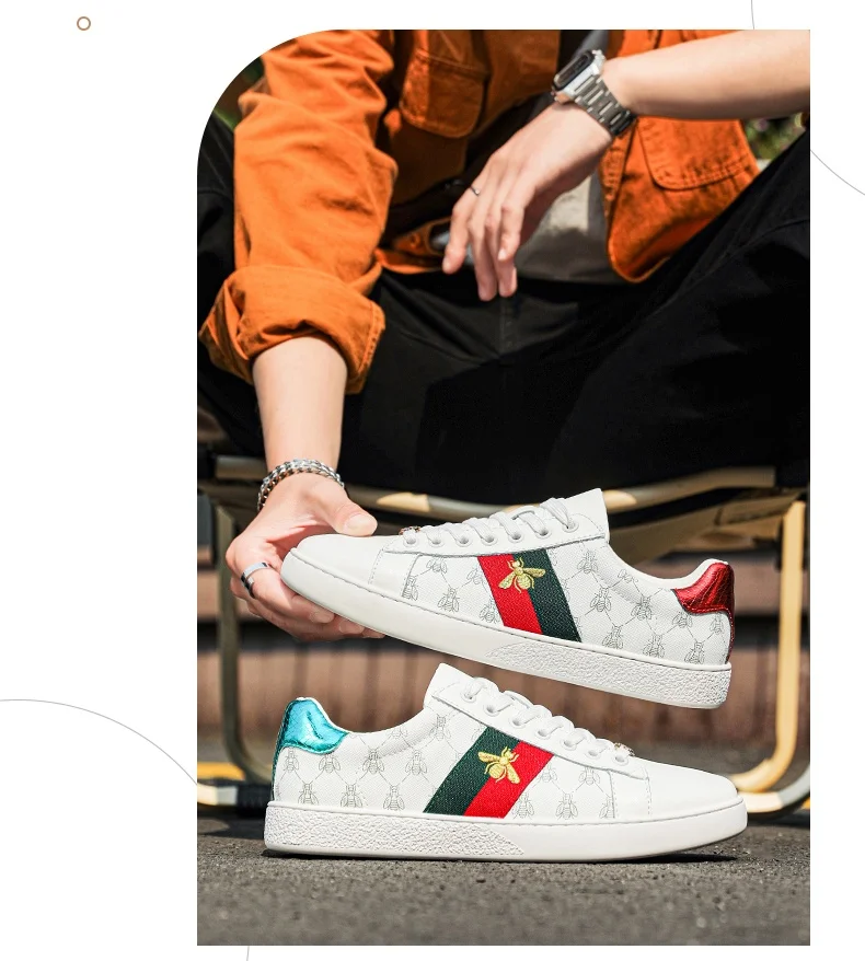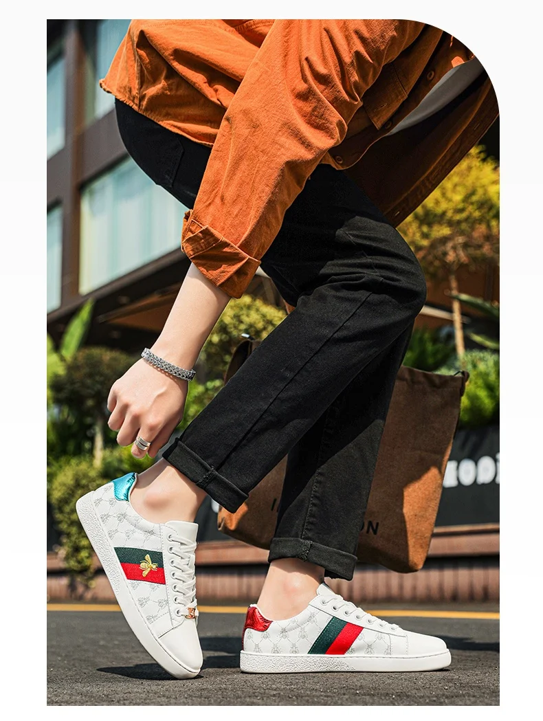2025 High Quality Comfy Leather Skateboard Shoes Man Classic White Embroidered Bee Shoes Men Trainers Luxury Brand Sneakers Men