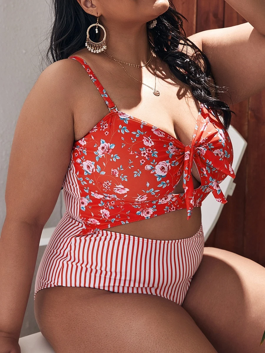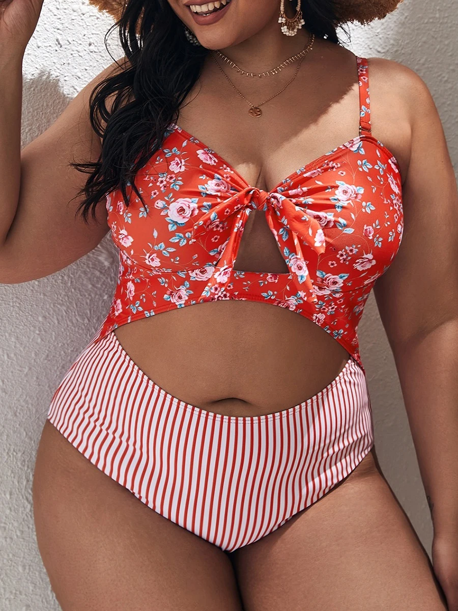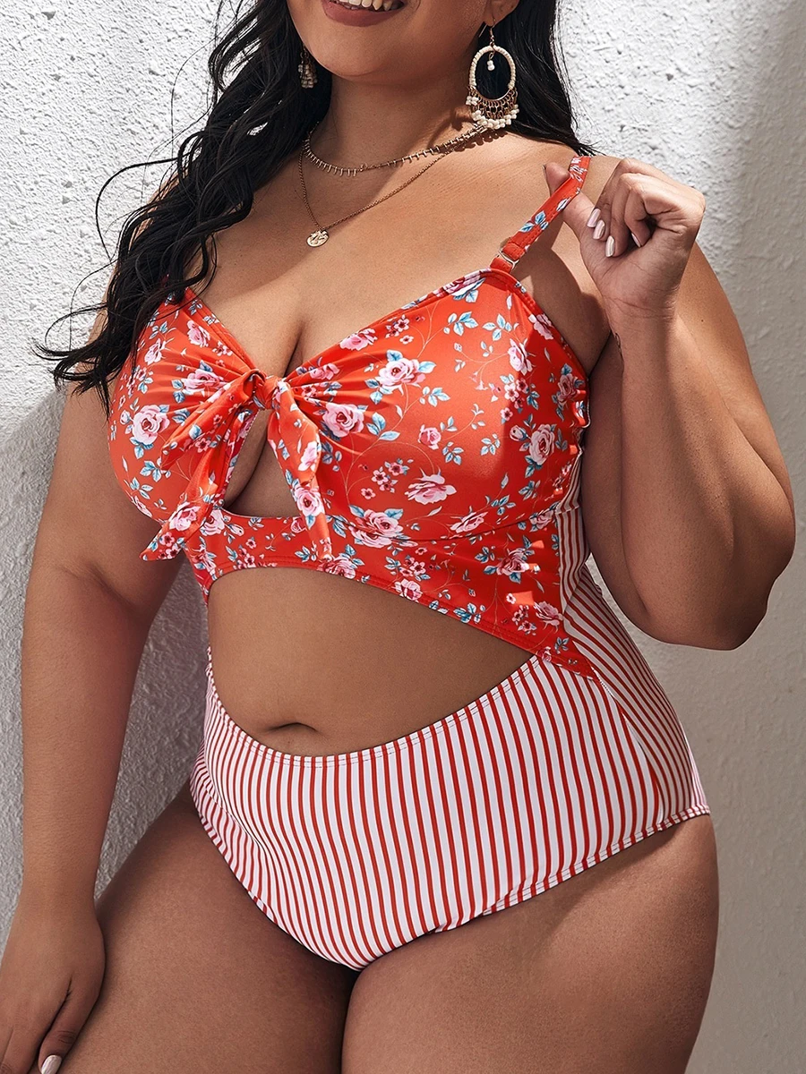 2025 Large Plus Size Swimsuit Women One Piece Printed Hollow Out Swimwear Female Bathers Bathing Swimming Swim Suit Beachwear