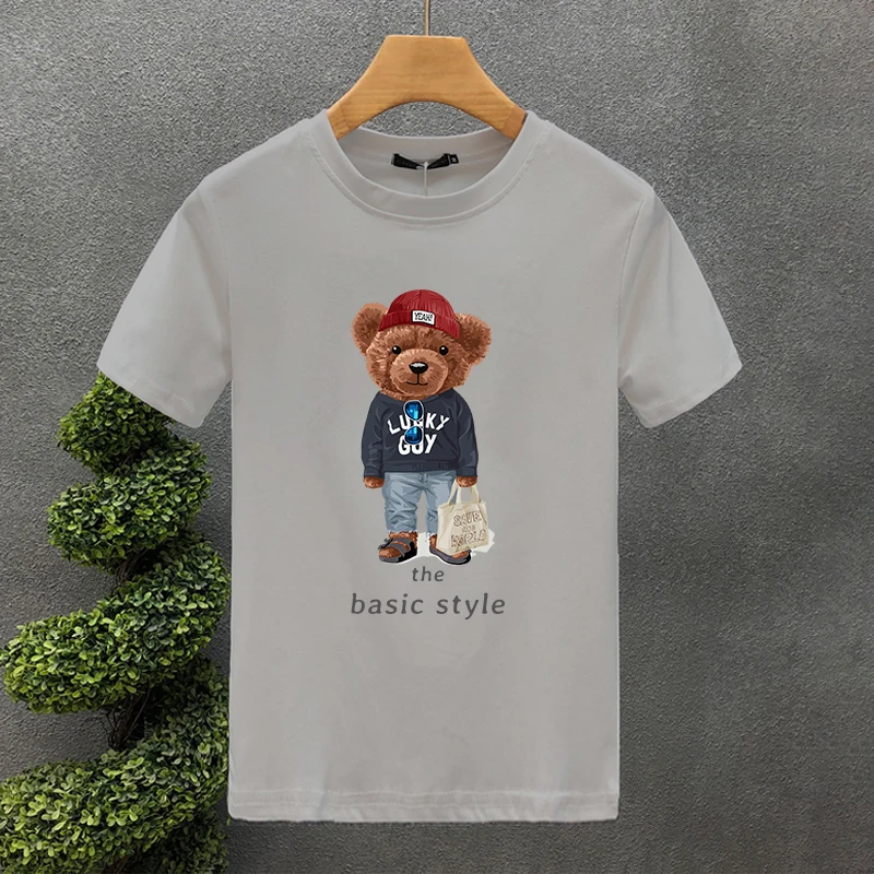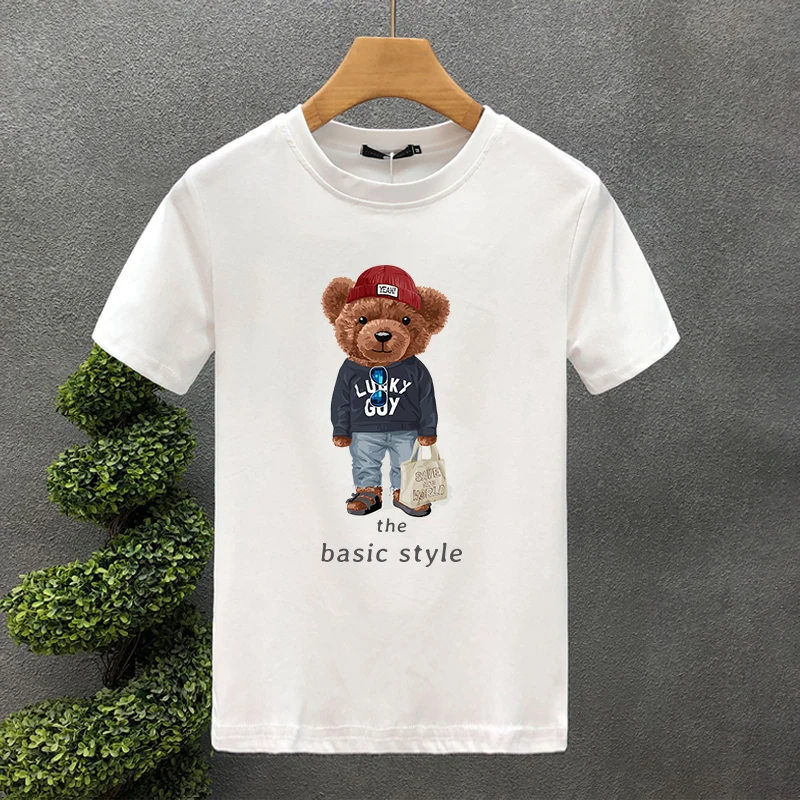 2025 Luxury Funny Bear For Men's T-shirt Cotton High Quality Creativity Printing Summer Tees Brand Tops Unisex Oversized S-7XL