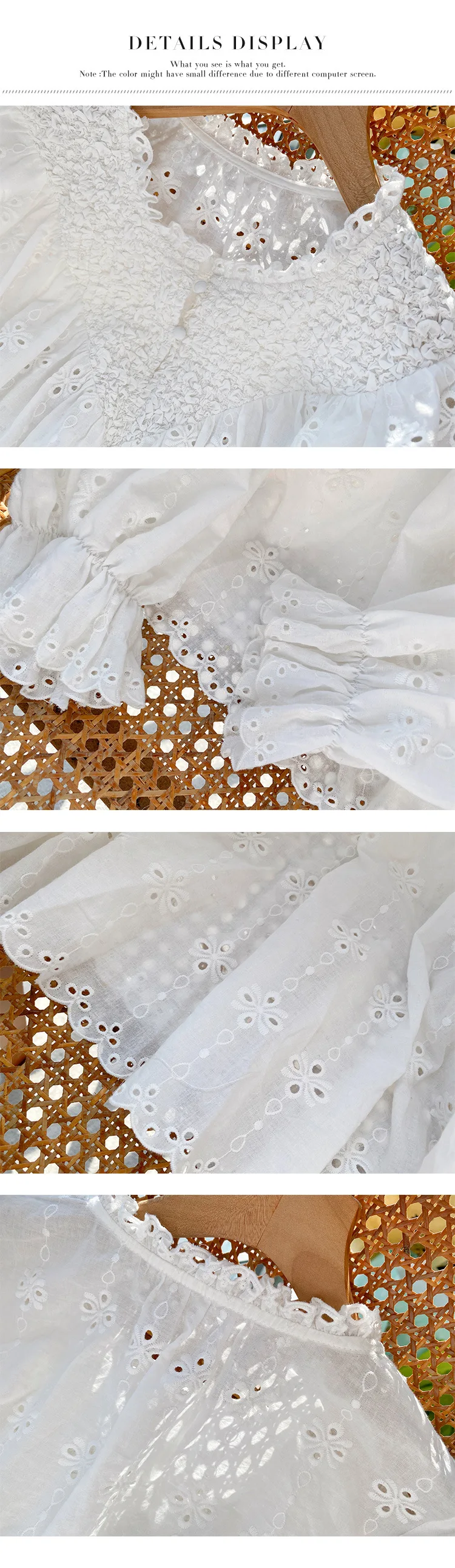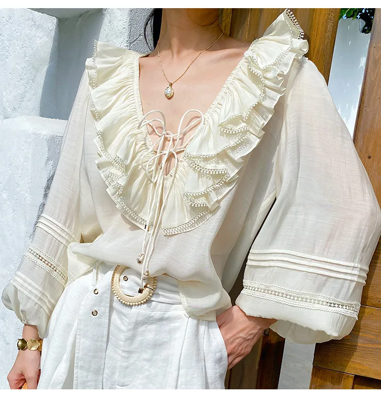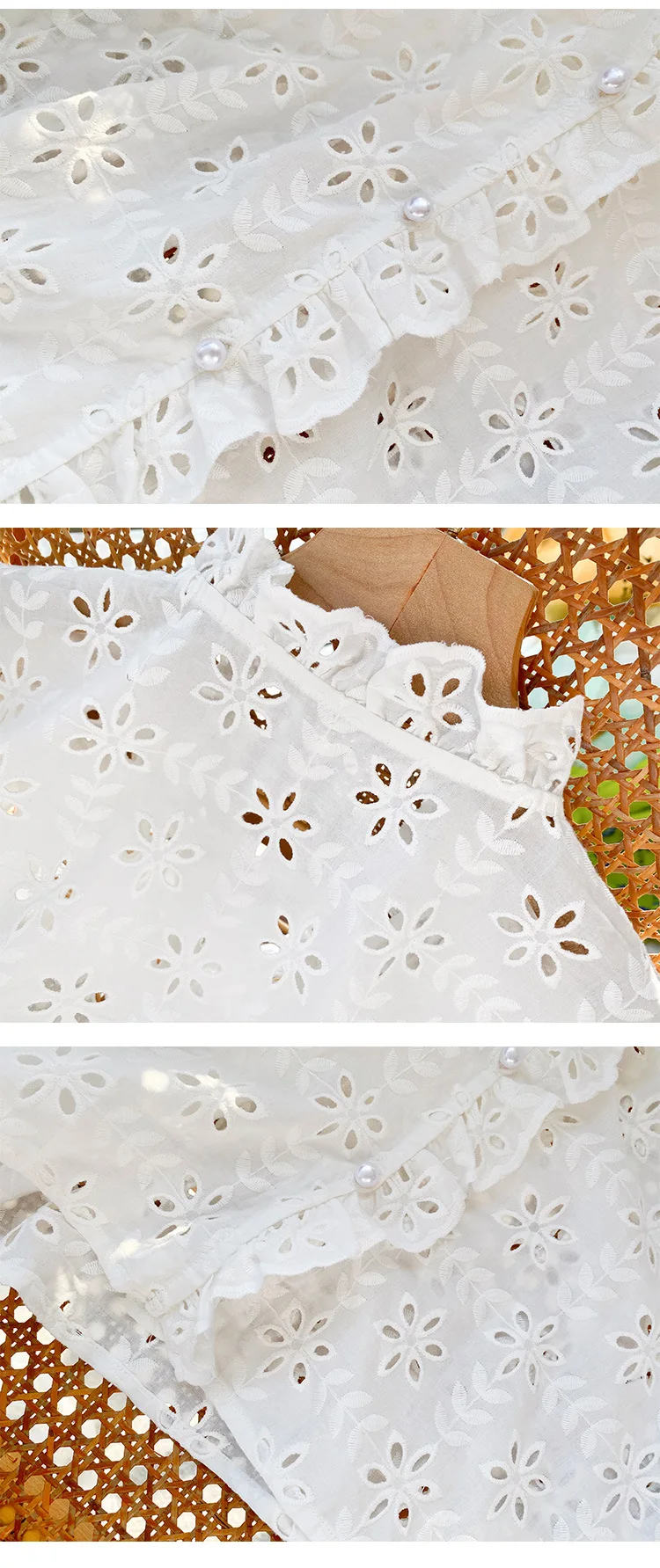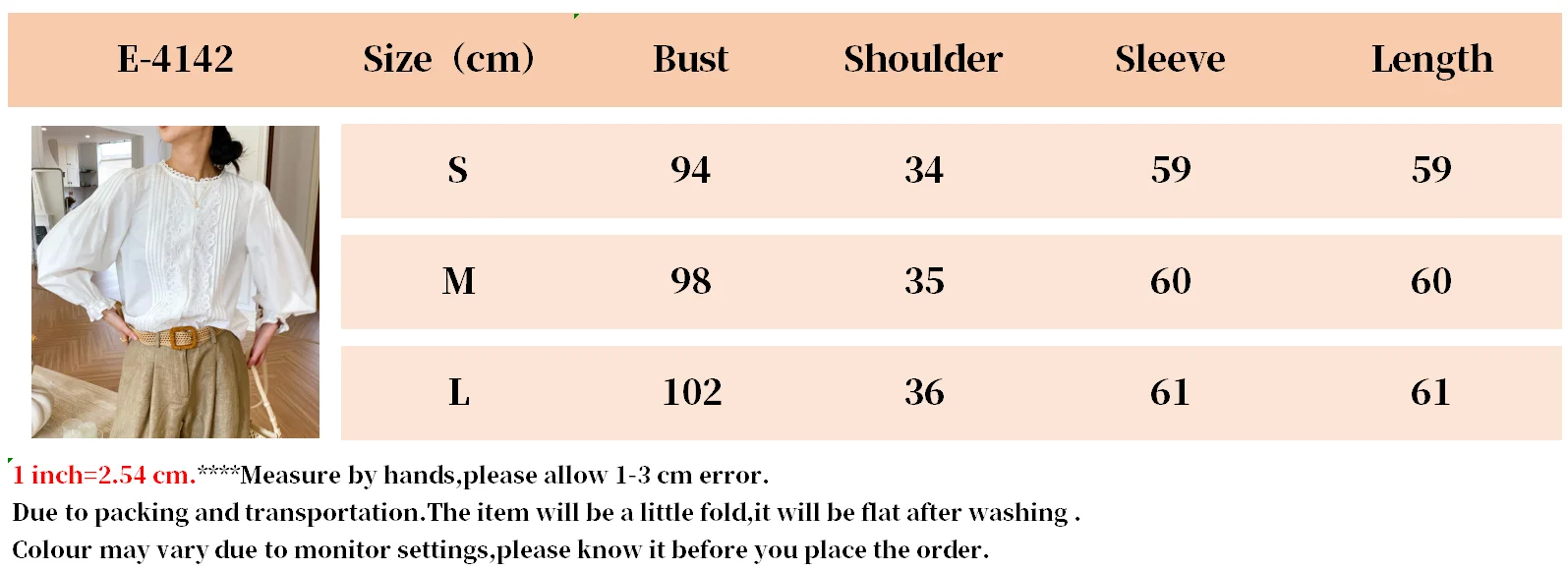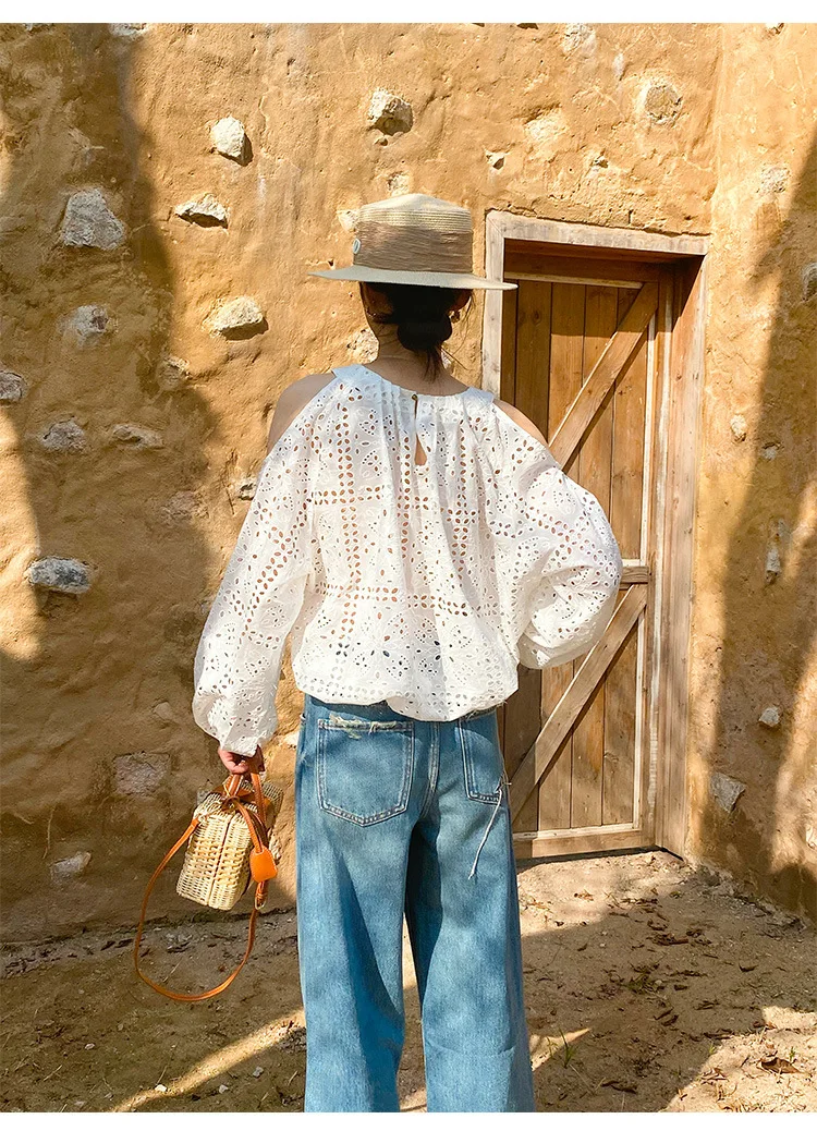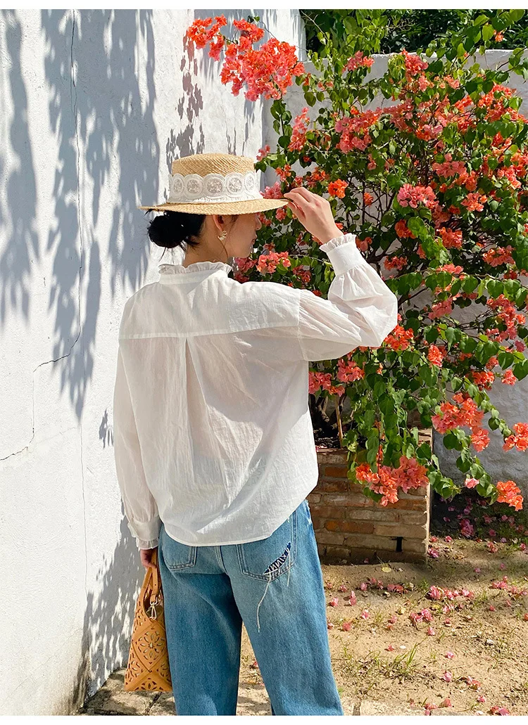 2025 Spring New Women's French White Shirt Splicing Lace Embroidery Design Ladies Shirt Long Sleeve Casual Holiday Beach Tops