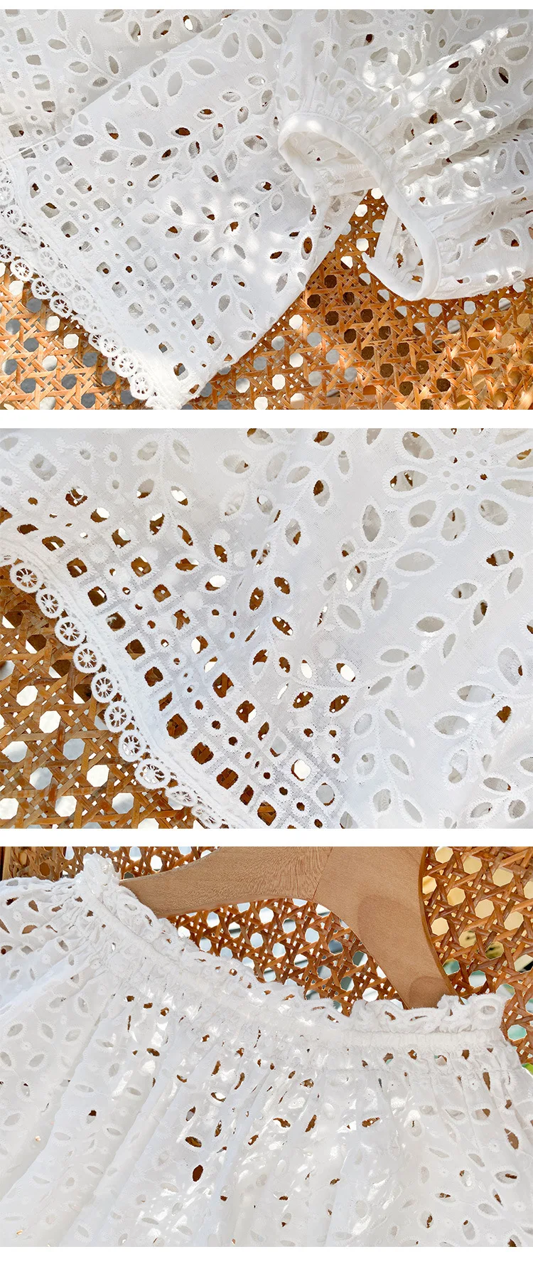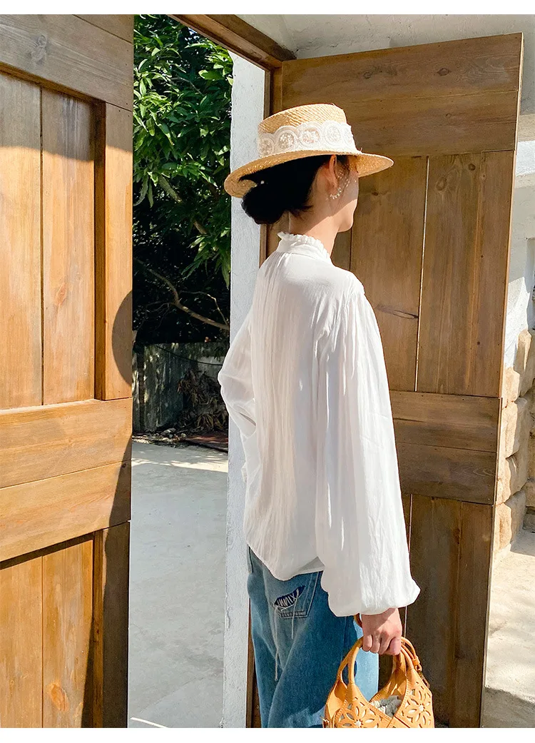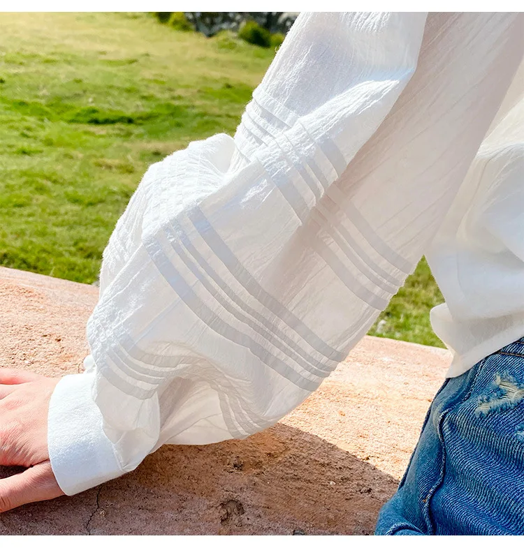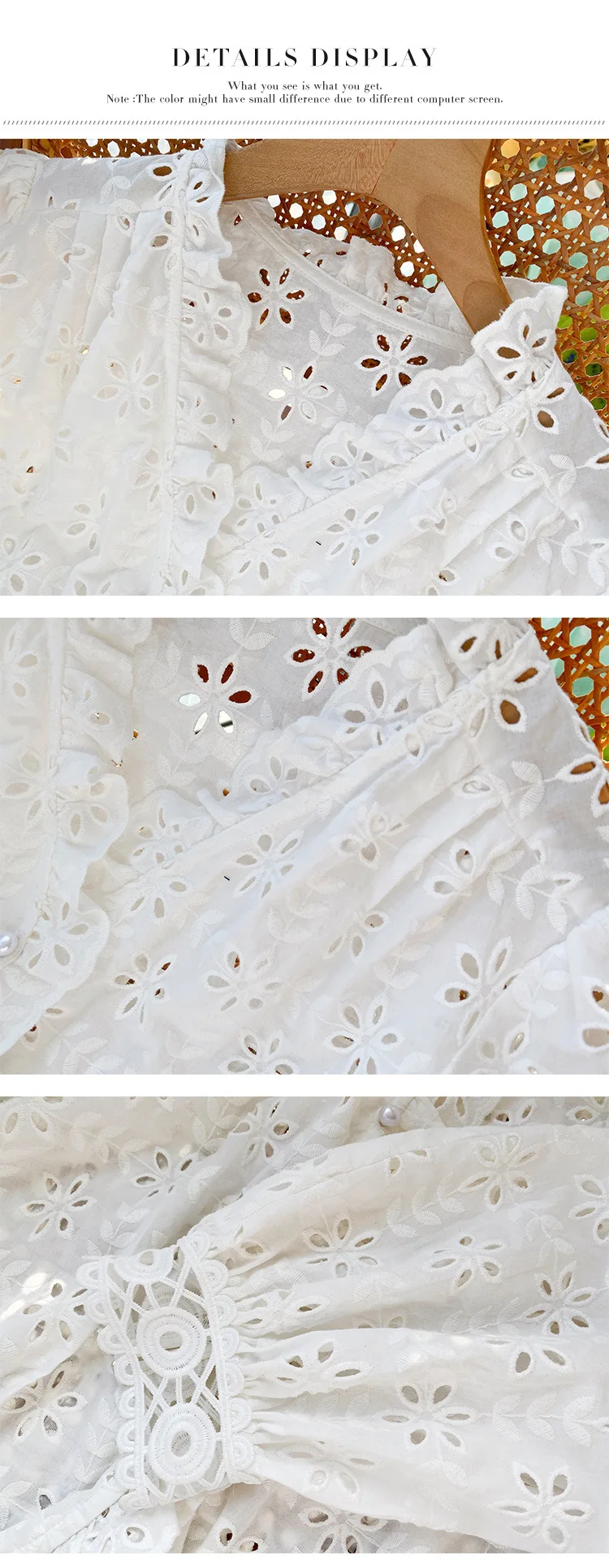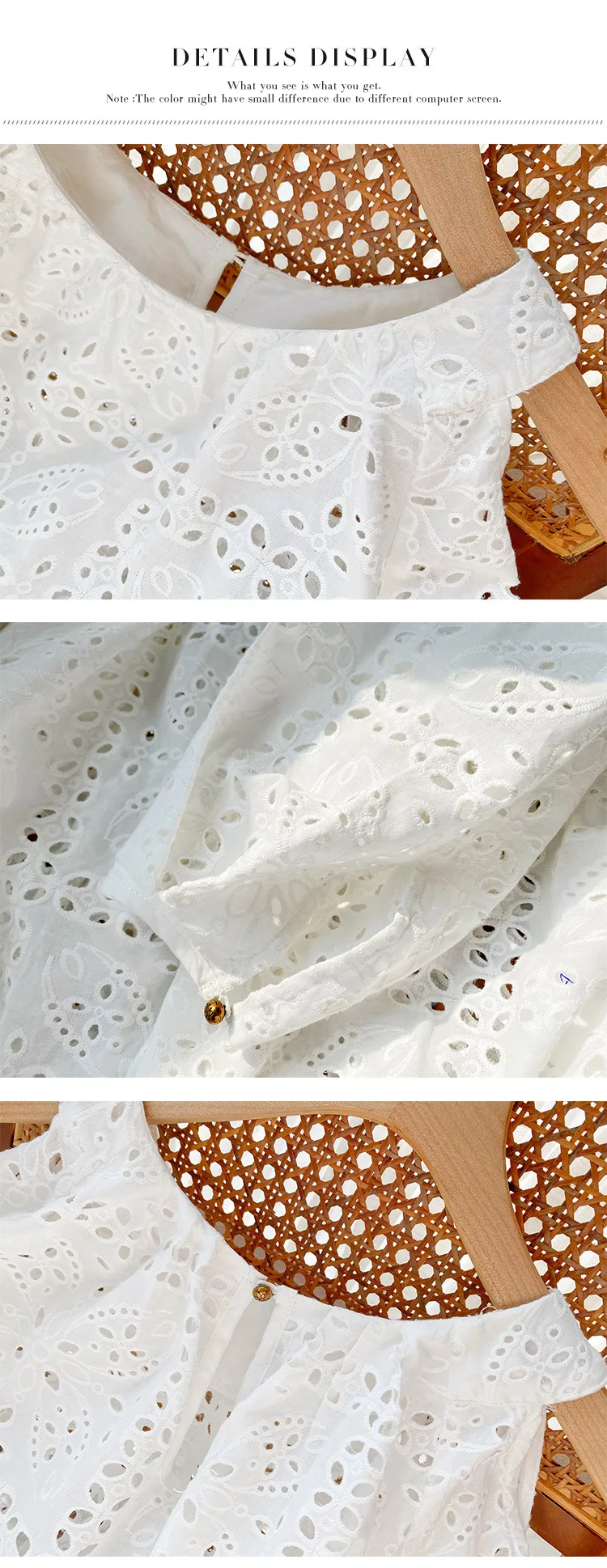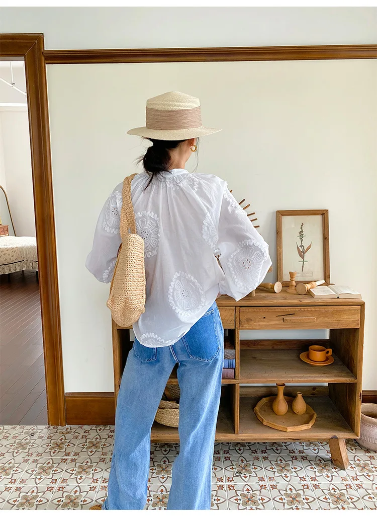 2025 Spring New Women's French White Shirt Splicing Lace Embroidery Design Ladies Shirt Long Sleeve Casual Holiday Beach Tops