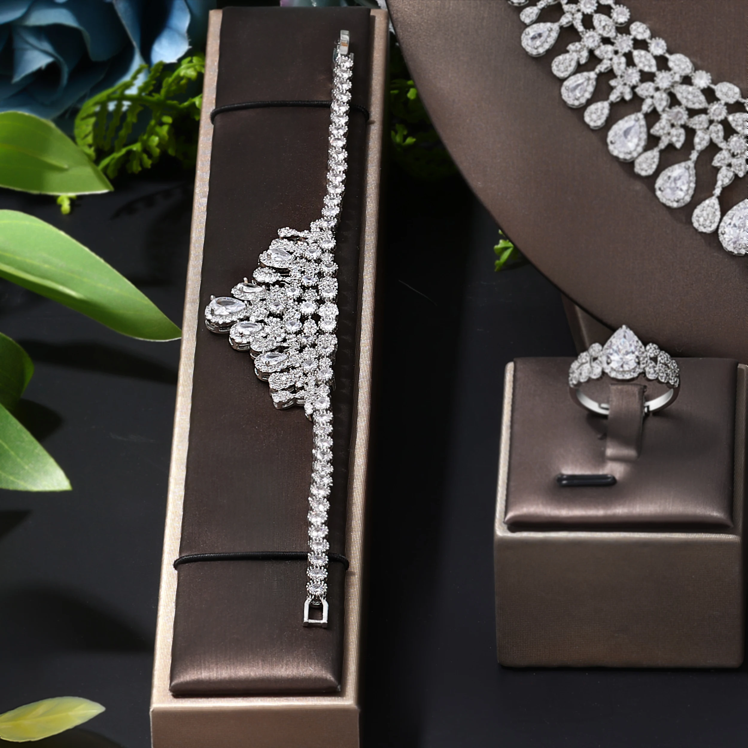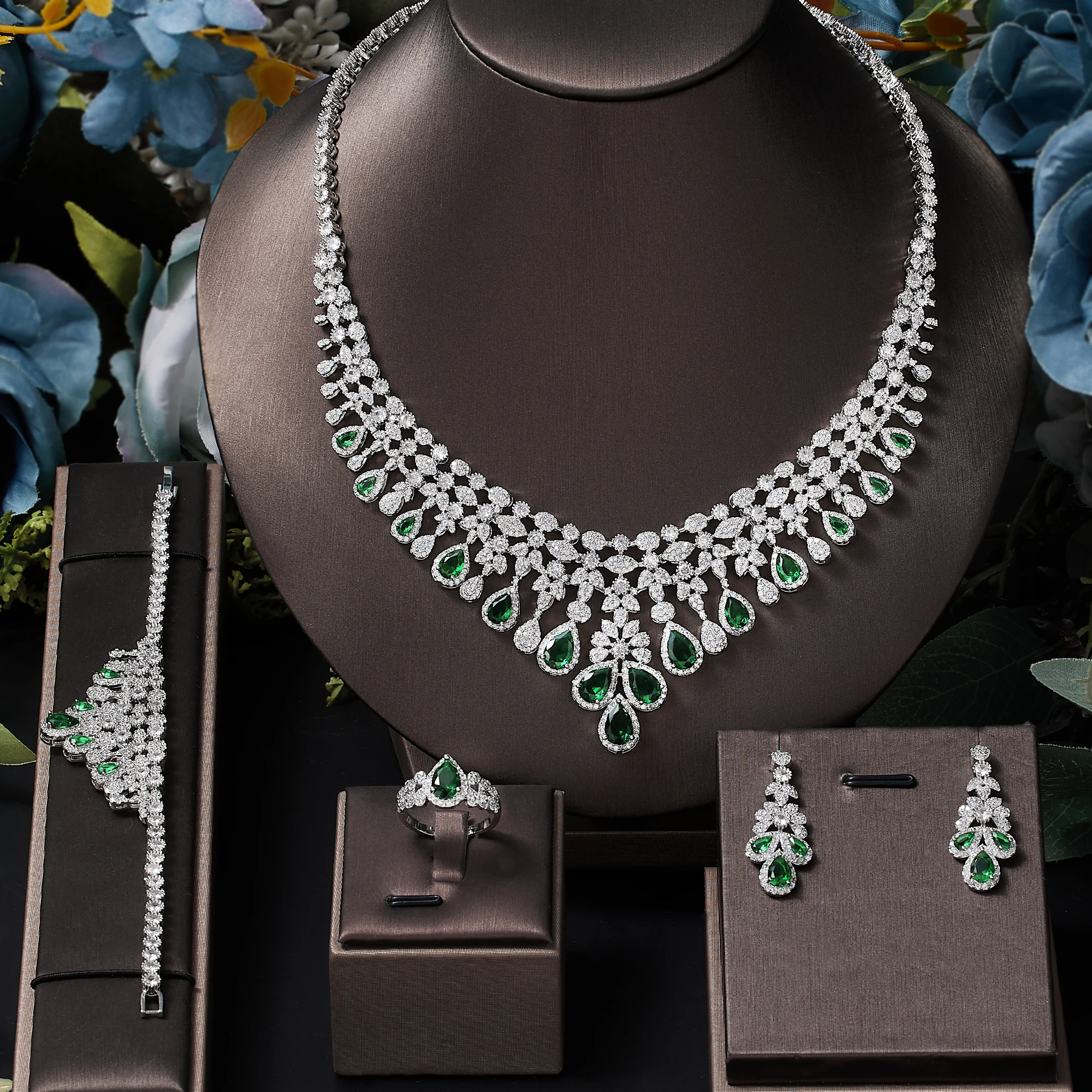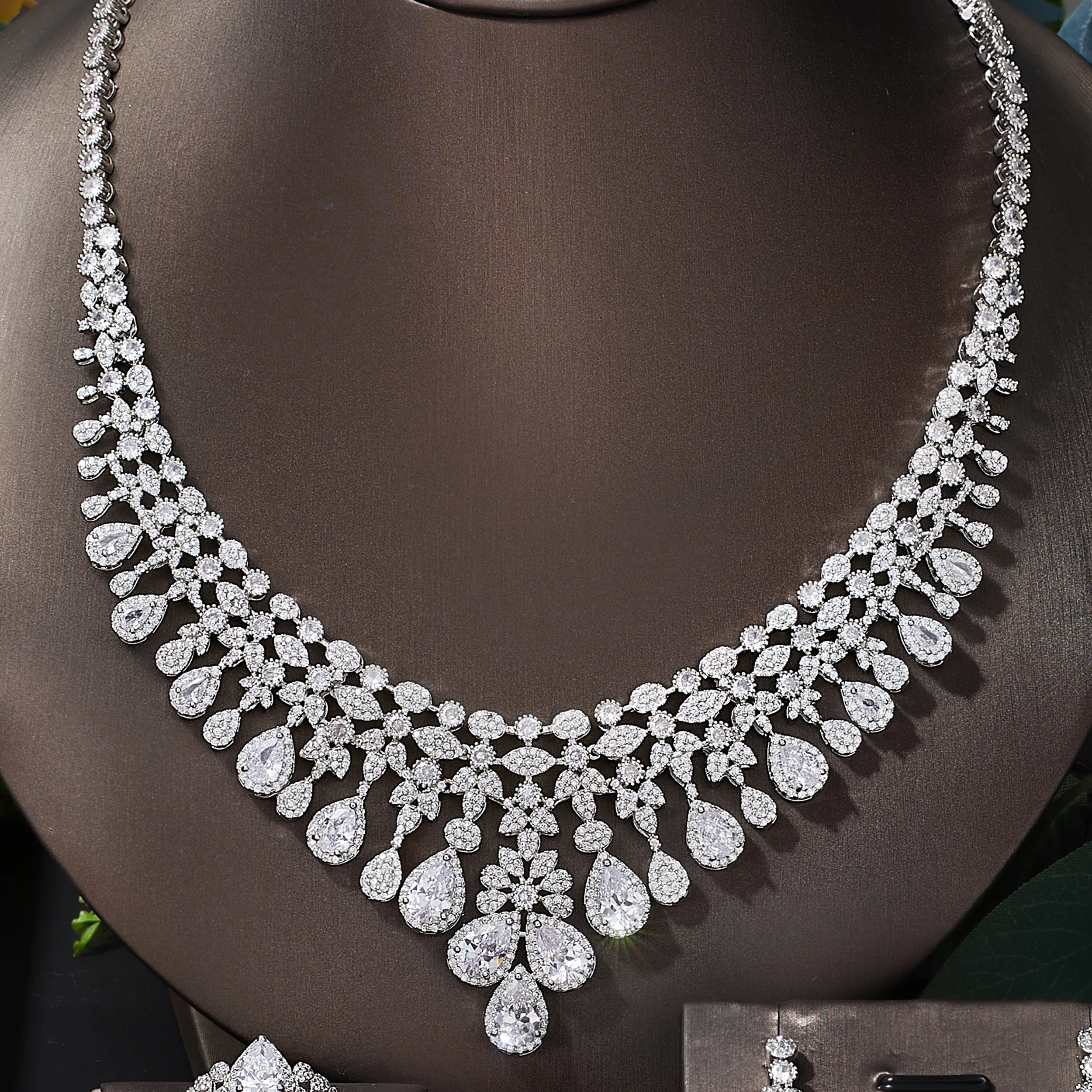 2025 Zircon Super Deluxe Tassel Water Drop Big Wedding Bridal Necklace Earrings 4 Pieces Nigerian Dubai Women's Jewelry Set
