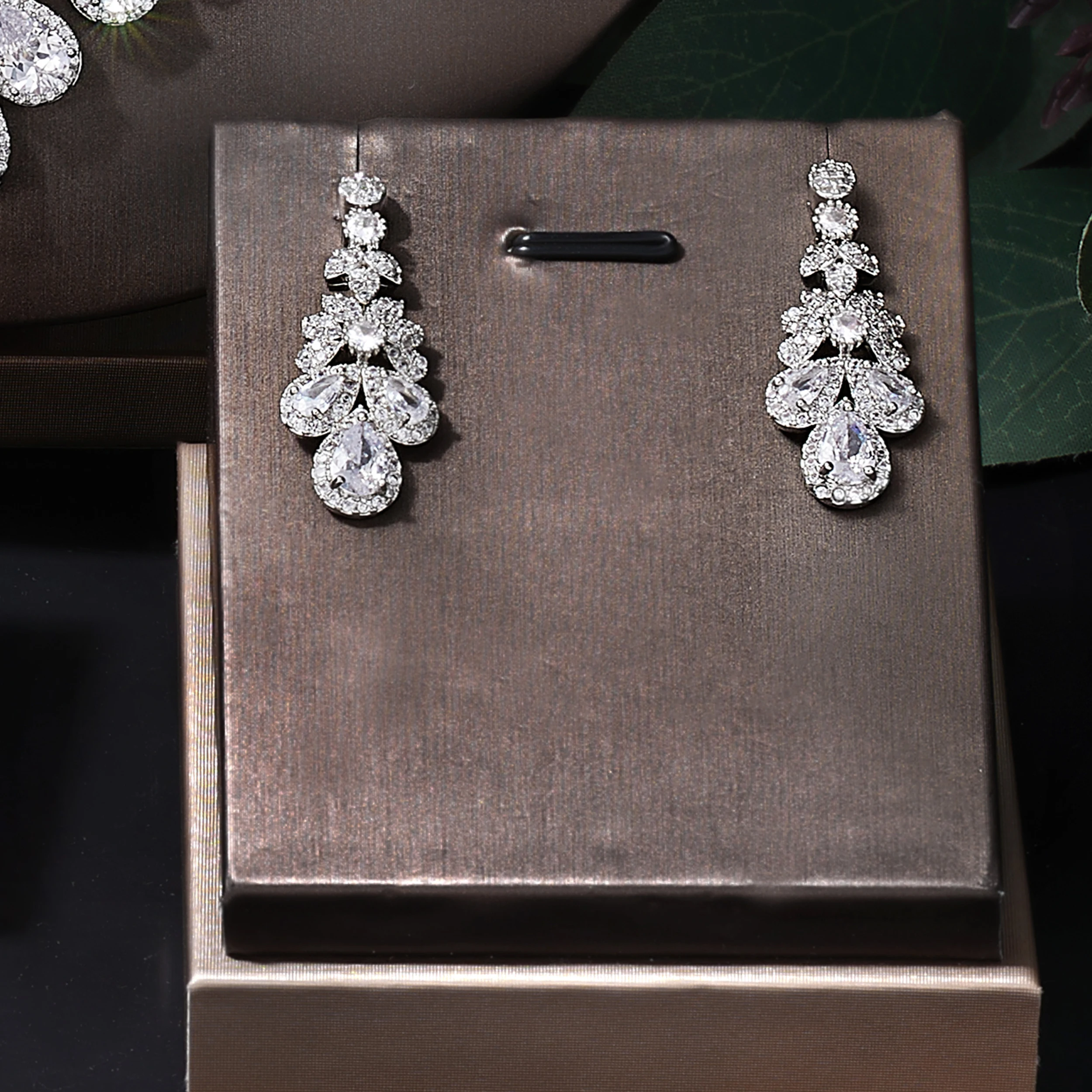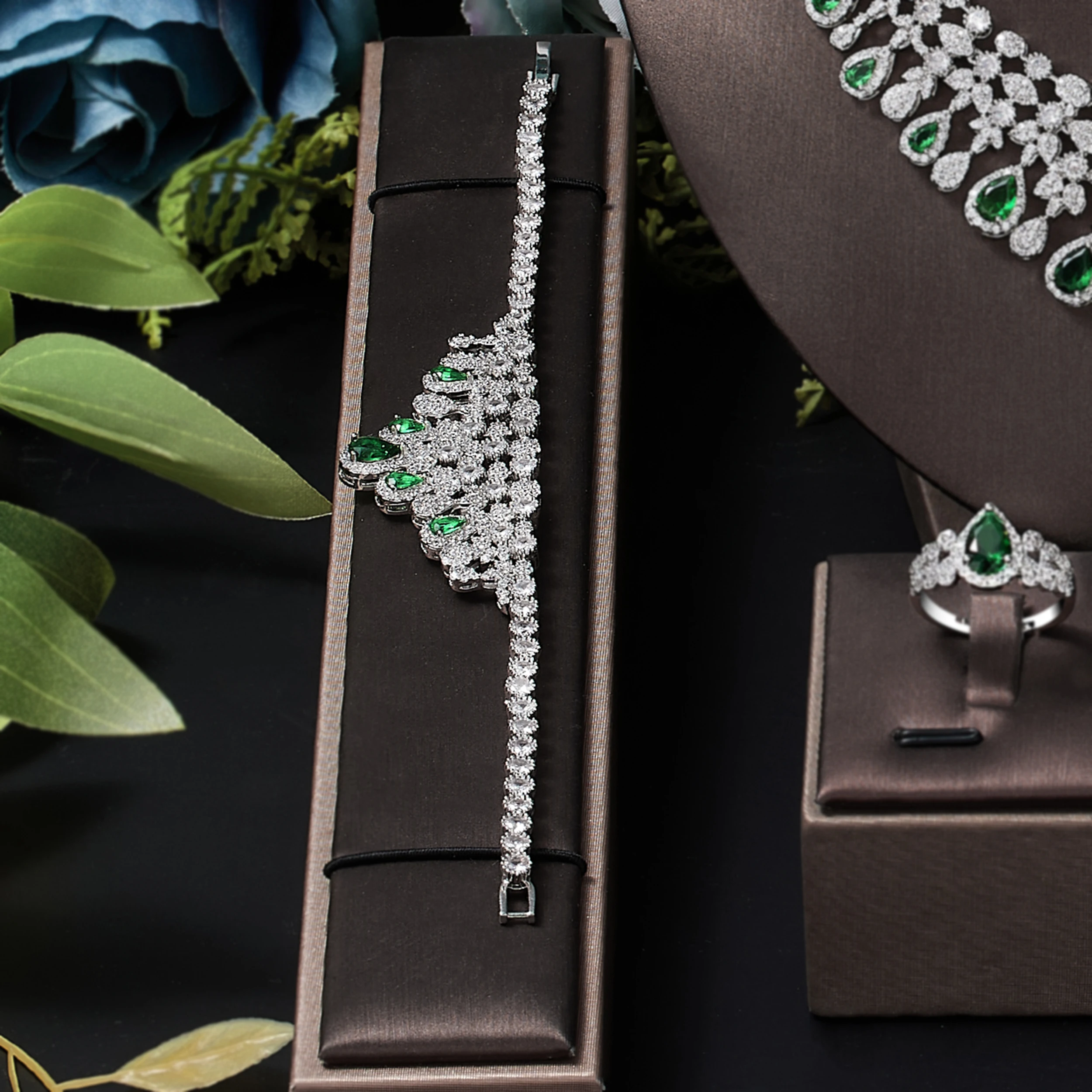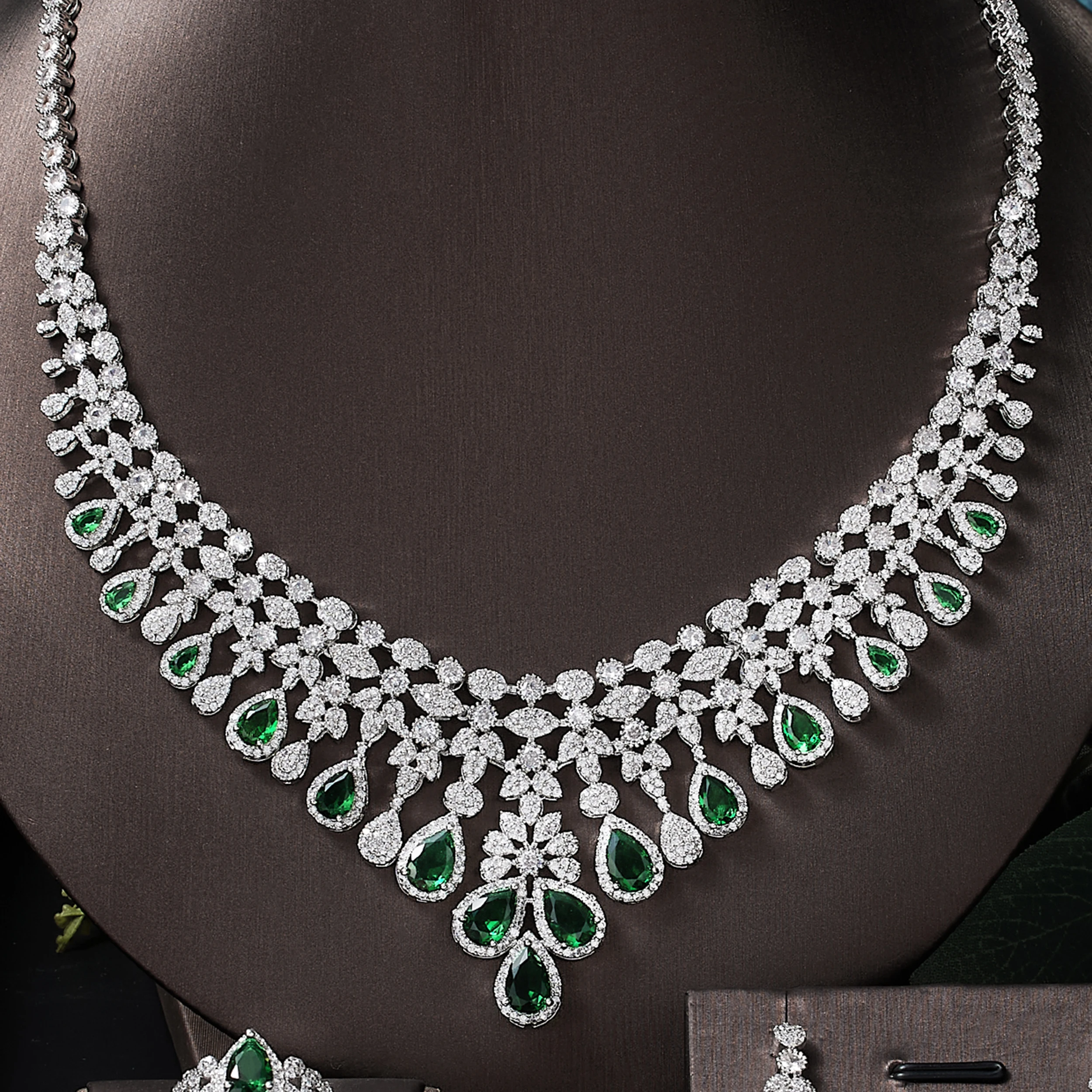 2025 Zircon Super Deluxe Tassel Water Drop Big Wedding Bridal Necklace Earrings 4 Pieces Nigerian Dubai Women's Jewelry Set