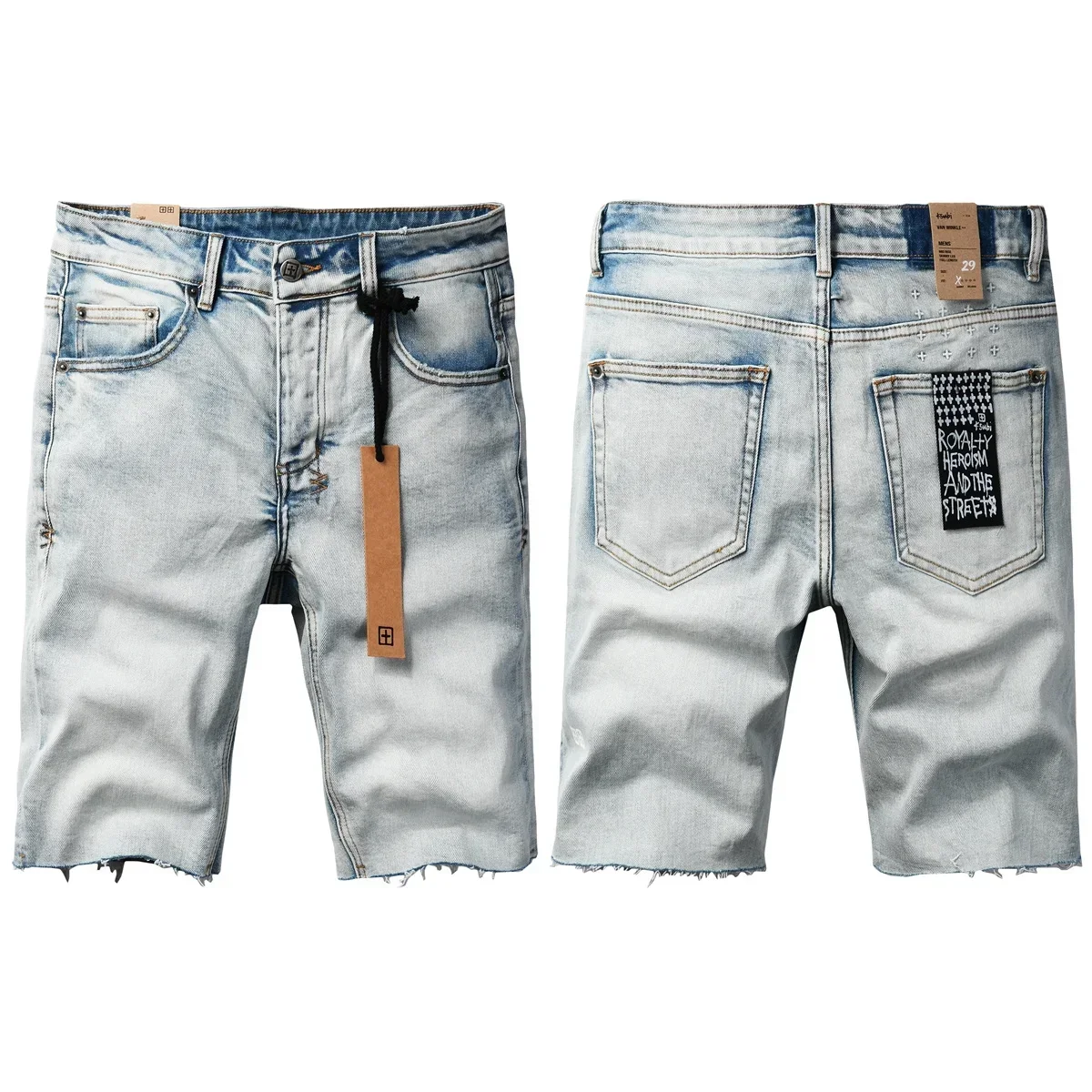 New Cross Denim shorts Men Fashion Trend Elastic Vintage wash Jeans American High Street Hip Hop Hole denim short