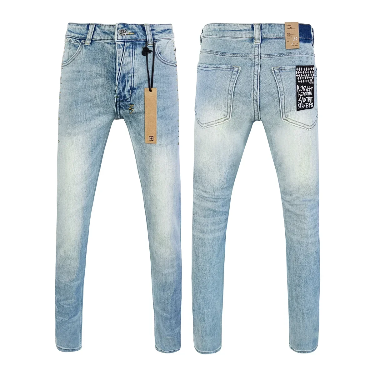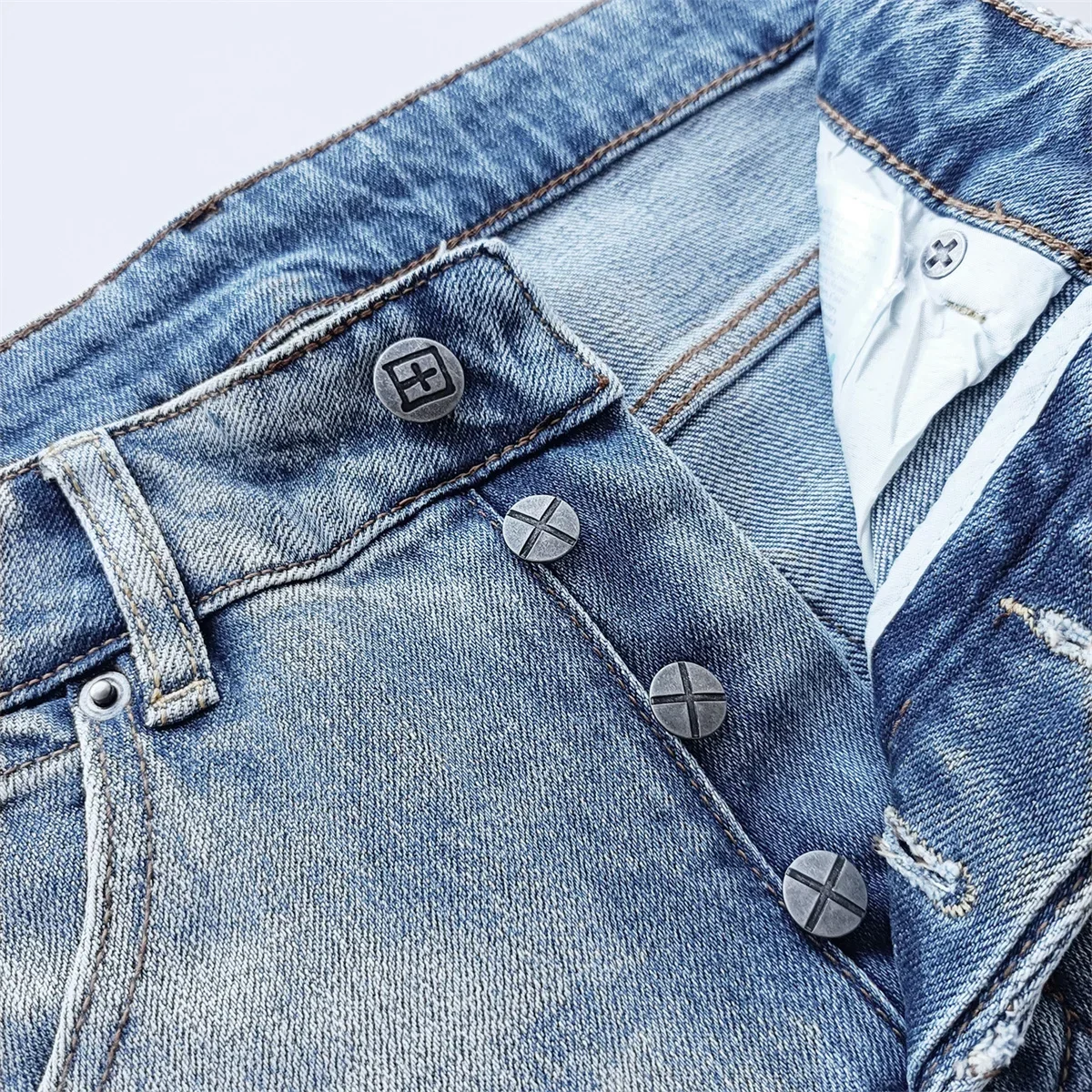 25SS New Cross Jeans Men fashion Personality Trend Hip-hop Multi-style Low Rise Elastic Skinny Denim Pants Frayed Trousers