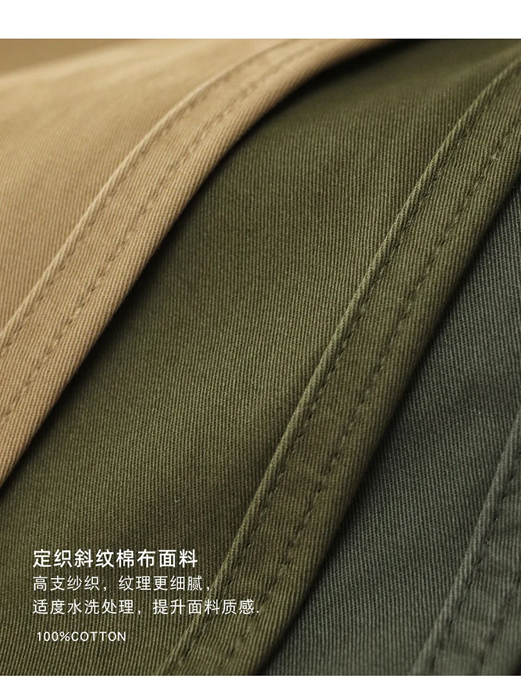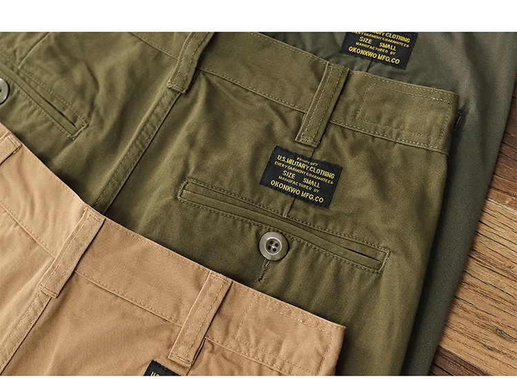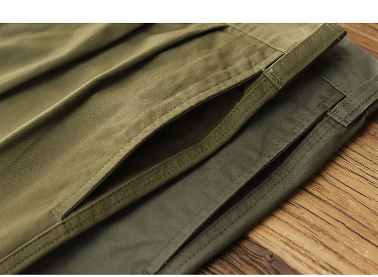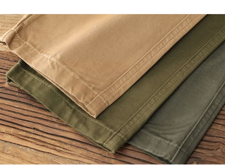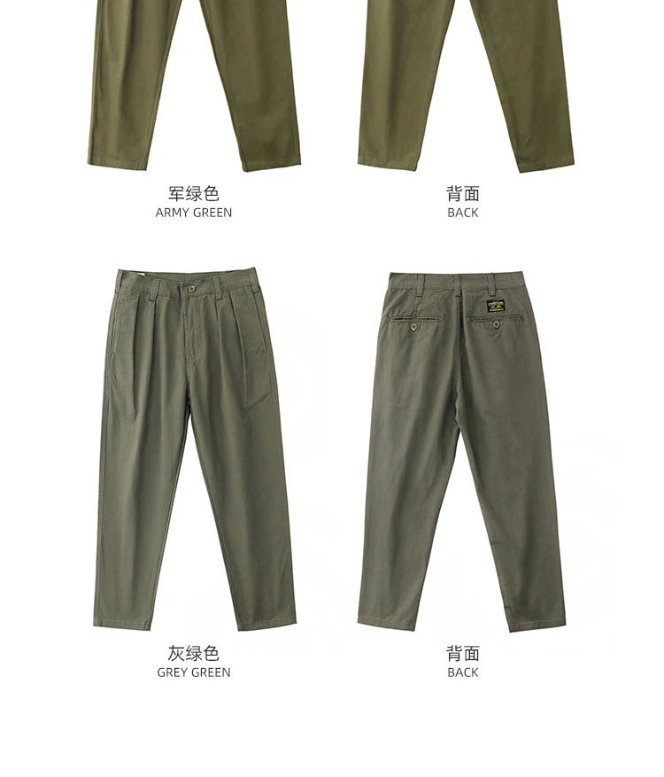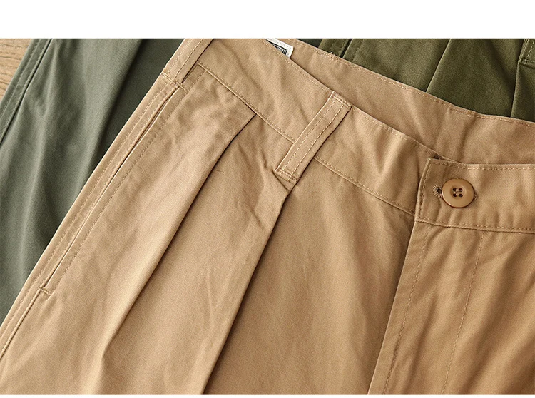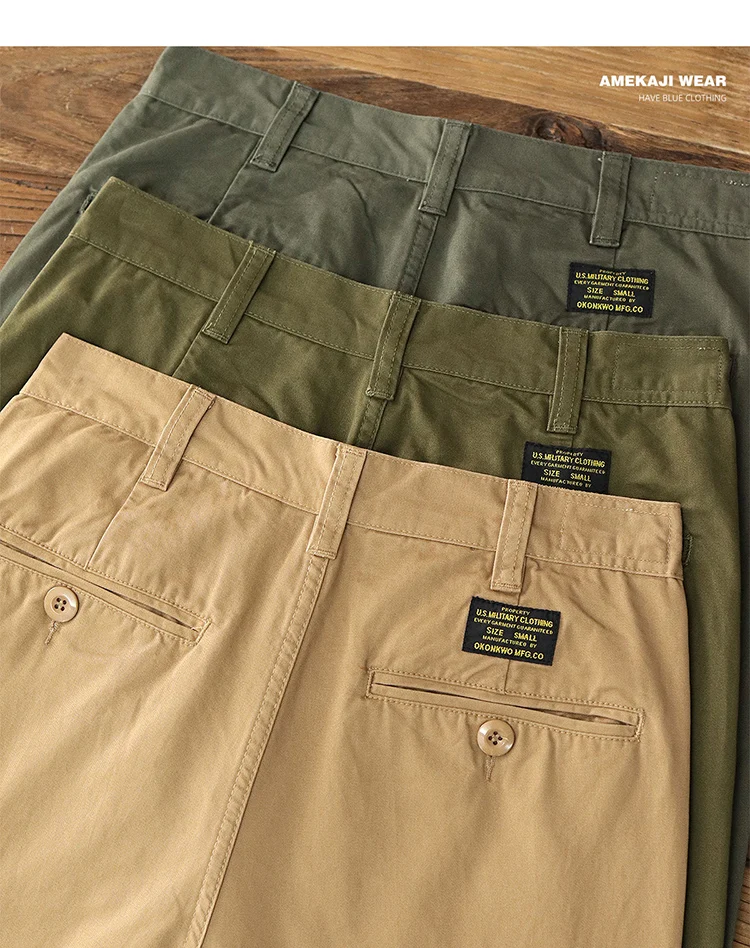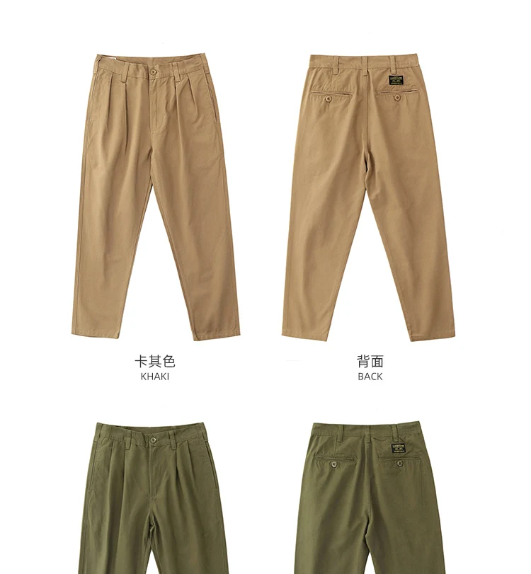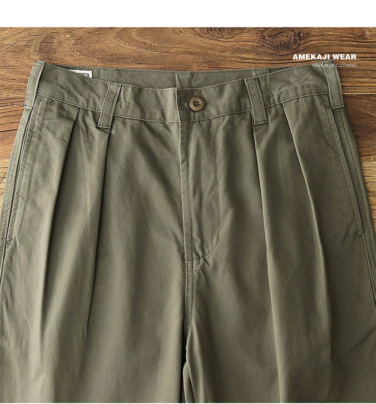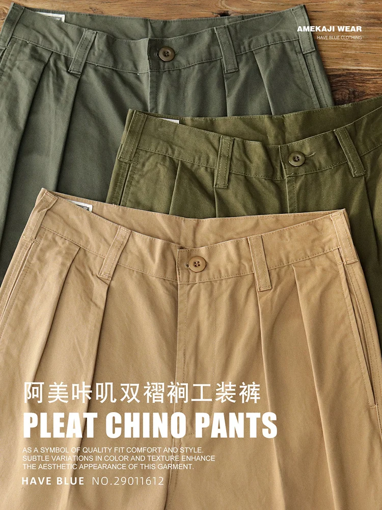 Autumn New American Retro Twill Pleat Chino Cargo Pants Men's Fashion 100% Cotton Washed Old Casual Straight Trousers