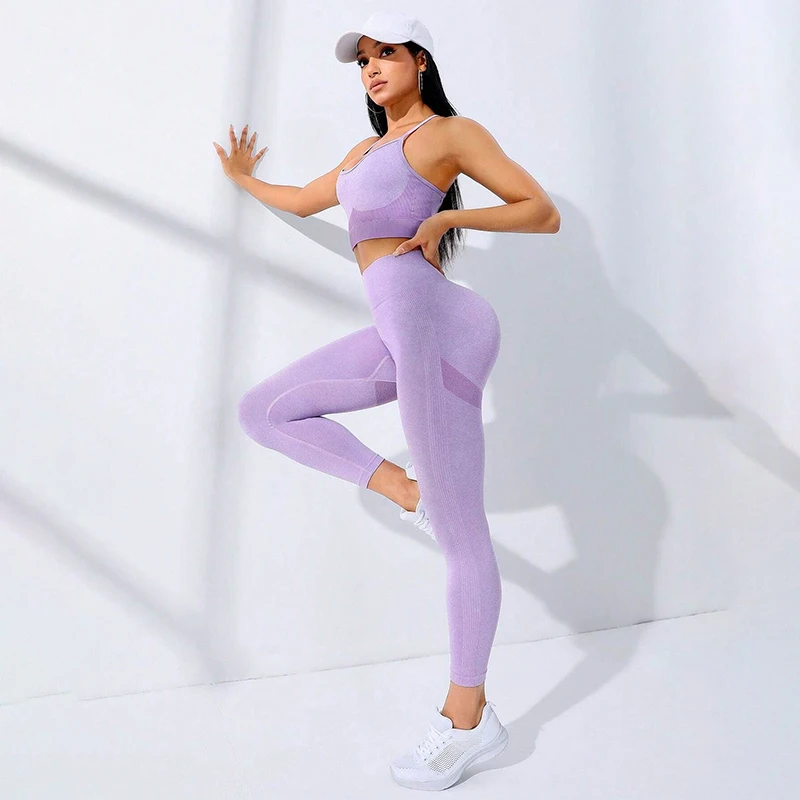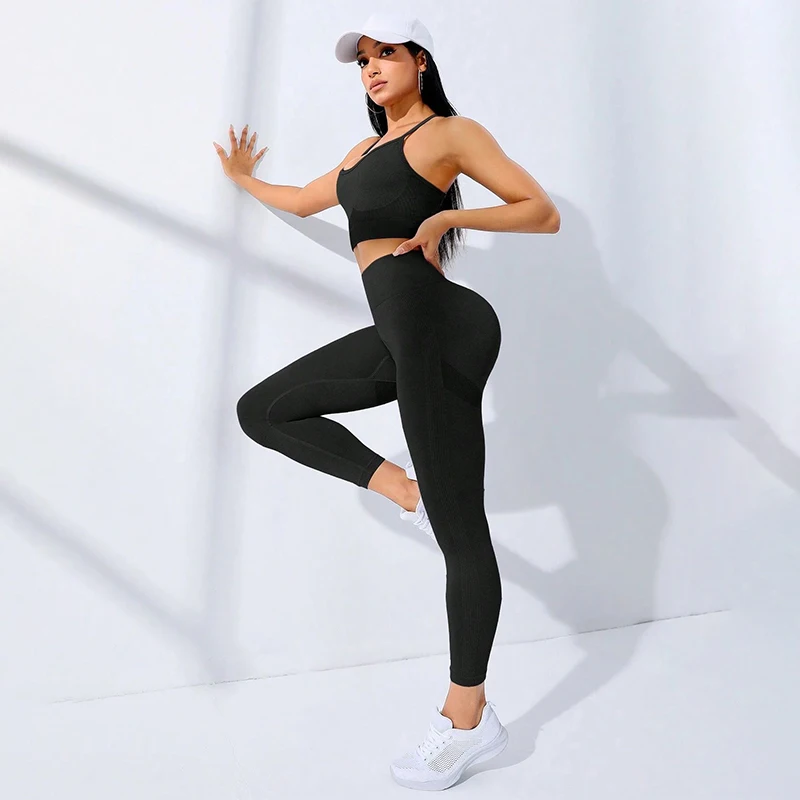 2Pcs Women's Yoga Fitness Set Seamless Breathable Activewear Sexy Sports Bra Top High-Waisted Leggings Set