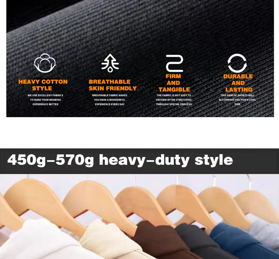 470G-570G HeavyWeight Cotton New Autumn Casual Men's Top Solid Color Loose Pullover Hoodies Sweatshirt Long-Sleeve Men Clothing