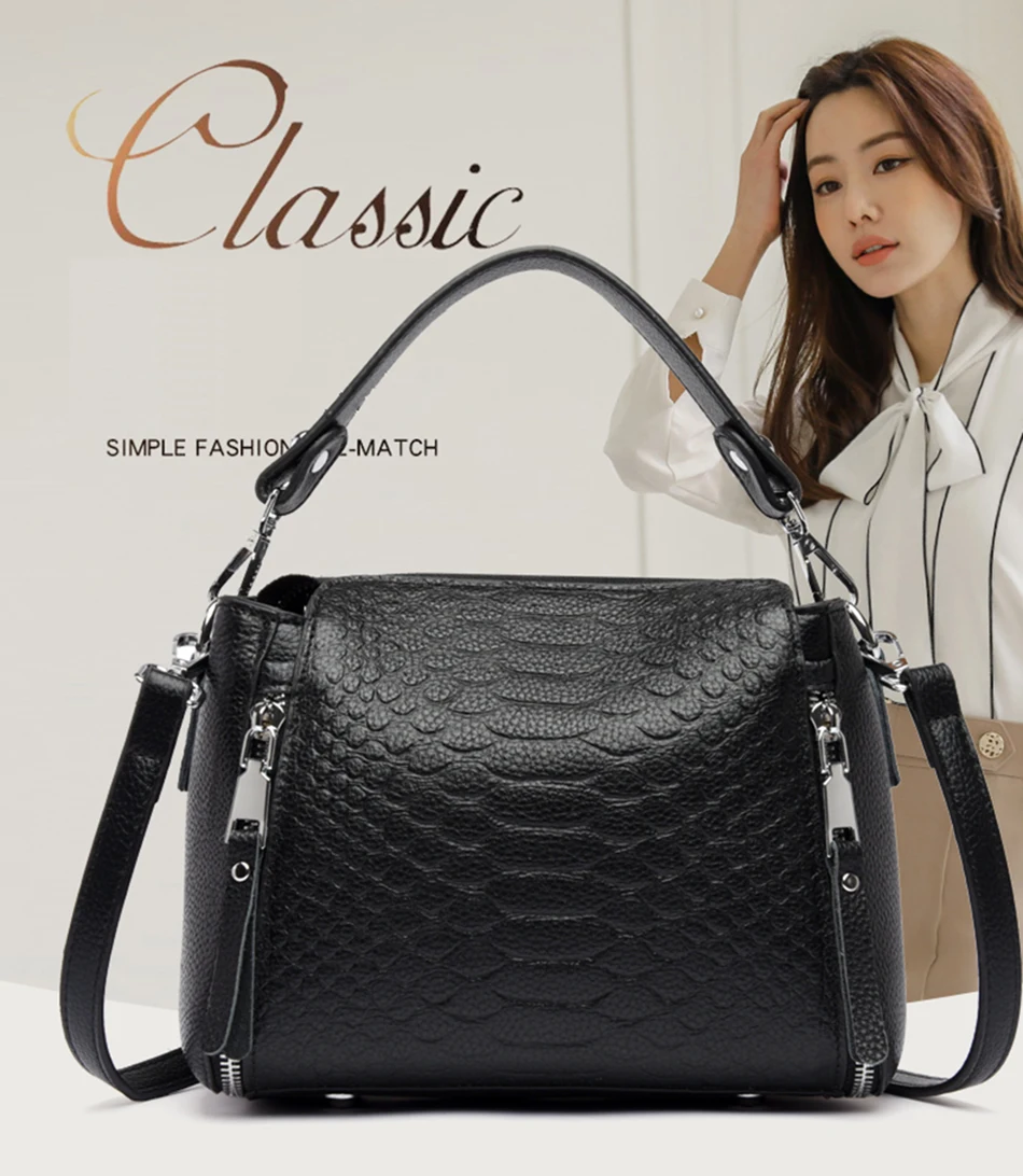 Authentic Cowhide Large Capacity Luxury Trendy Crocodile Pattern Women's Shoulder Bag