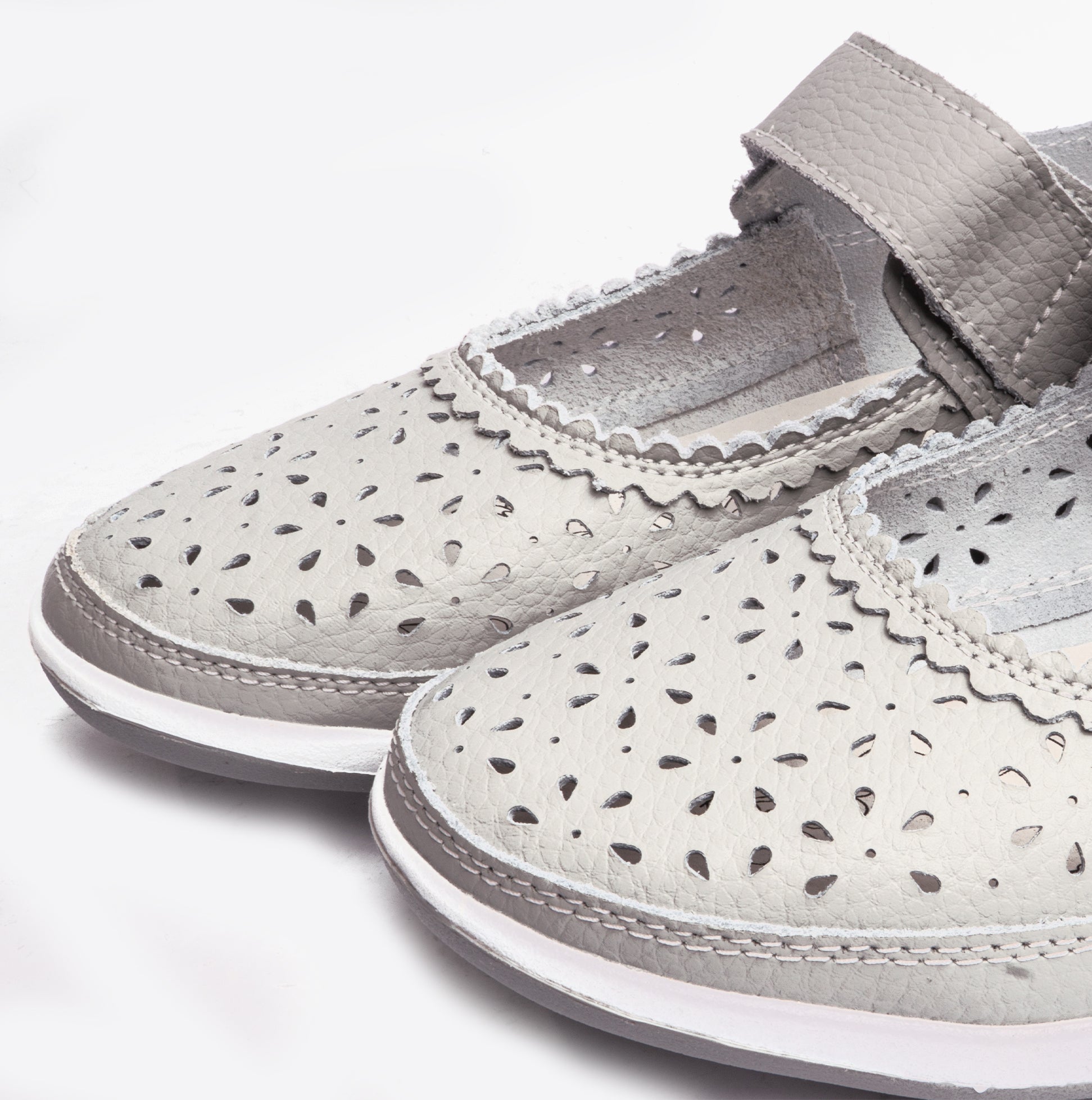 Boulevard DORRIT Womens Action Leather Wide Fit Shoes Light Grey