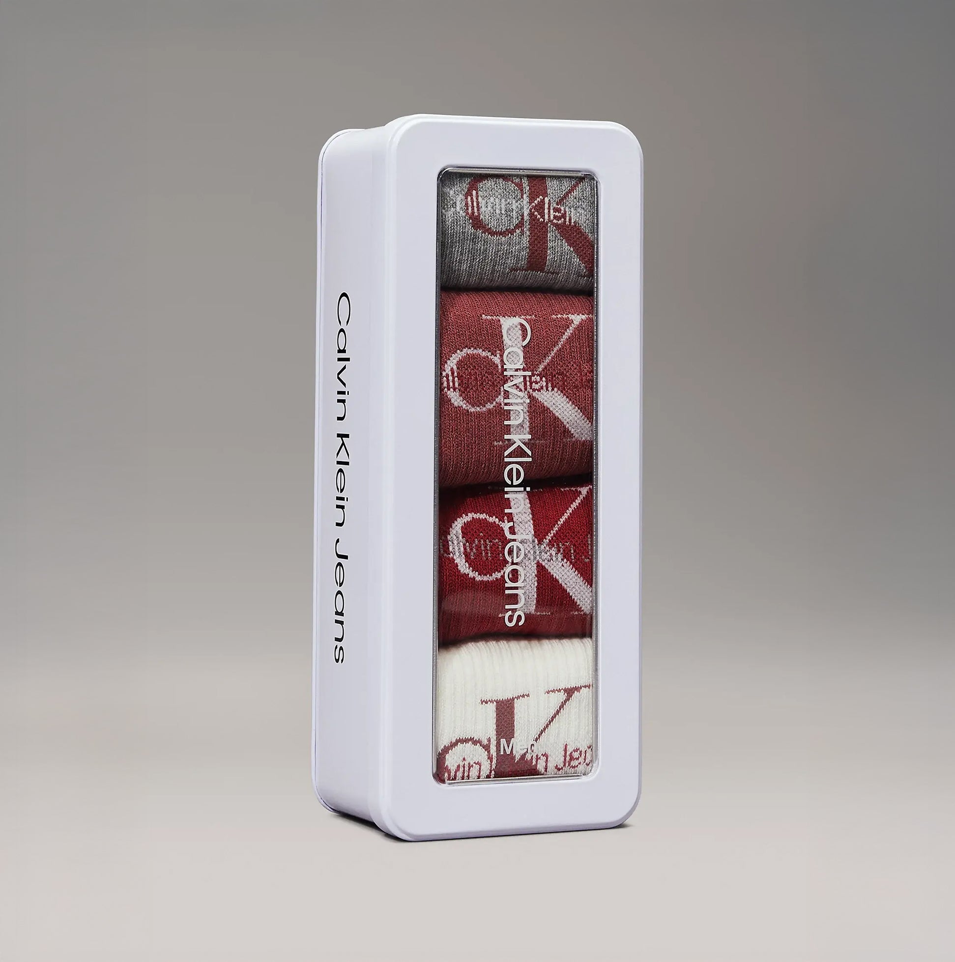 Calvin Klein 4 Pack Giftboxed Trainer Mens Crew Socks Red Combo