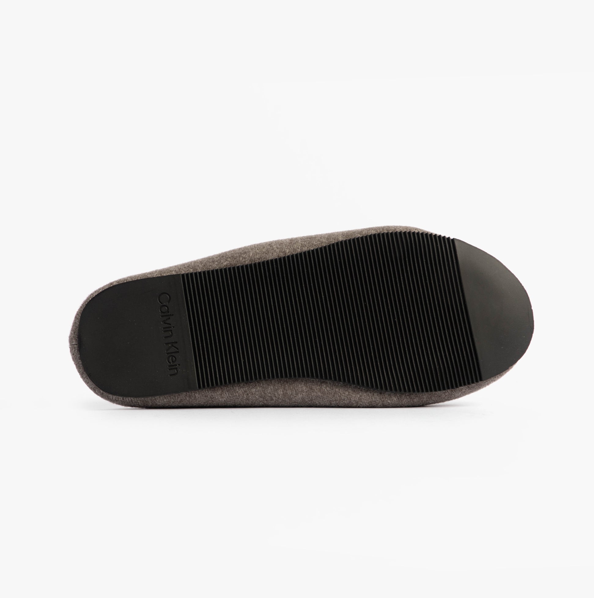 Calvin Klein Mens HOME Felt Signature Logo Mule Slippers Grey