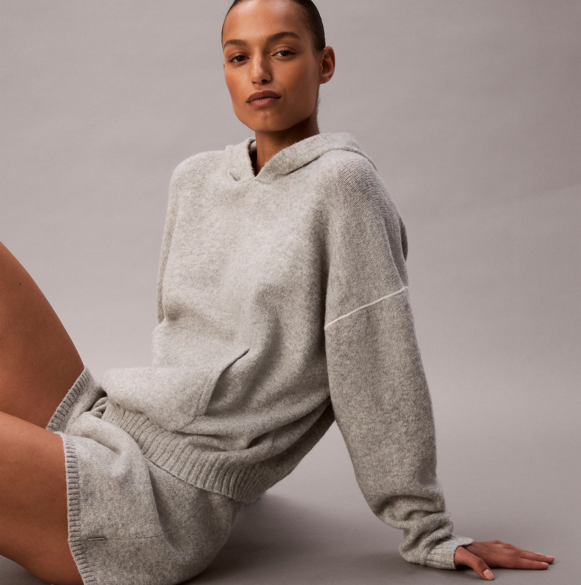 Calvin Klein PLUSH HOODIE. Womens Hoodies Grey Heather