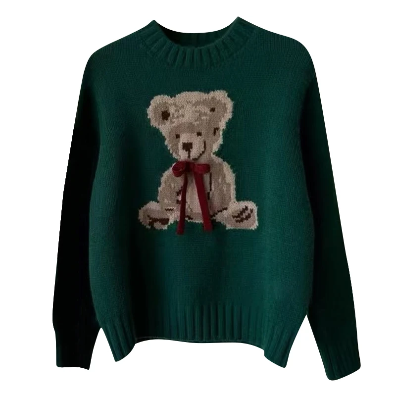 Christmas Sweet Style Knitting Long Sleeve Casual Pullovers 2025 Winter Women Lovely Jumpers Bow Round Neck Ladies Red Sweater