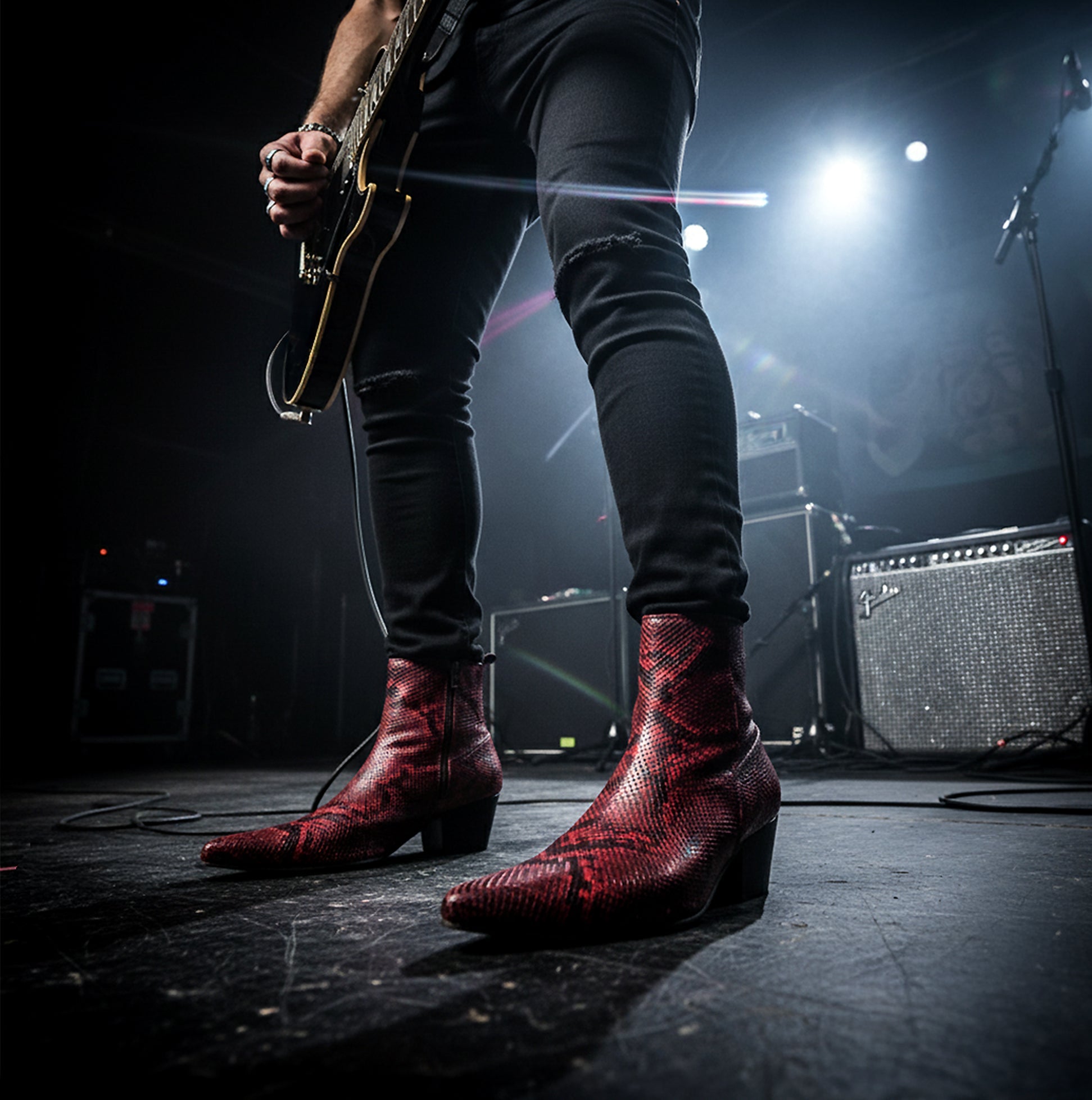 Club Cubano LENNON Mens Cuban Heel Boots Red Snake