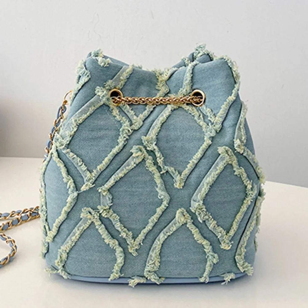 Denim Crossbody Bag Diamond Pattern Women Shoulder Bag Adjustable Strap Jean Purse Hobo Bag Travel Bag