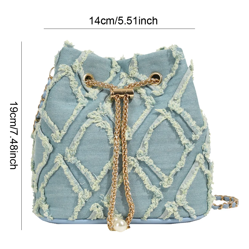 ![]() Denim Bucket Bag Diamond Pattern Women Crossbody Bag Drawstring Shoulder Bag Adjustable Strap Hobo Bag Travel Bag Feature: 1. Premium Material: This shoulder bag is crafted from denim, offering a luxurious and comfortable texture. It is built to last and can withstand the test of time, while also being incredibly easy to clean and maintain. 2. Perfect Size: This trendy crossbody bag is 190.00x140.00x140.00mm/7.48x5.51x5.51inch, providing ample space for your wallet, phone, cosmetic products, glasses, and other small items. 3. Unique Structure: This handbag boasts a unique structure that combines convenient pocket storage with a user-friendly design, resulting in effortless carrying and easy access to your belongings. 4. Unique Design: This solid jean purse features a panda-shaped design. With adjustable shoulder straps, it can be used as a shoulder bag or a handbag, effortlessly complementing your various styles. 5. Thoughtful Gift: This bucket bag is a great choice for shopping, holiday parties, and travel street photography. It's also a wonderful gift for moms, girlfriends, and wives. Specification: Origin: Mainland China Shape: Bucket Main Material: Denim Handbags Type: Shoulder Bags Lining Material: nylon Place Of Origin: HE BEI Province Size: 190.00x140.00x140.00mm/7.48x5.51x5.51inch Hign-concerned Chemical: None