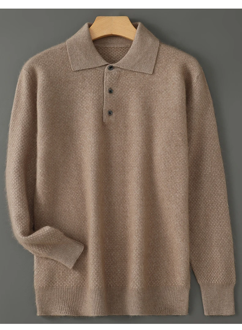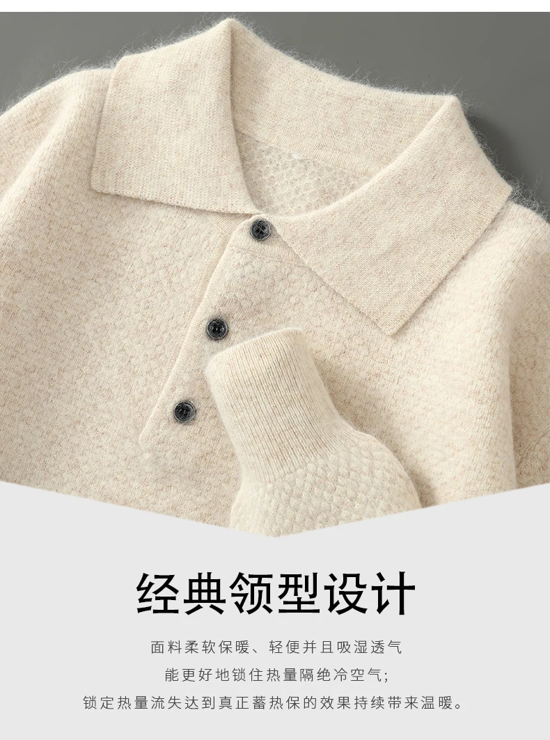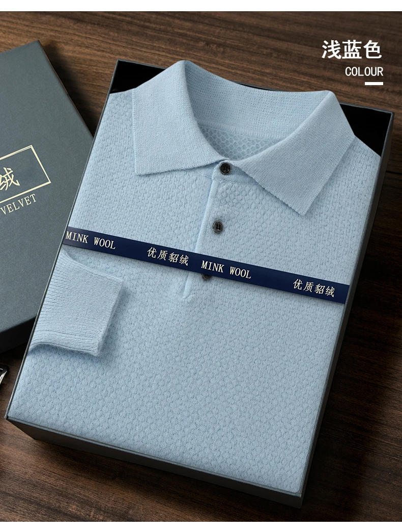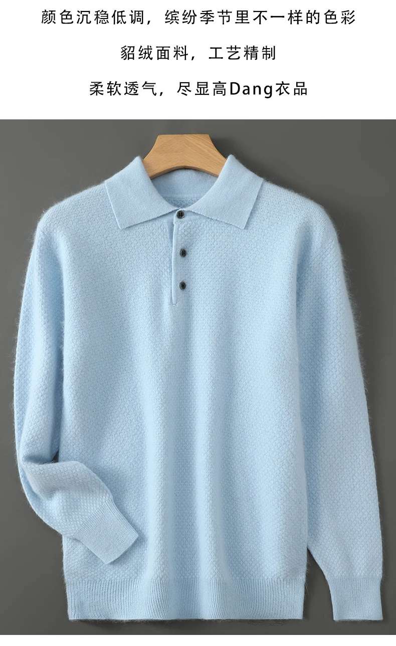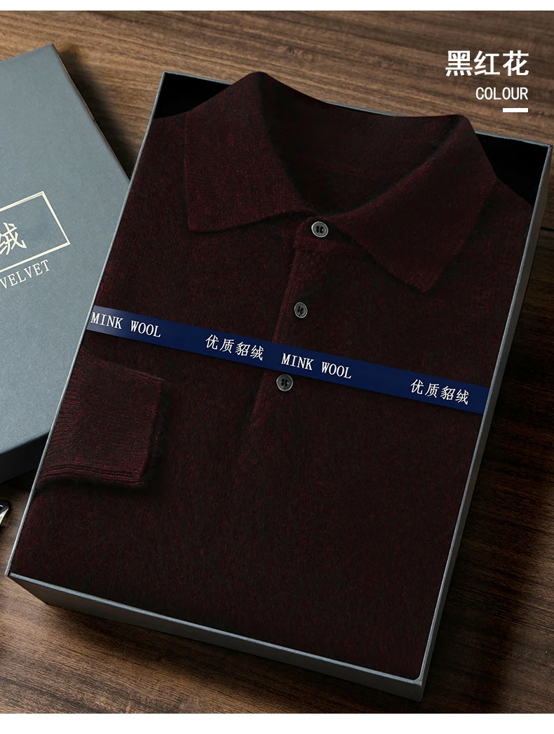 DjzDsm Men's 100% Mink Cashmere Top Polo Collar Sweater Casual Business Cashmere Sweater New Knitted Sweater Autumn and Winter