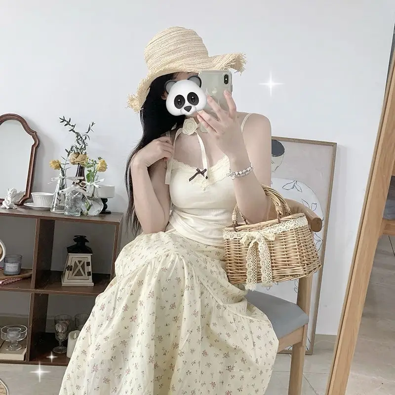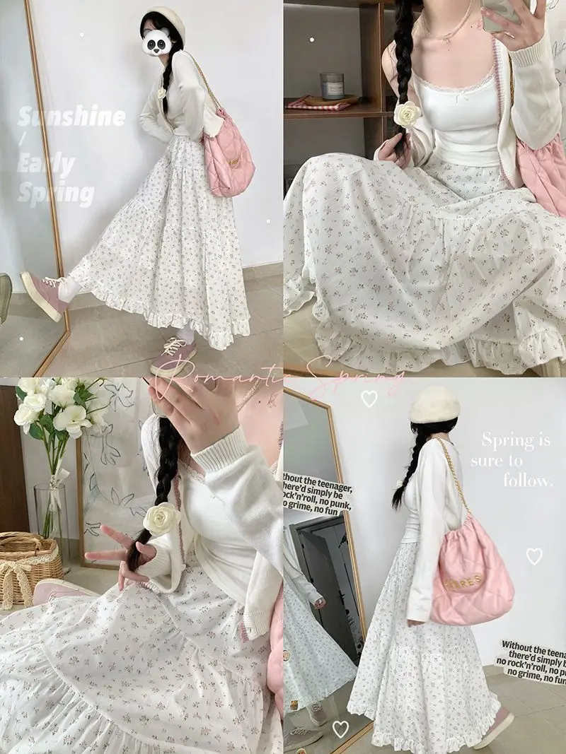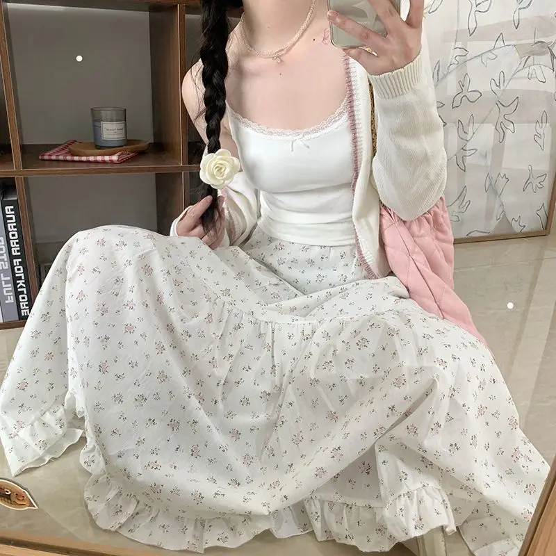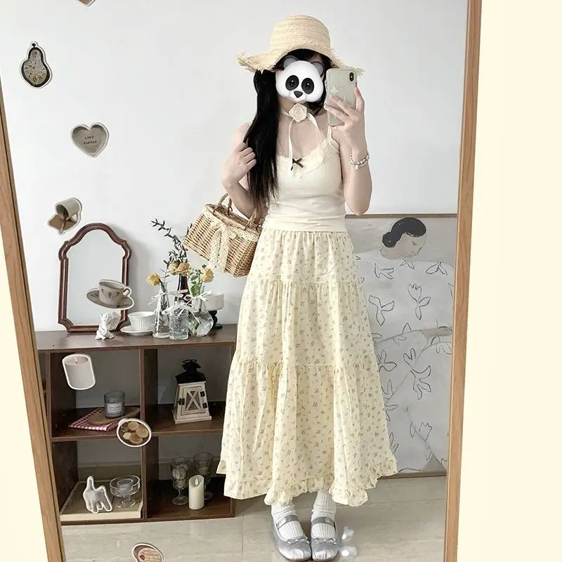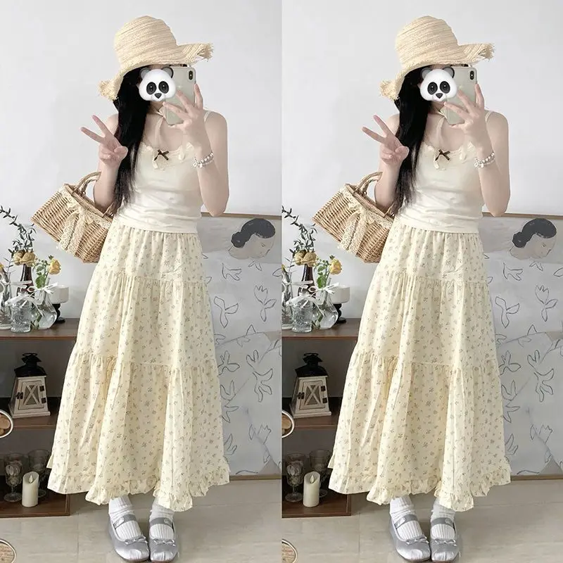 Floral A-Line Skirt for Women Summer 2024 Mid-Calf Length High Waisted Skirt Korean Streetwear Y2k Harajuku Skirt