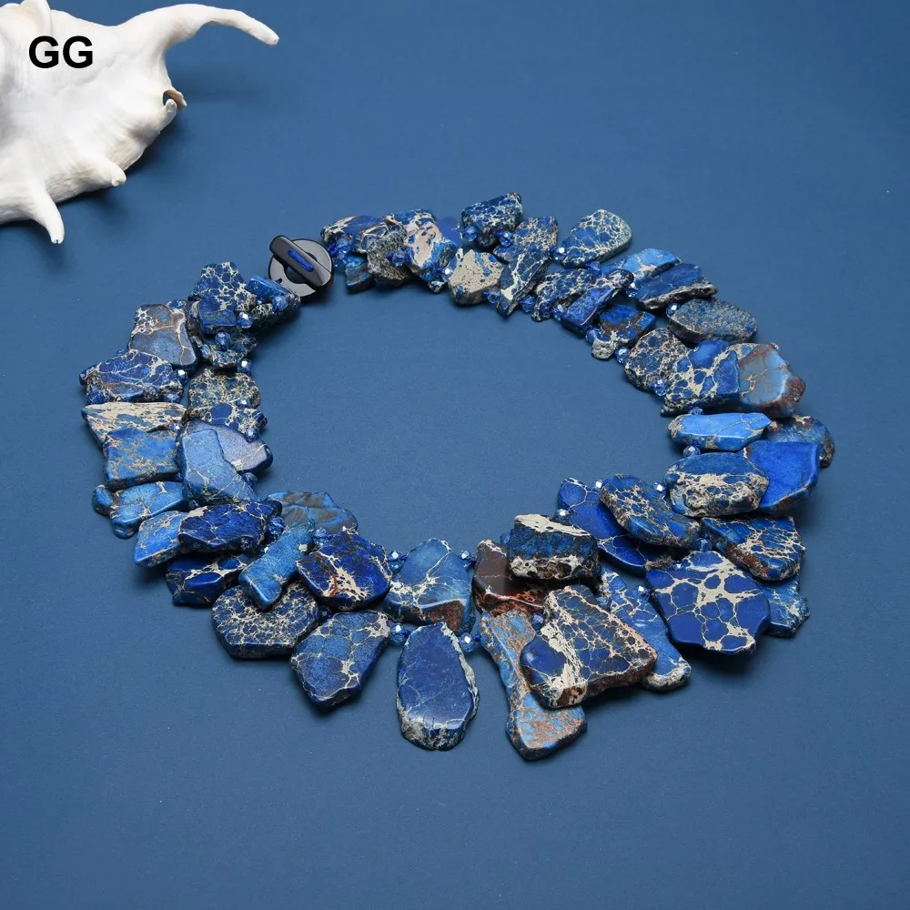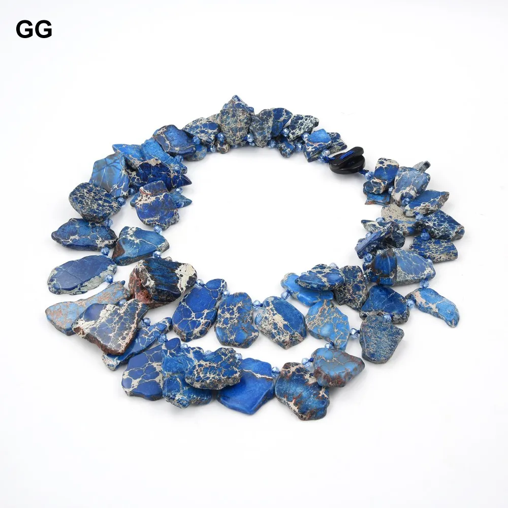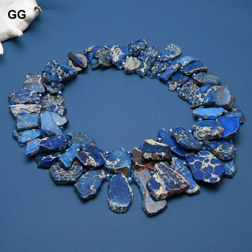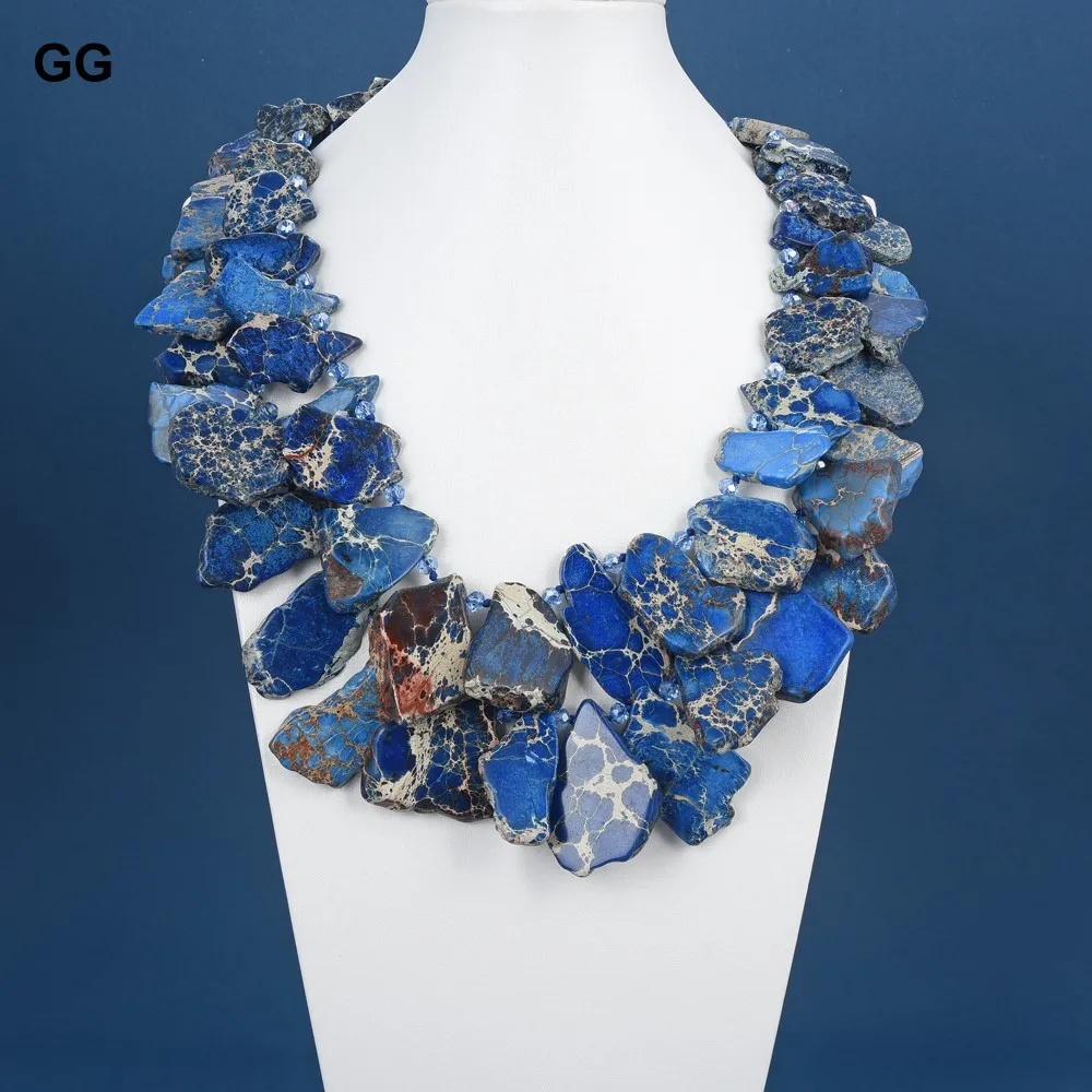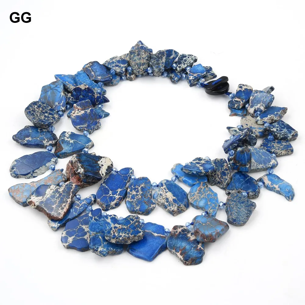 GG 22'' 2 Strands Natural Blue Sea Sediment Imperial Jaspers Crystal Necklace For Women
