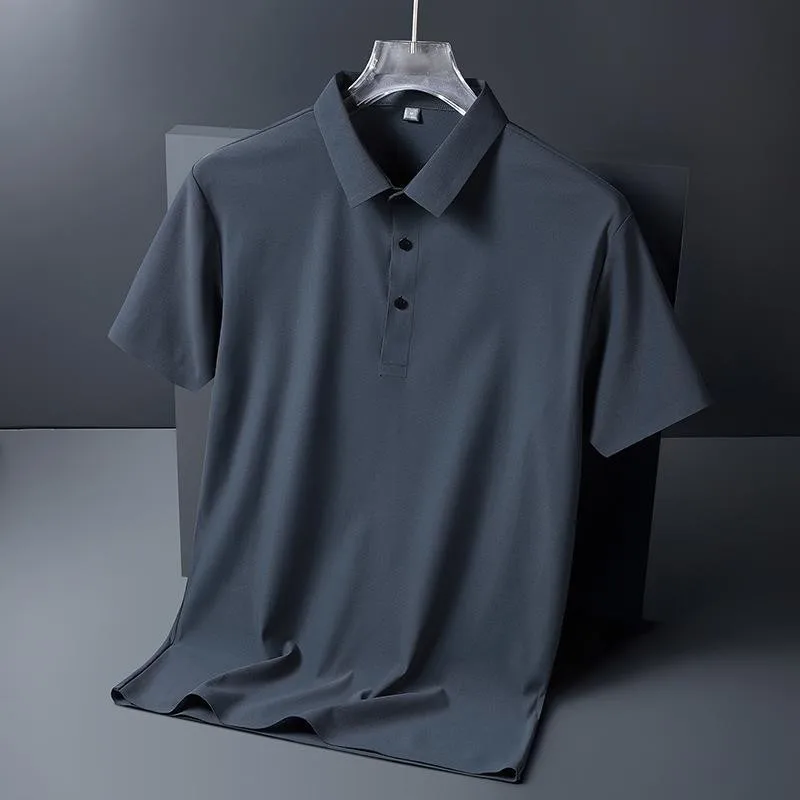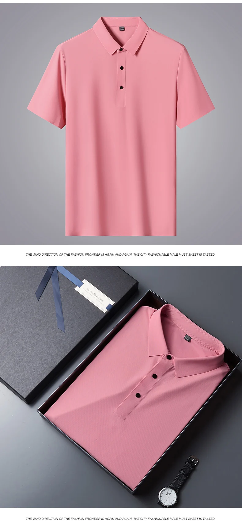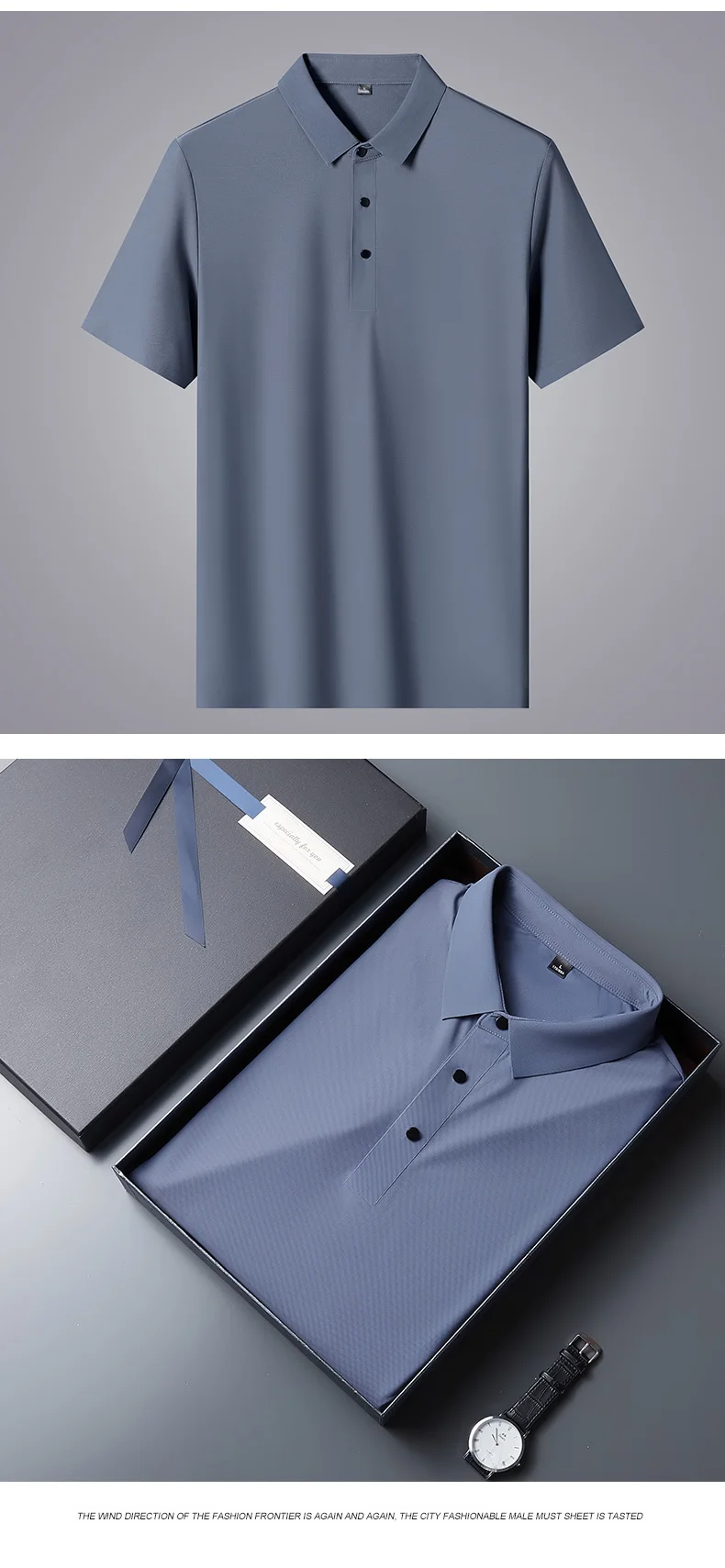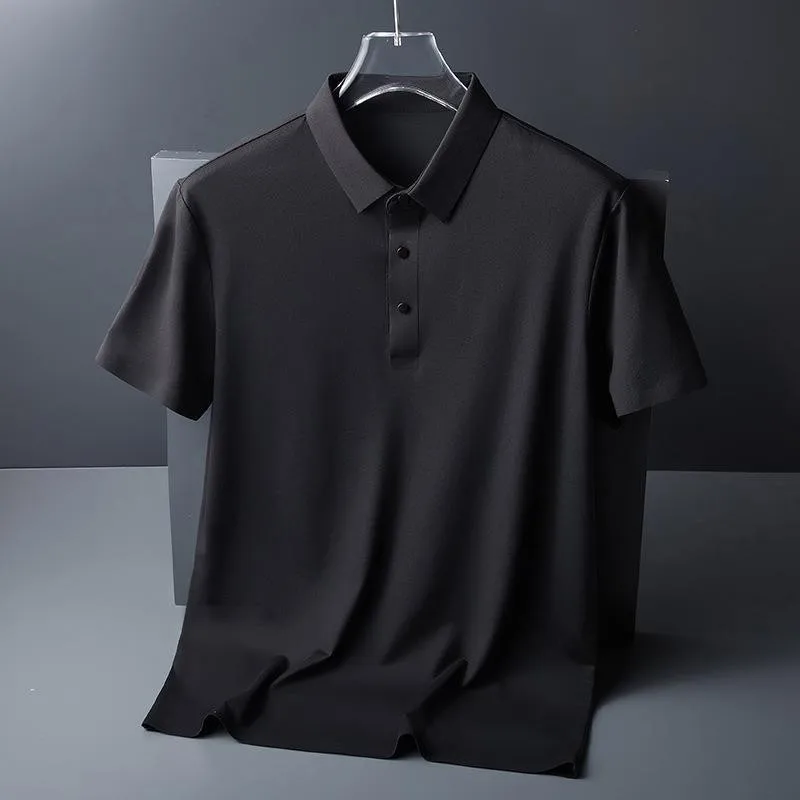 Golf Solid Ice Silk Traceless Silk Loose Polo Shirt Short Sleeve T-shirt Men's Elastic Ironless Thin Polo Neck Light Luxury