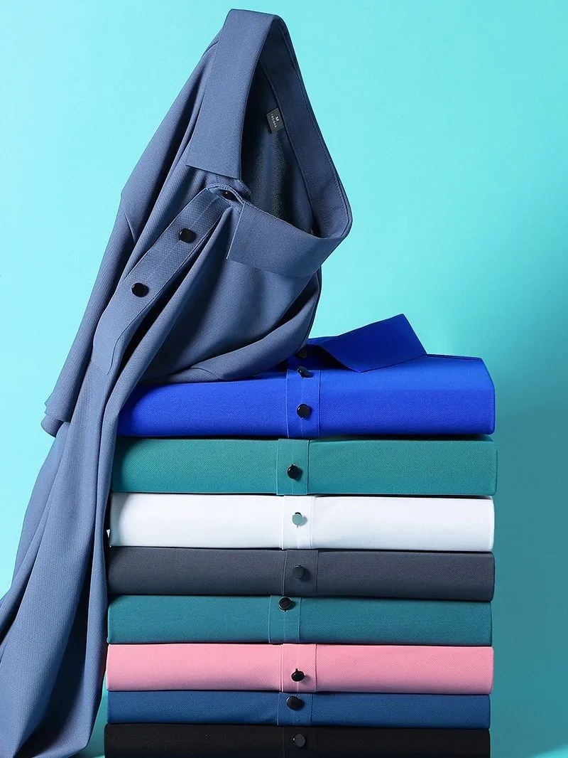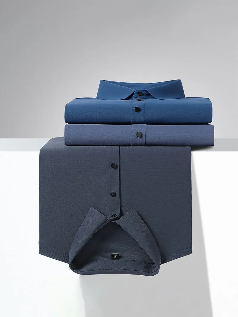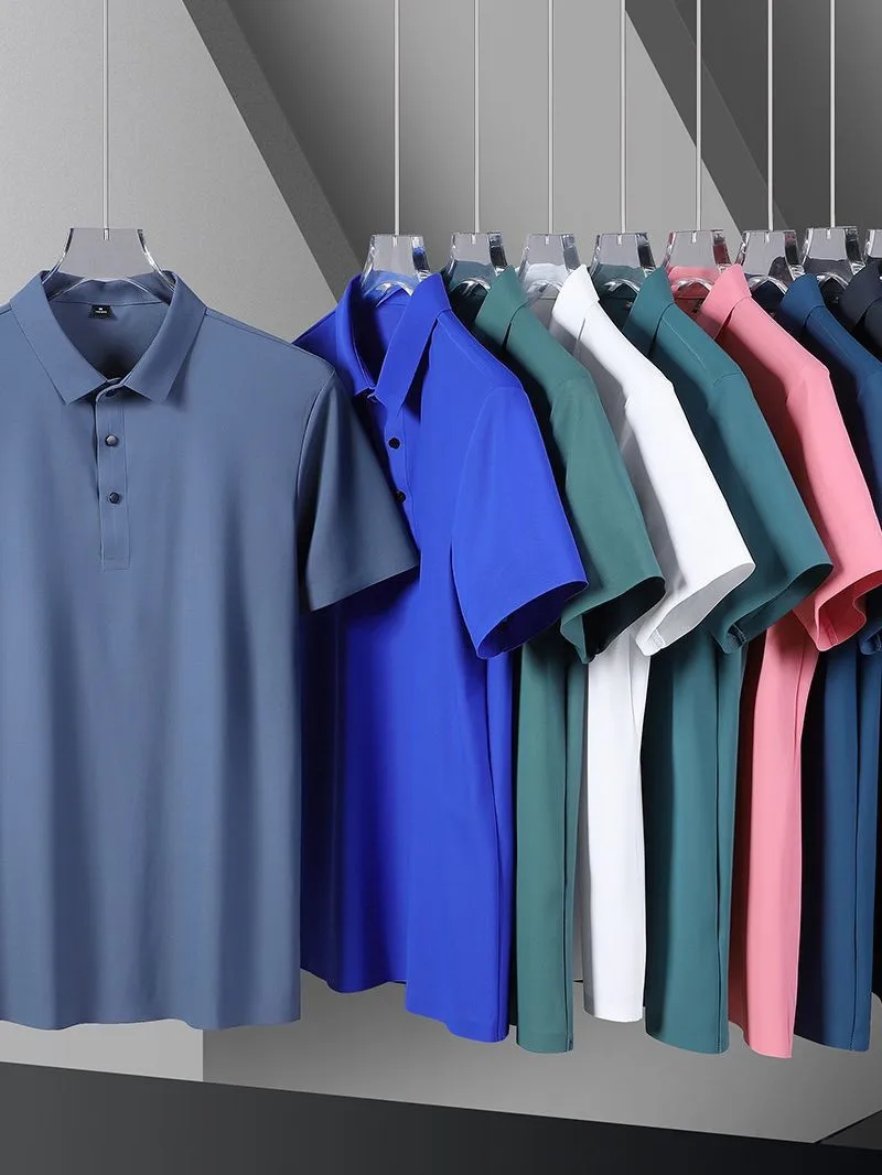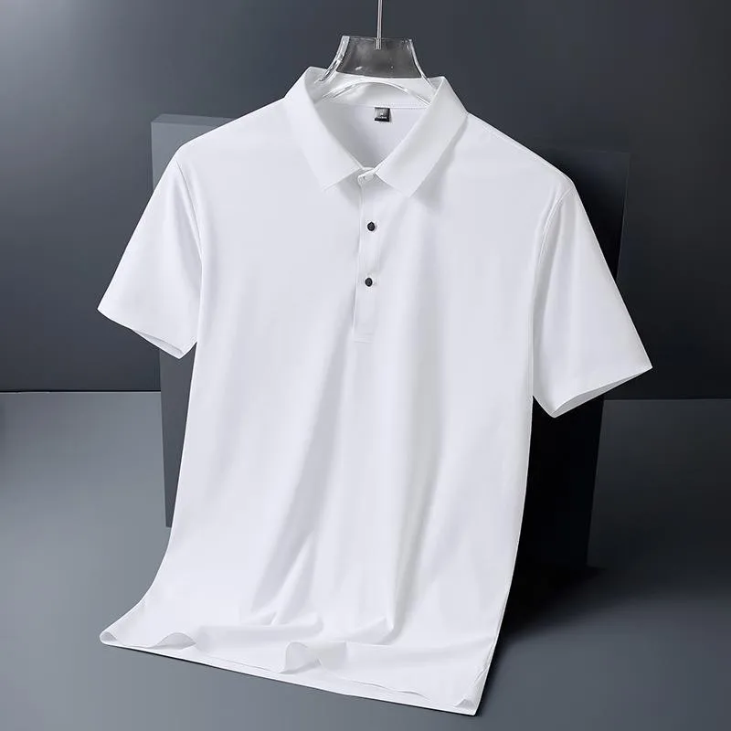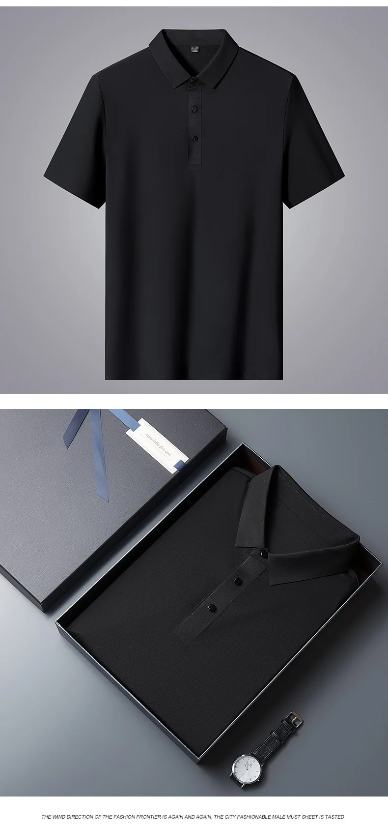 Golf Solid Ice Silk Traceless Silk Loose Polo Shirt Short Sleeve T-shirt Men's Elastic Ironless Thin Polo Neck Light Luxury