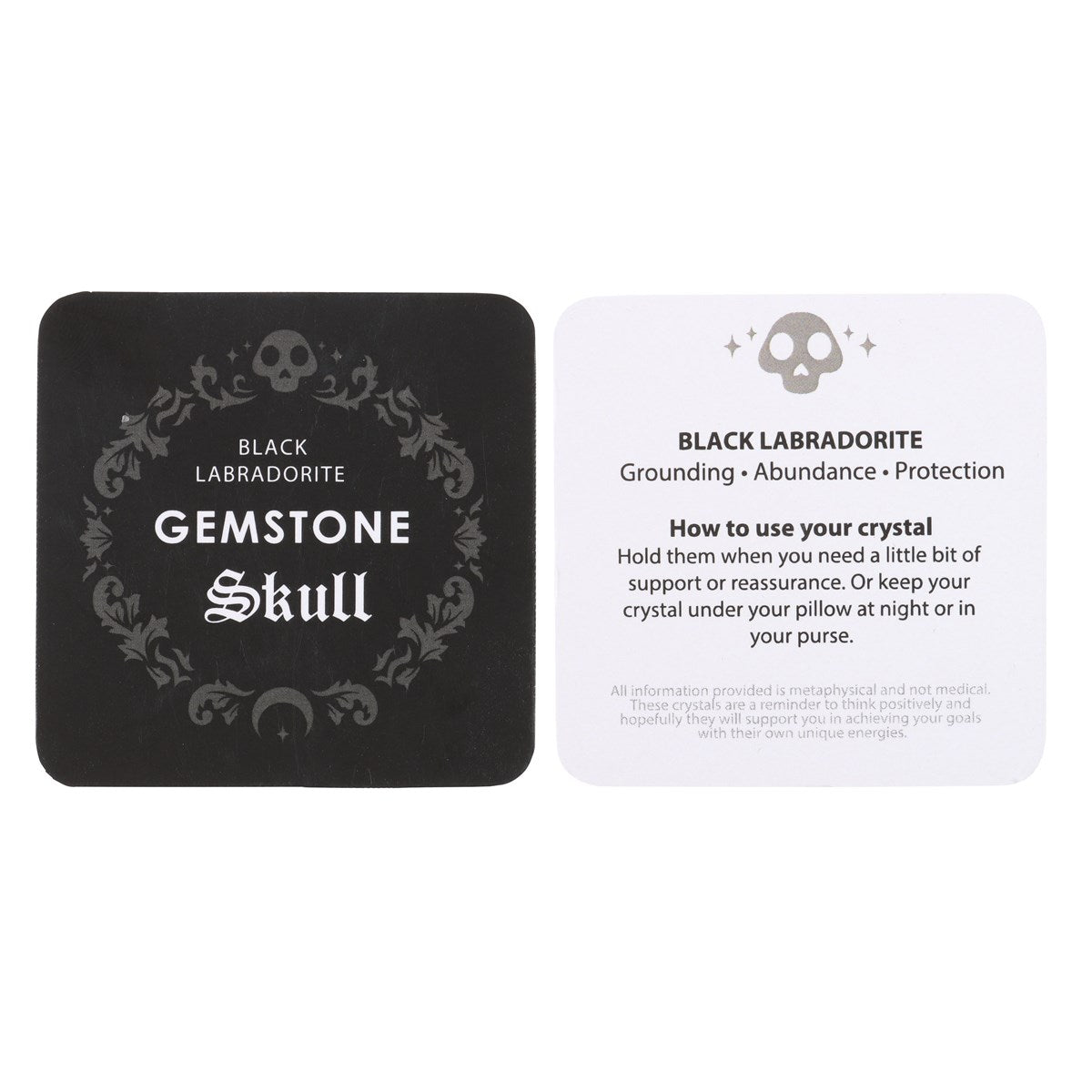 Unleash your inner gothic style with our Black Labradorite Crystal Skull! This powerful stone is known for grounding, abundance, and protection. The perfect size for holding in your hand during moments of need, it also serves as a stylish desk accessory. Comes with a black drawstring pouch for protection on-the-go.