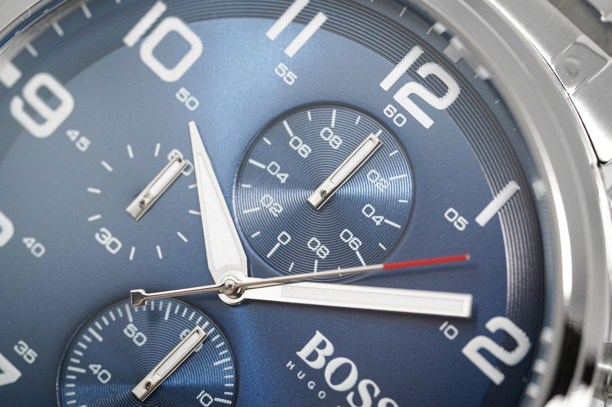 Blue Sunburst Dial With Outline. Luminous Steel Hands. Stainless Steel Hands. Date Window at 4:30.