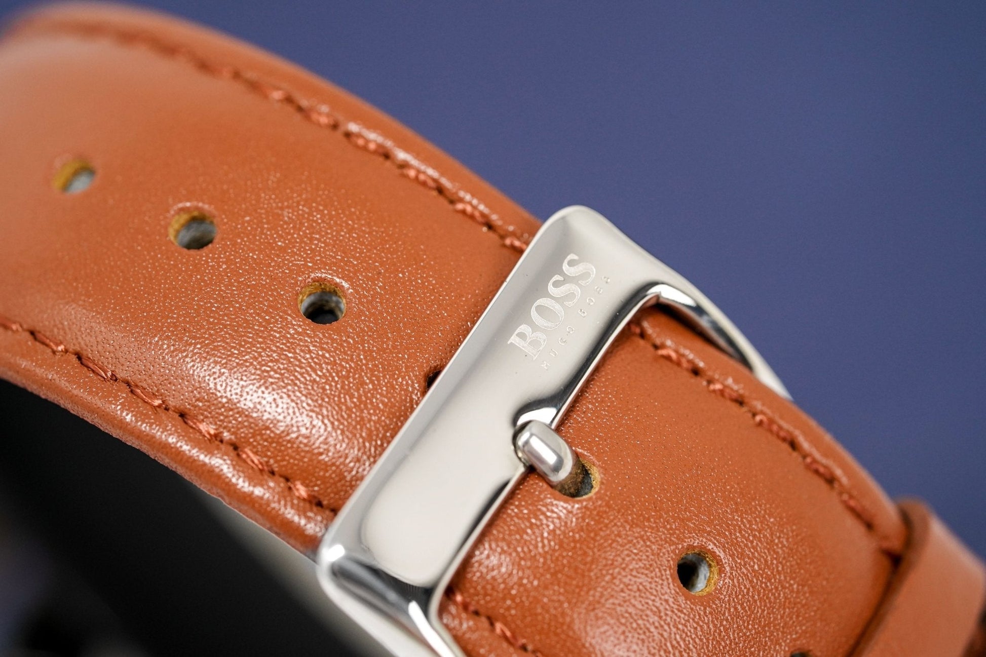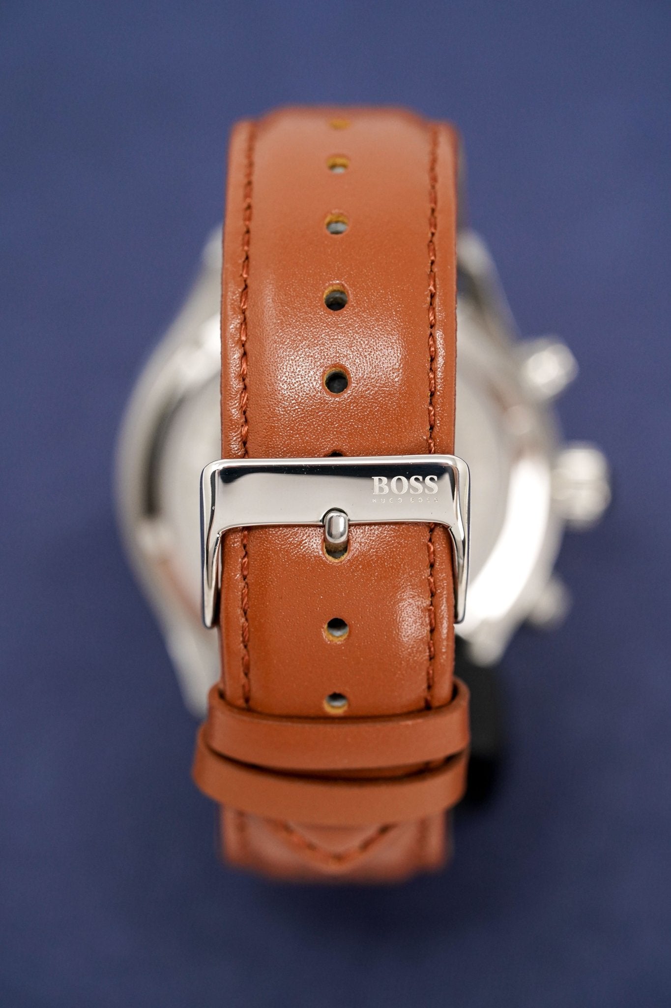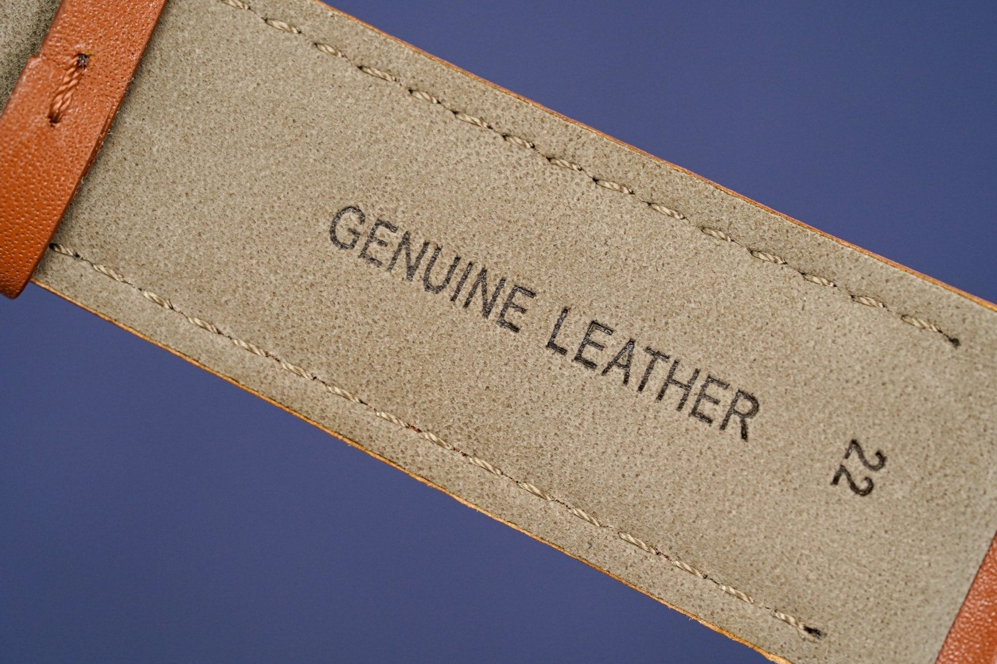 Brown Perforated Leather Strap with Stainless Steel Pin Buckle.