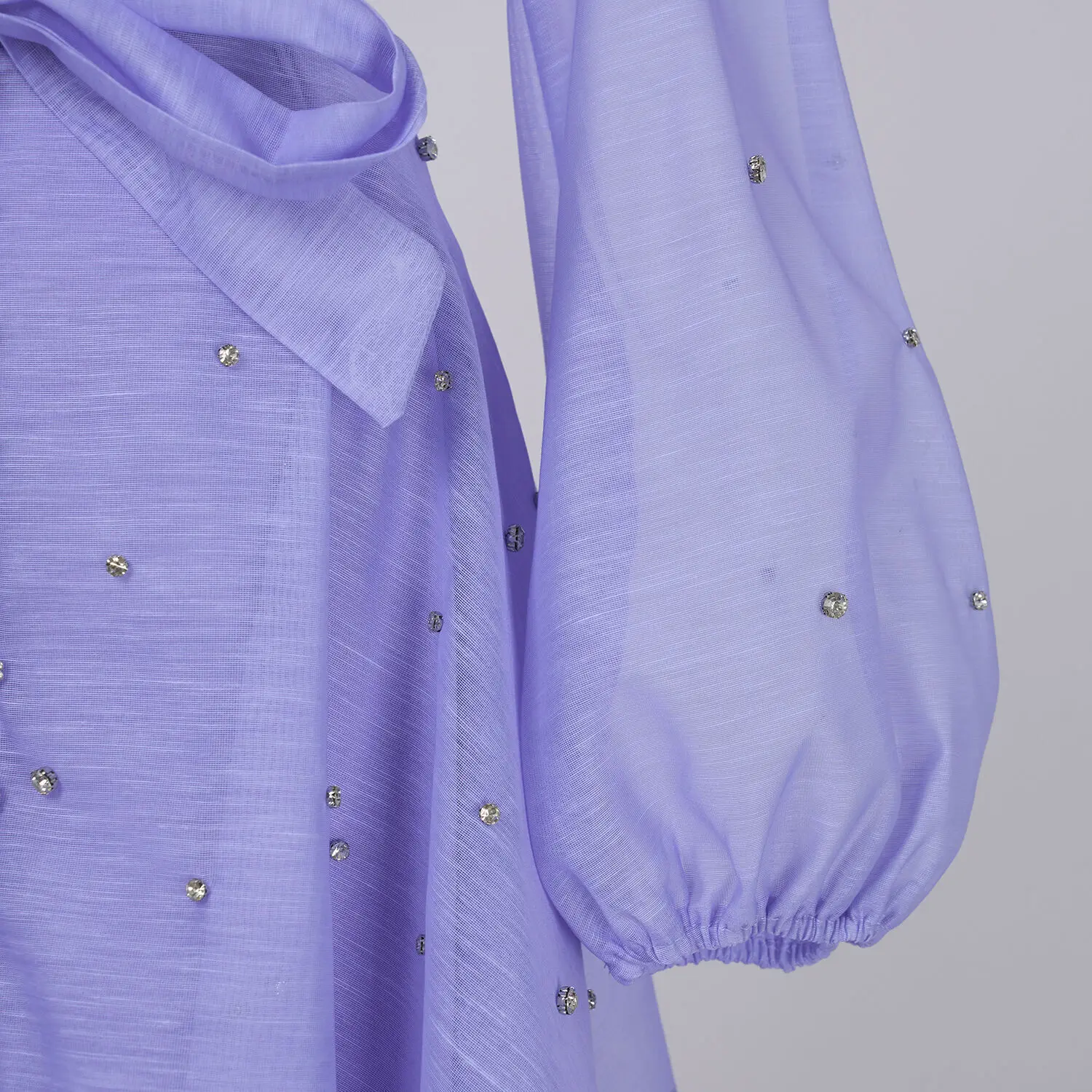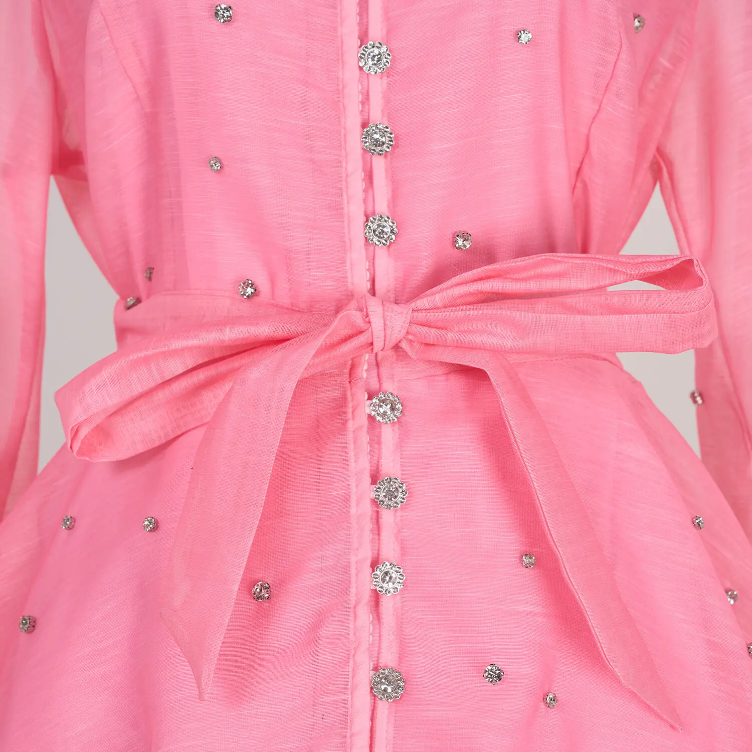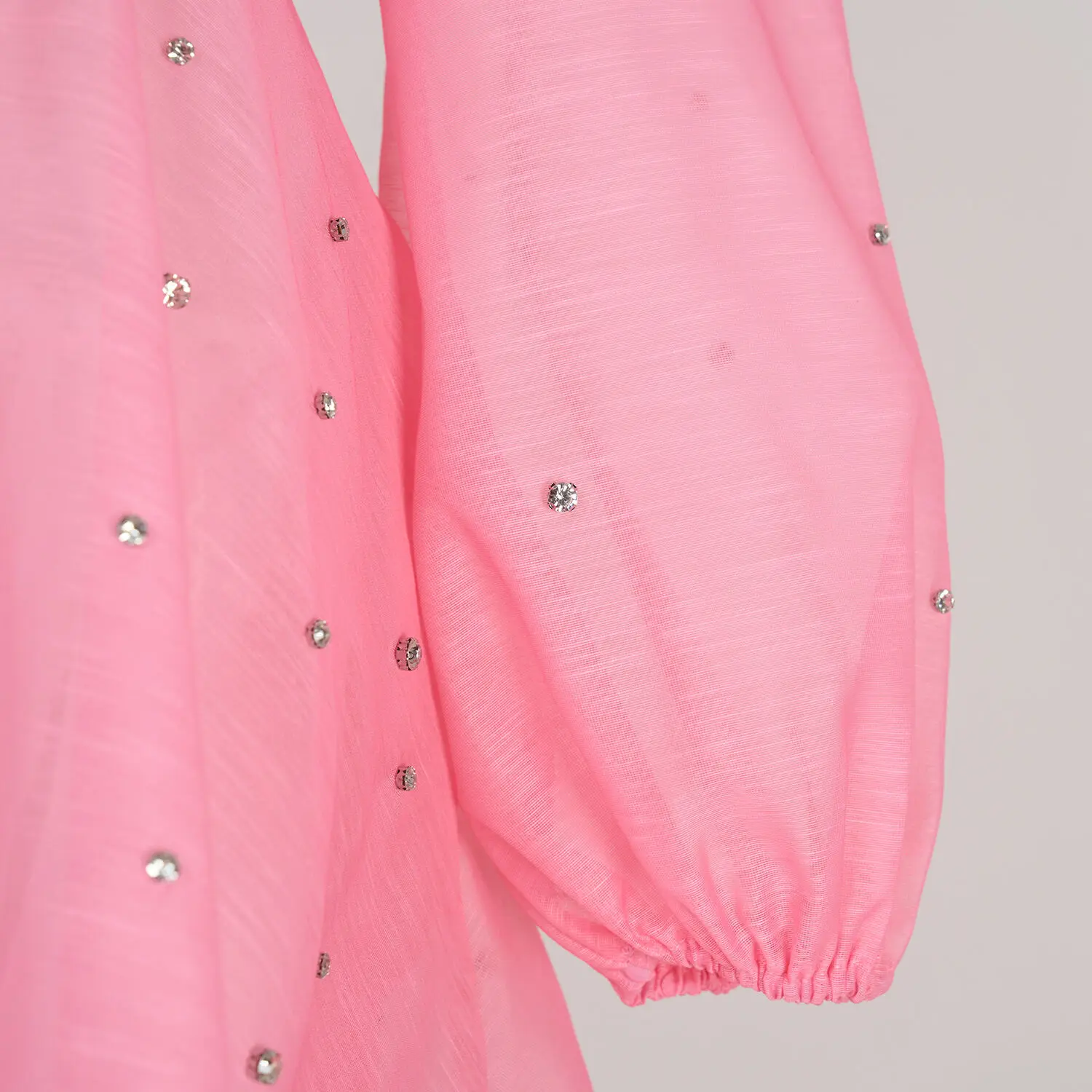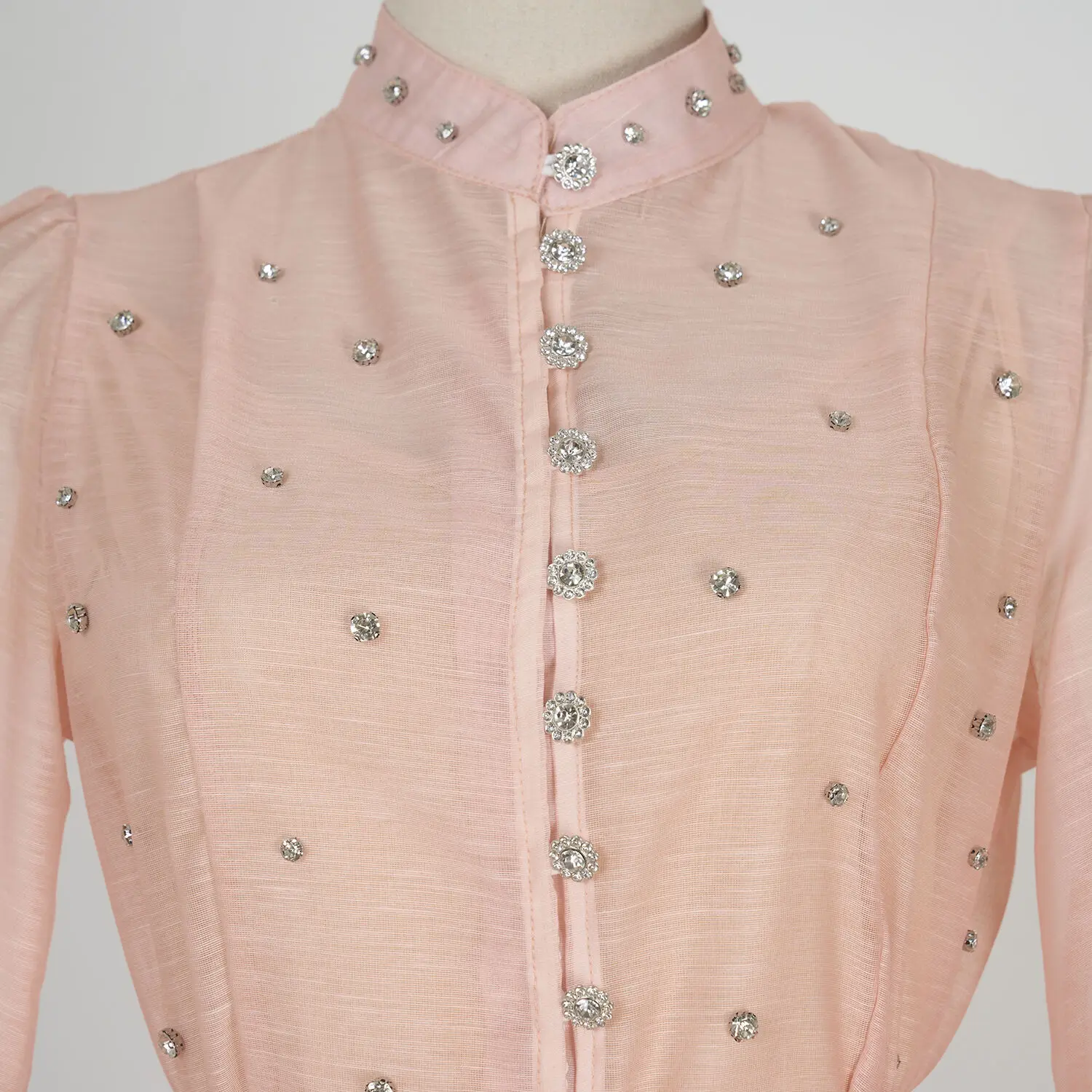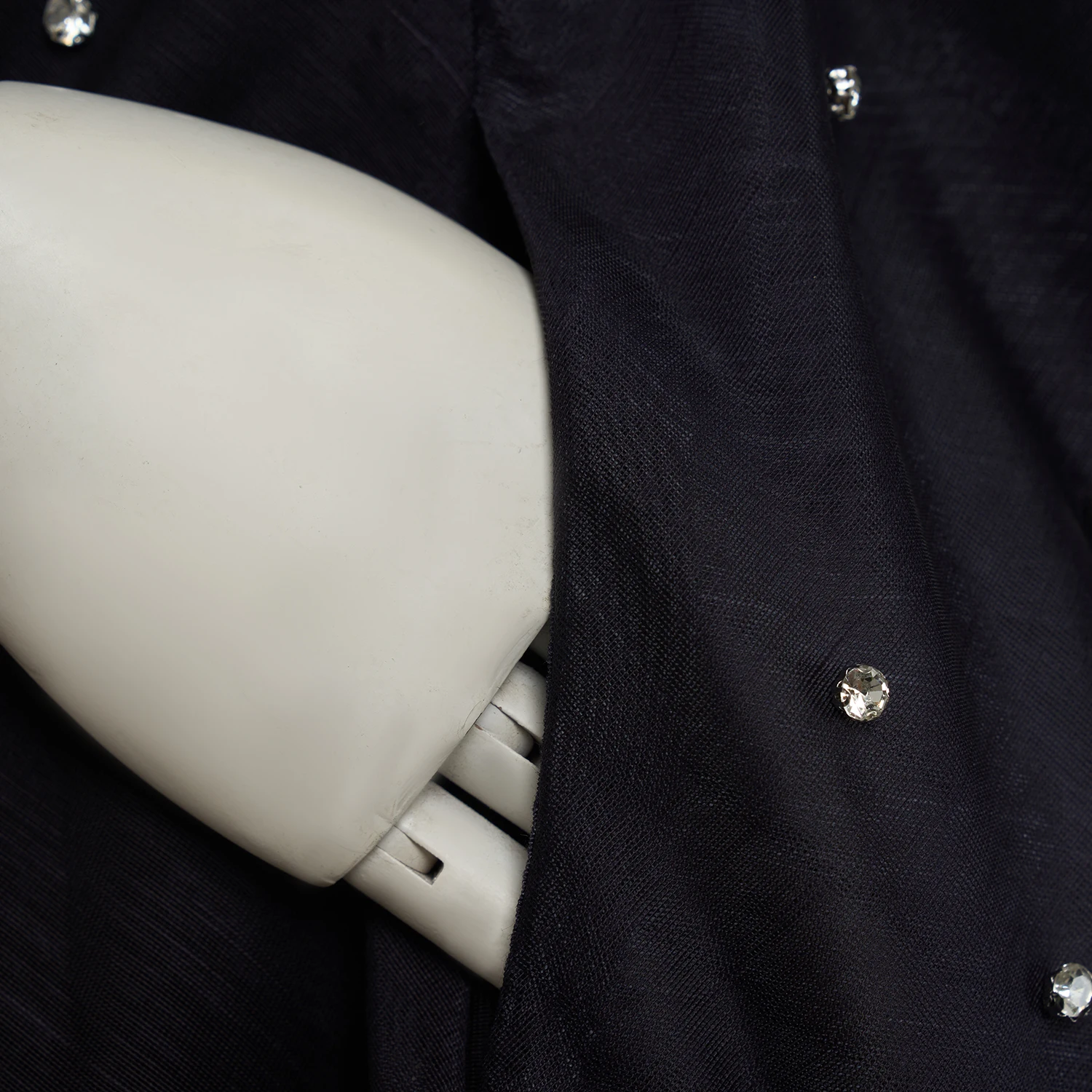 Luxury Crystal Short Dresses Women Summer Studded Diamond Stand Collar Lantern Sleeve 2025 Sping Loose Evening Party Vestidos