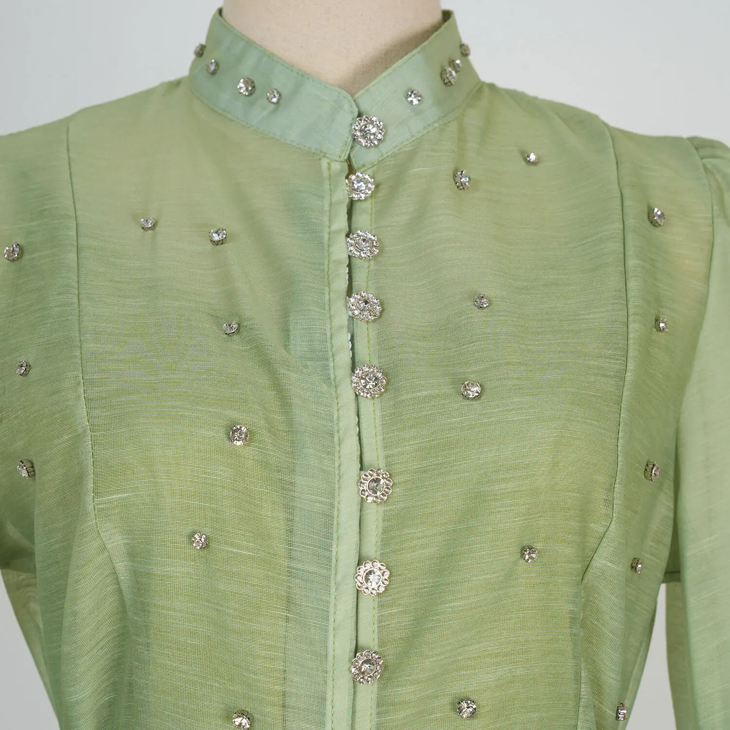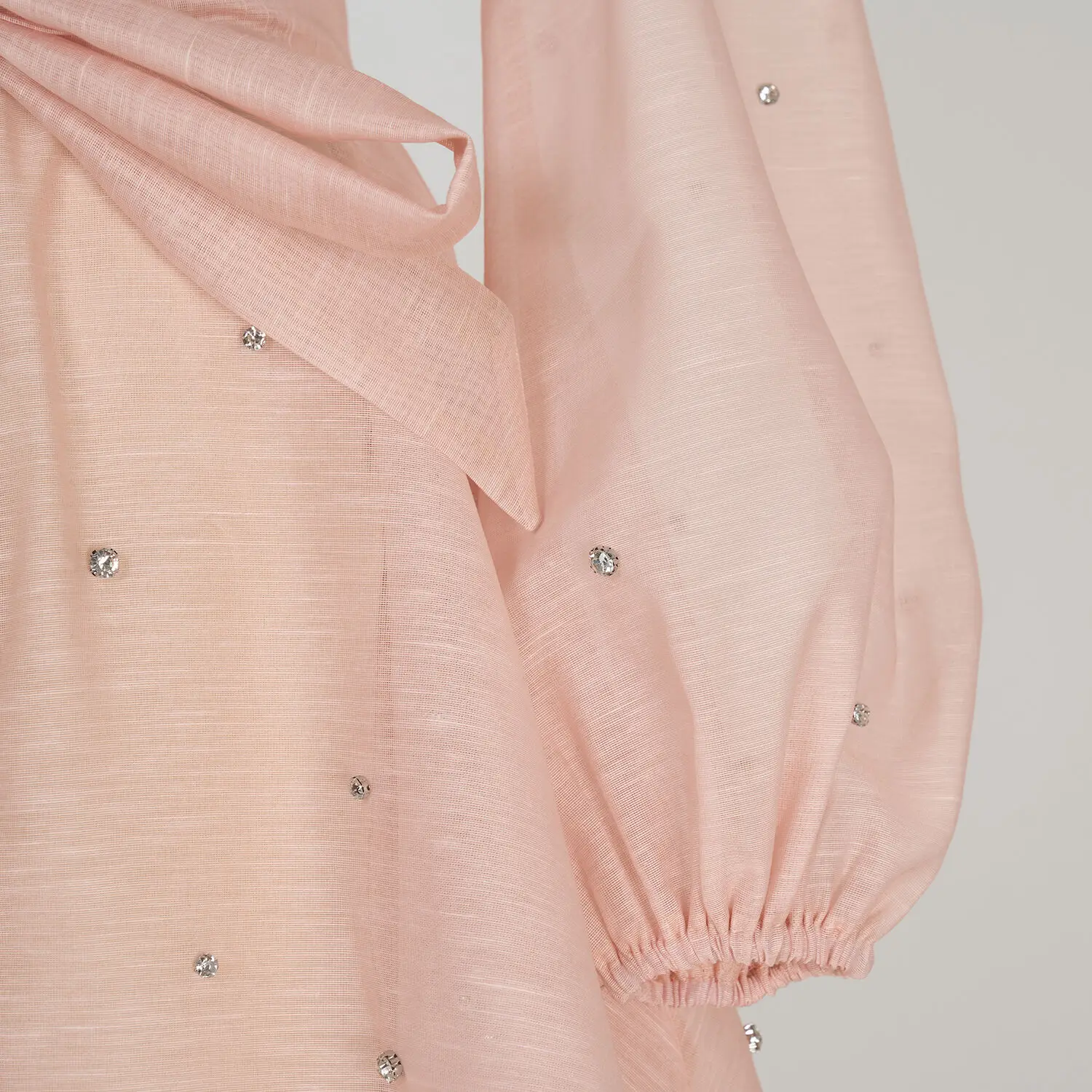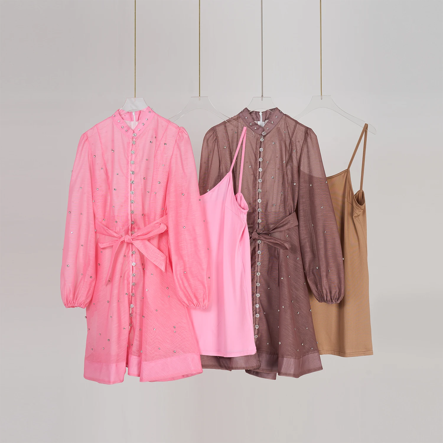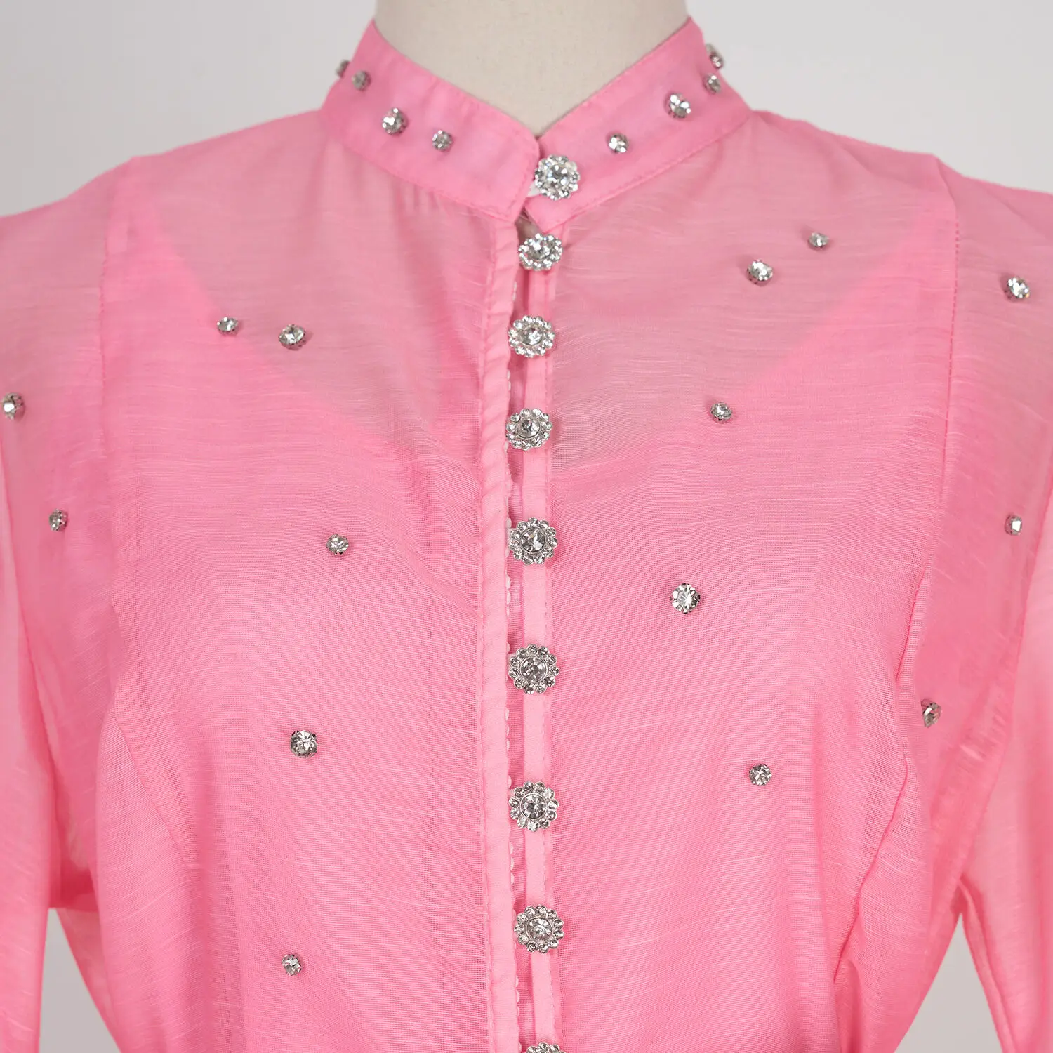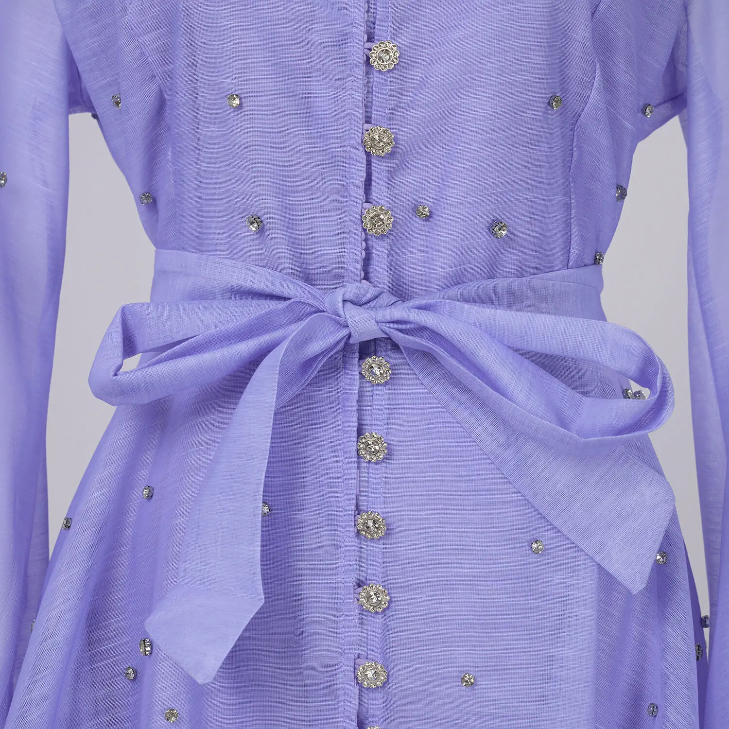 Luxury Crystal Short Dresses Women Summer Studded Diamond Stand Collar Lantern Sleeve 2025 Sping Loose Evening Party Vestidos