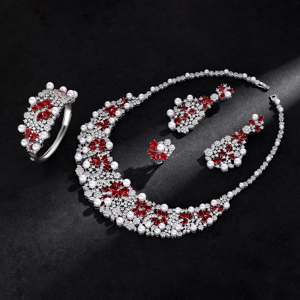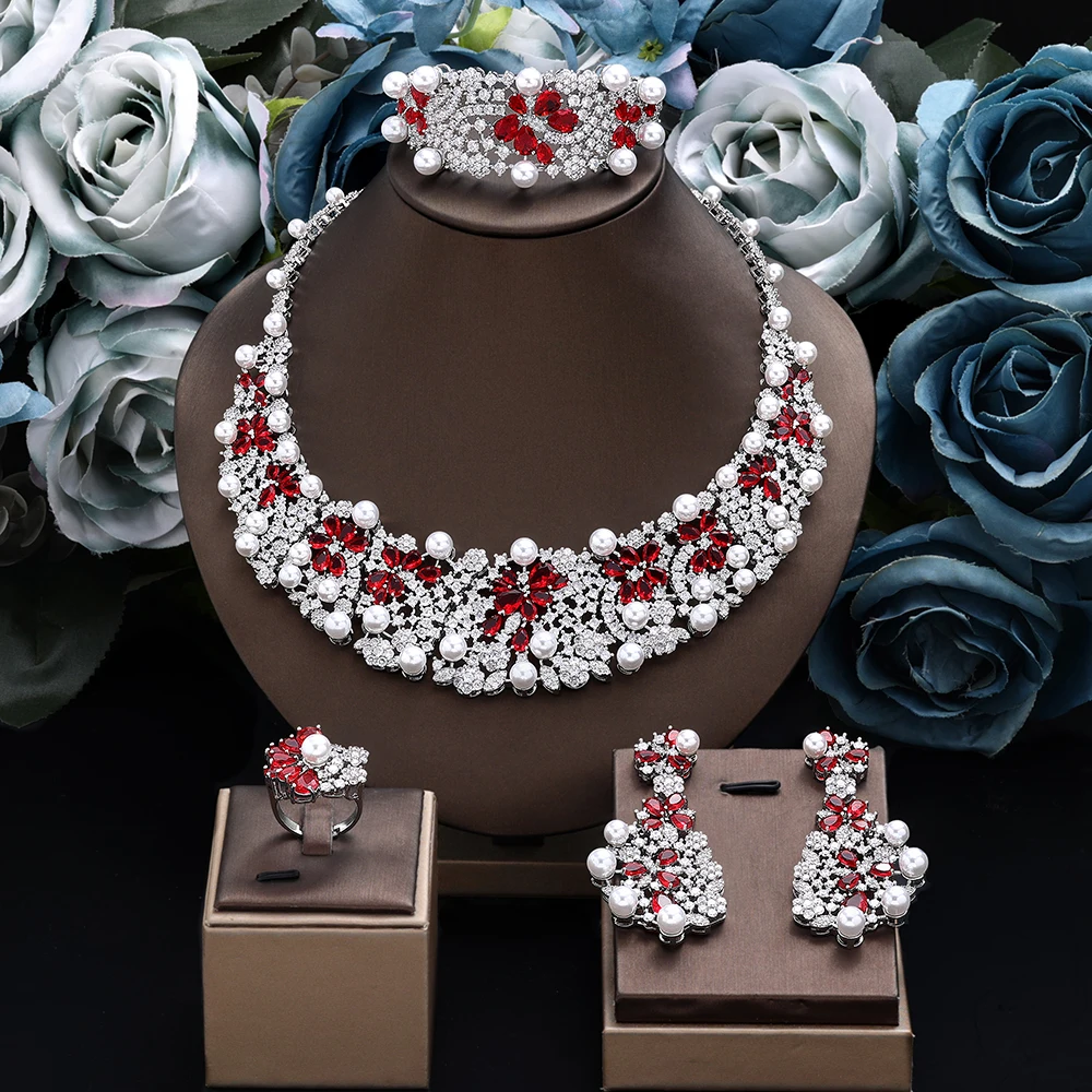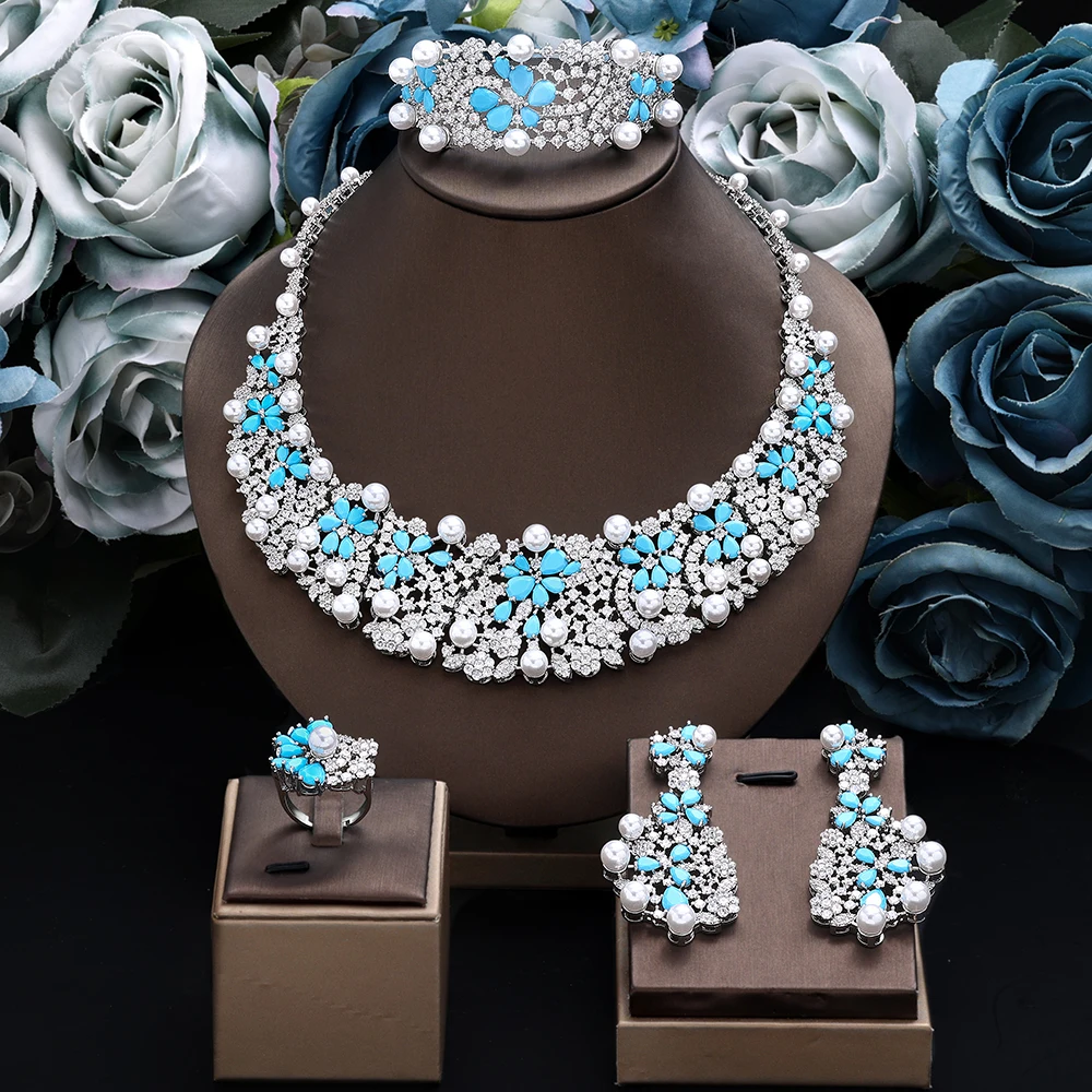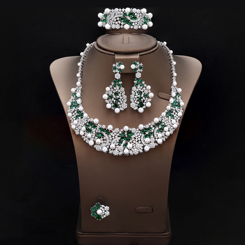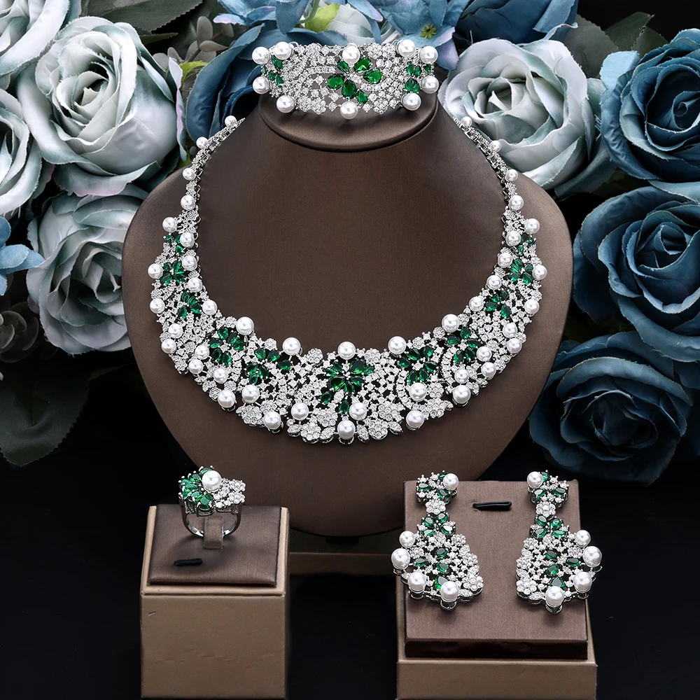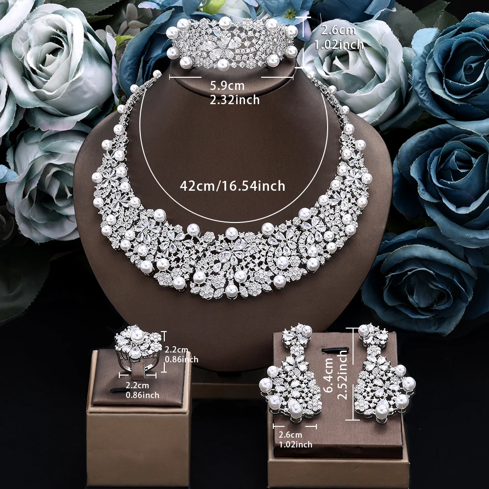 Luxury Pearl 4pcs Cubic Zircon Jewelry Set for Women