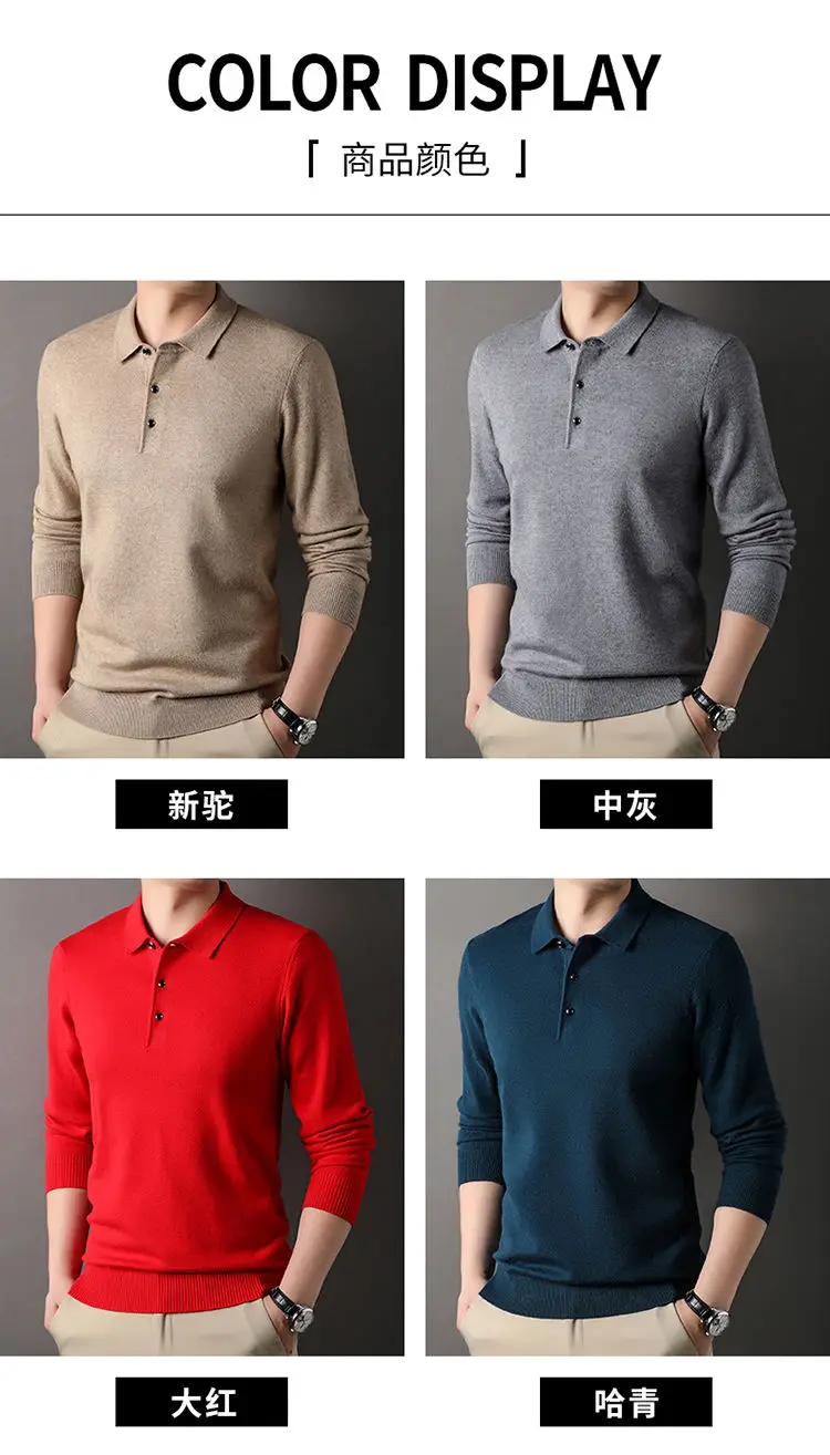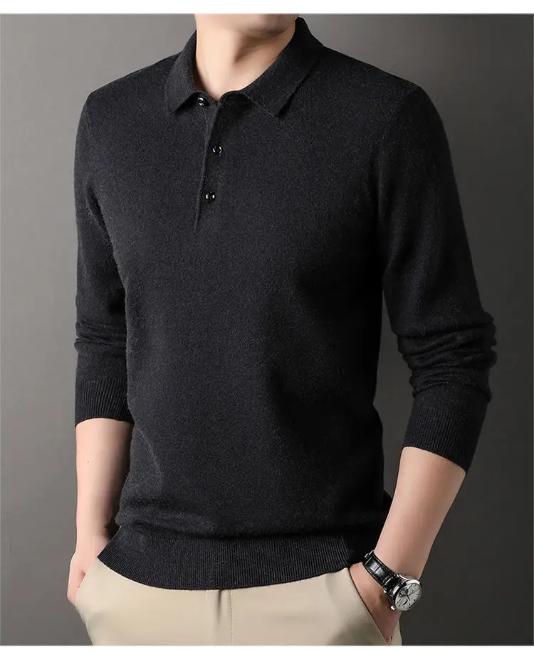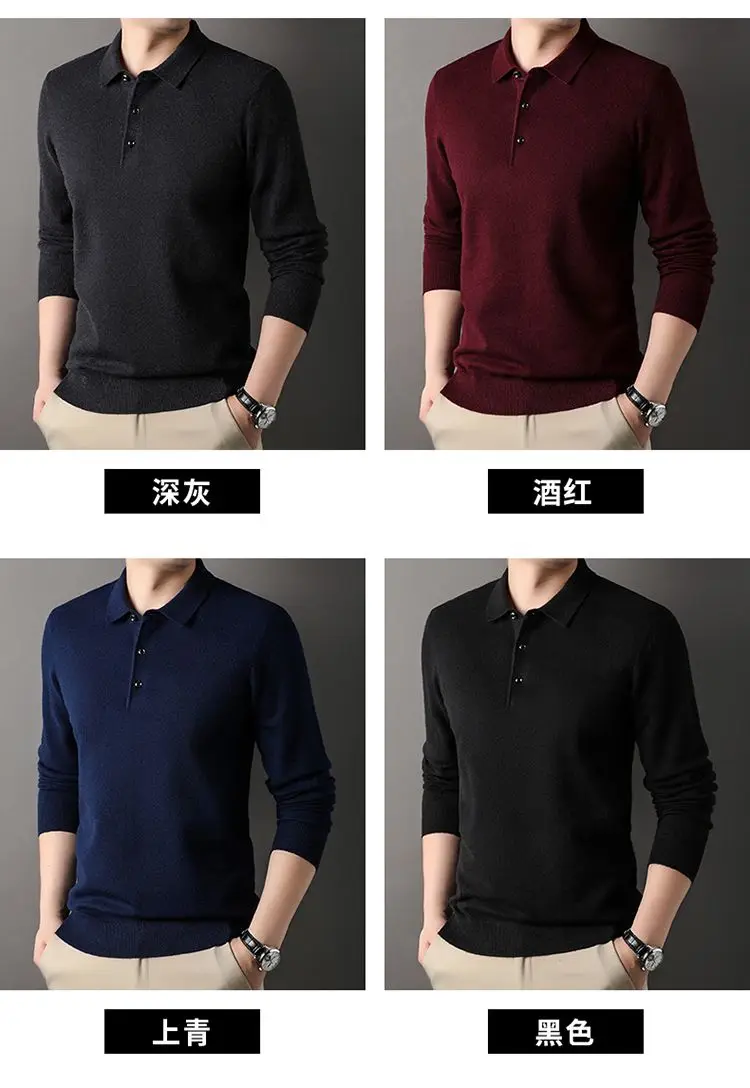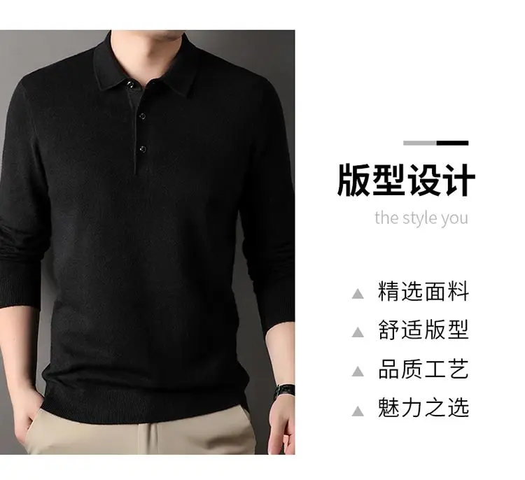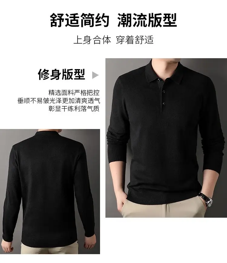 Male Polo Shirt Soft Lightweight Warm Knitted Luxury Simple Button Up Pullover 2025 Lapels Comfortable Business Sweater Clothing