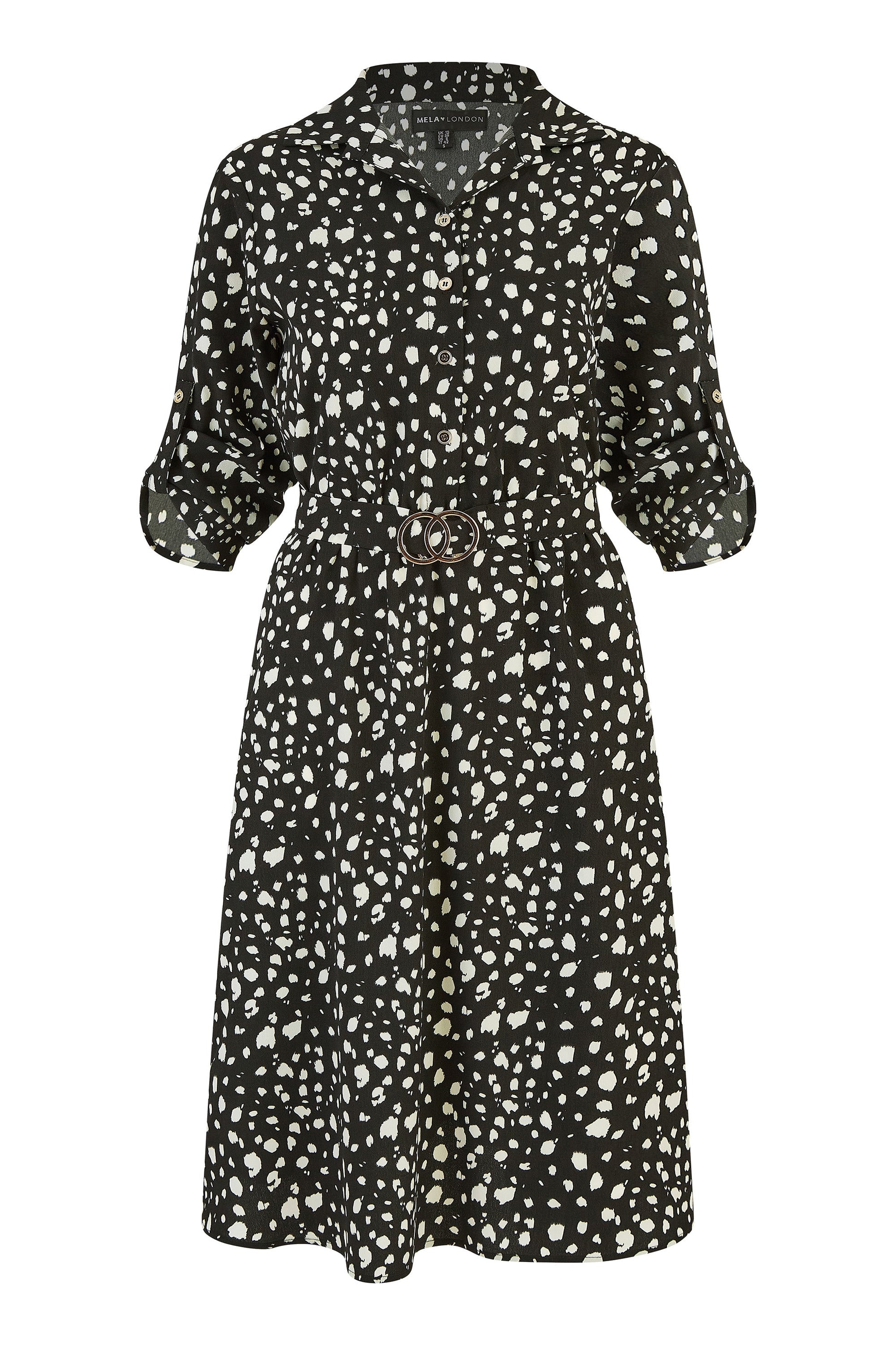 Mela Black Dash Print Skater Dress With Buckle