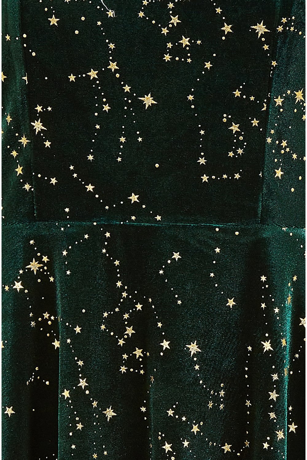 Capture the beauty of the night sky in this Green long sleeve skater dress from Mela. With a square neckline, fit flare shape and stunning velour fabric that is not only glamorous but super soft too. The all over constellation print is a unique take on sparkles for the festive season and would look great at your Christmas party styles with gold shoes and accessories.