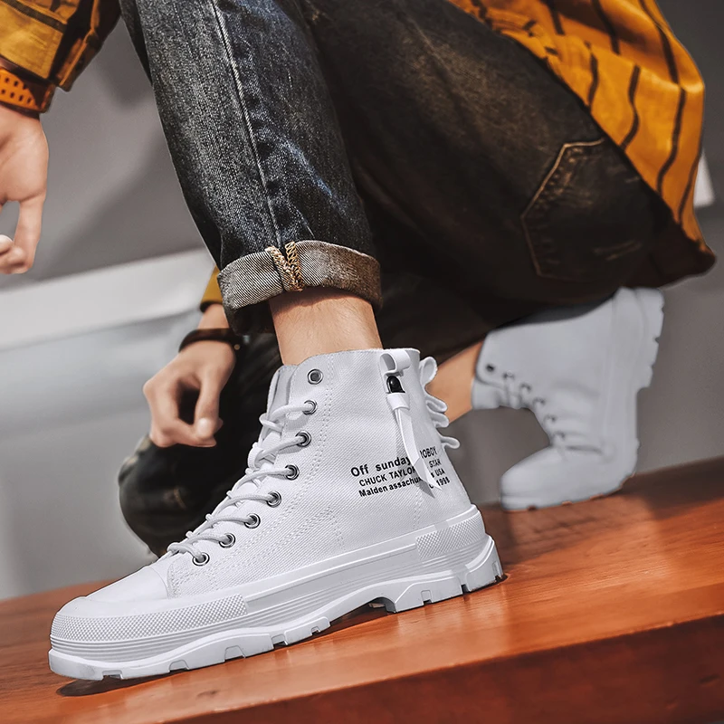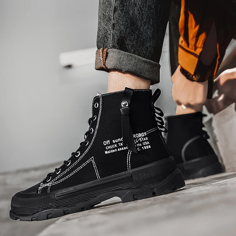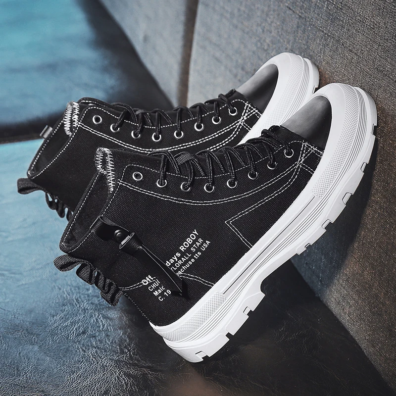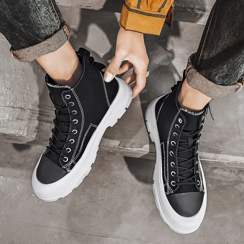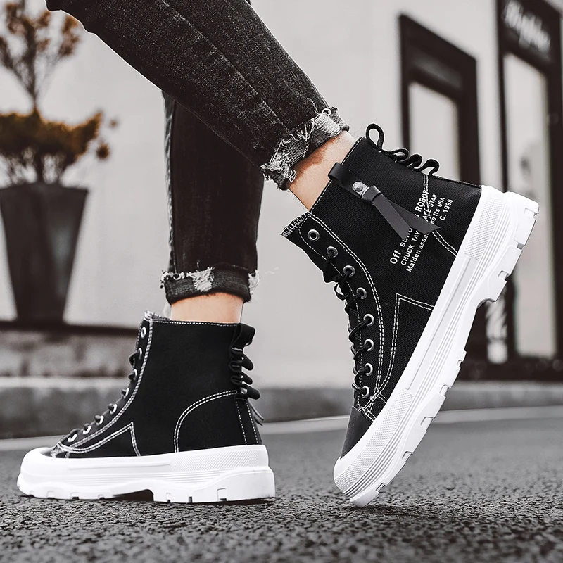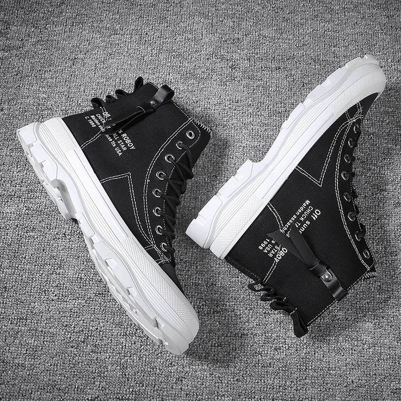 Men Casual High Top Sneakers Platform Skateboard Shoes Lace Up Ankle Boots Outdoor Comfortable Cool Canvas Shoes For Male 39-44