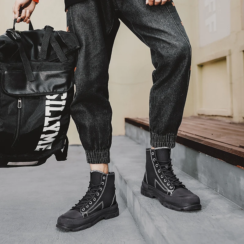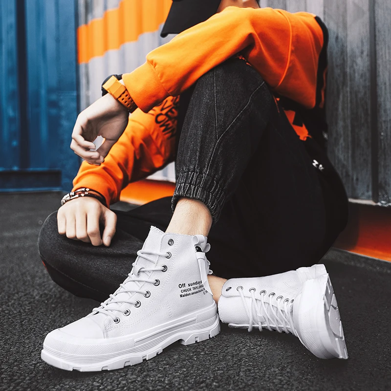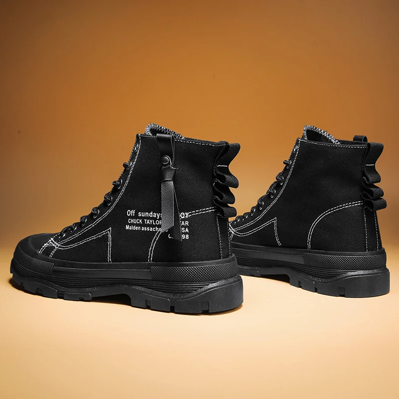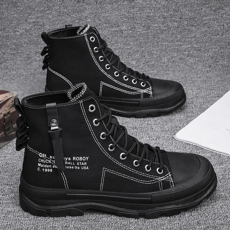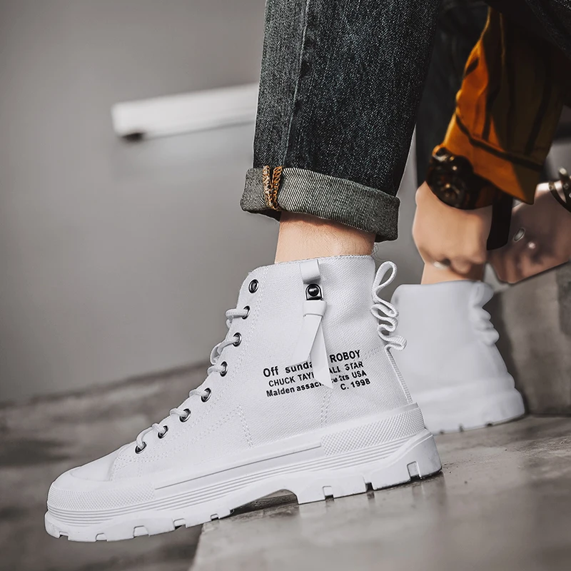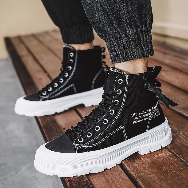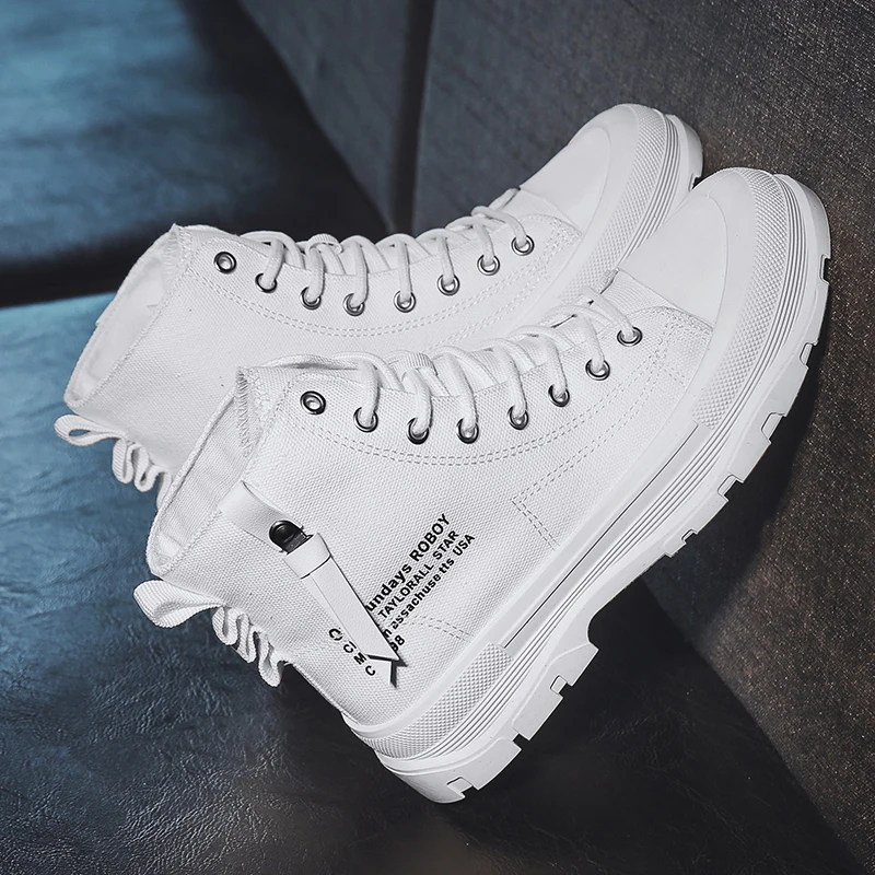 Men Casual High Top Sneakers Platform Skateboard Shoes Lace Up Ankle Boots Outdoor Comfortable Cool Canvas Shoes For Male 39-44
