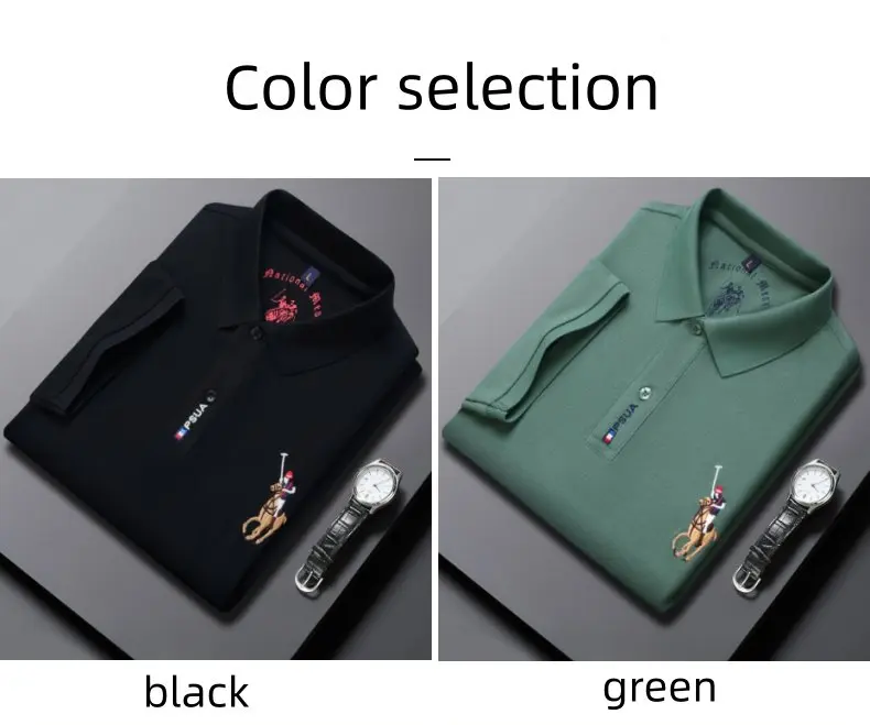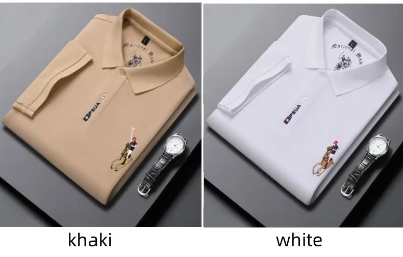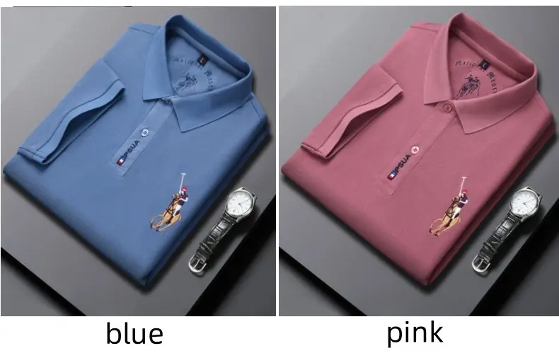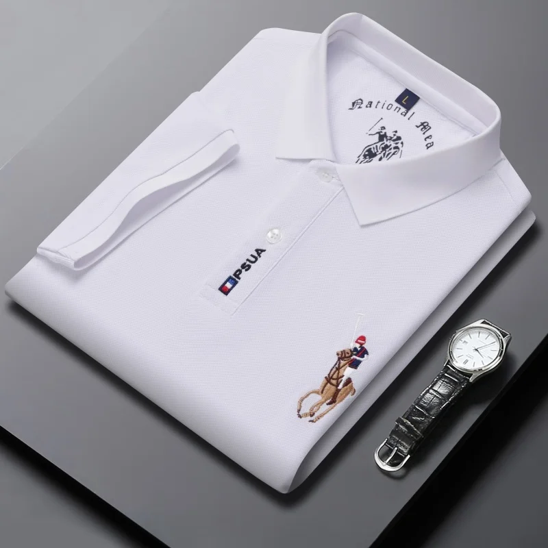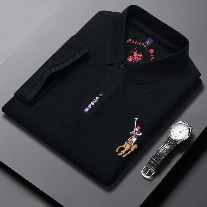 Men's High-quality Summer New Embroidered Lapel Men's Short Sleeved Polo Shirt with Tassel Solid Color Business Casual Men's Pol