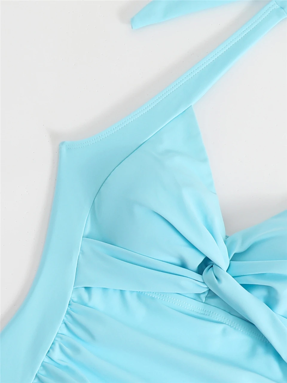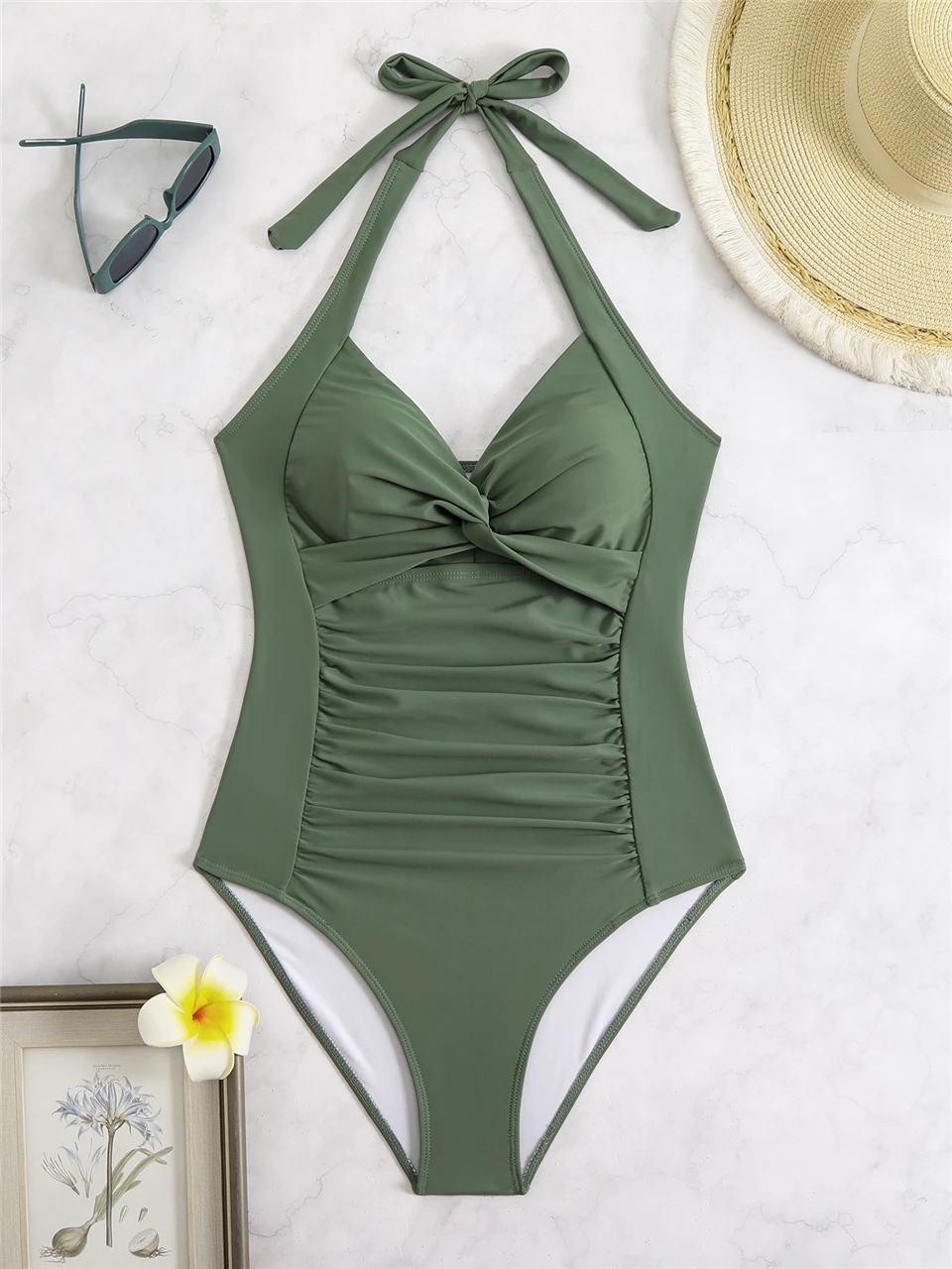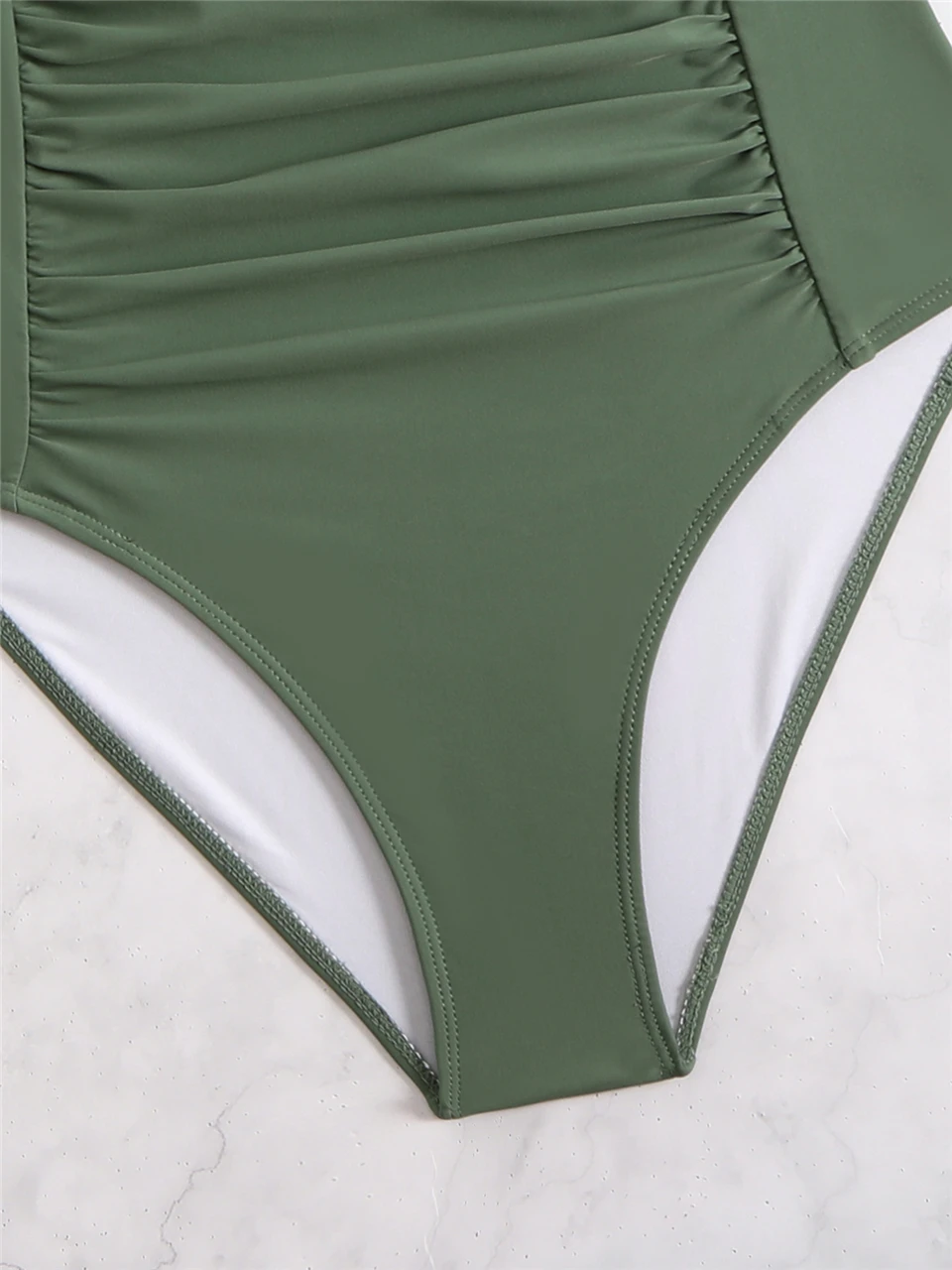 Model Number: Plain Ruched Fashion Swimsuit Women 2025 One Piece Lace Up Swimwear