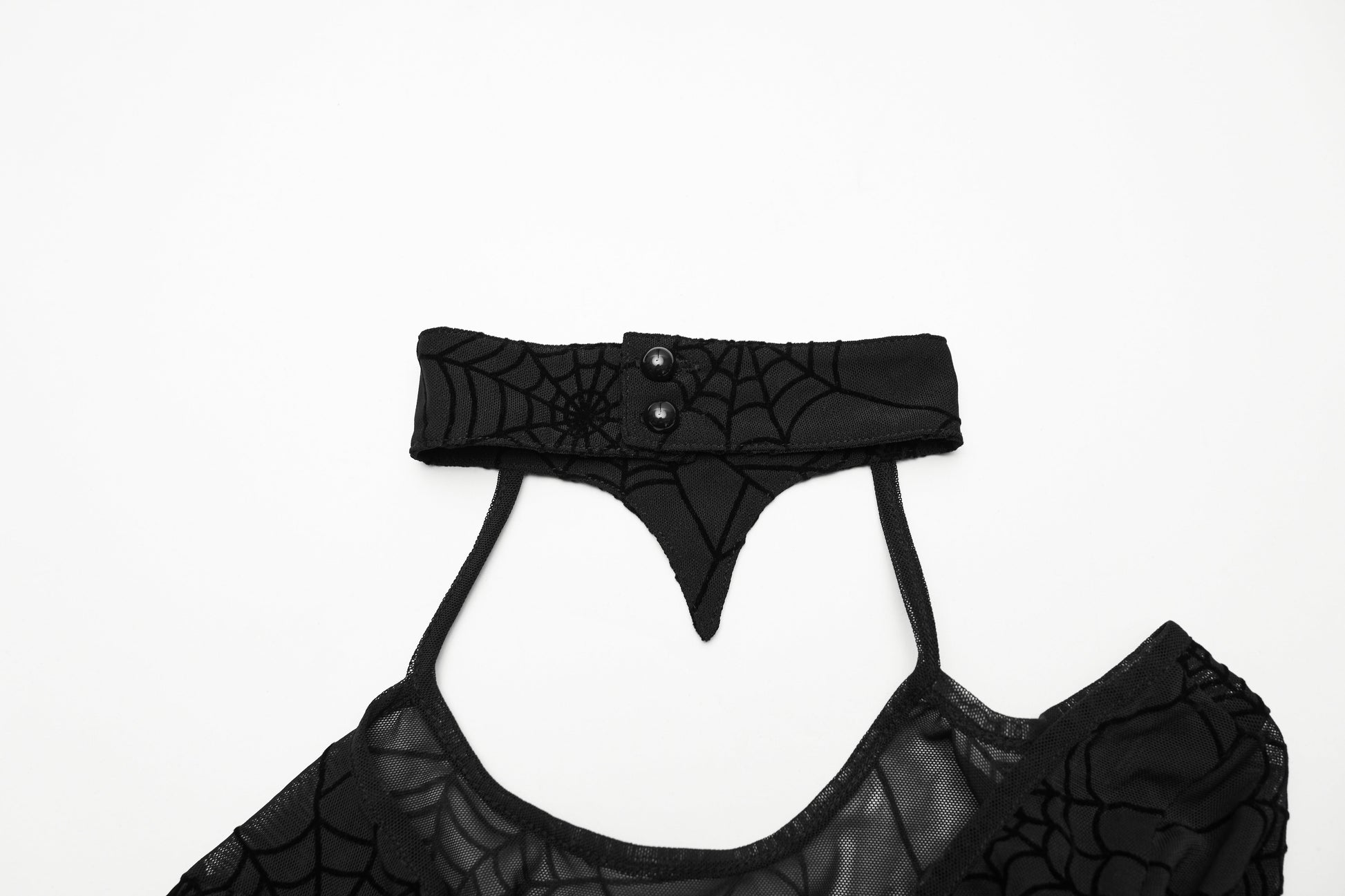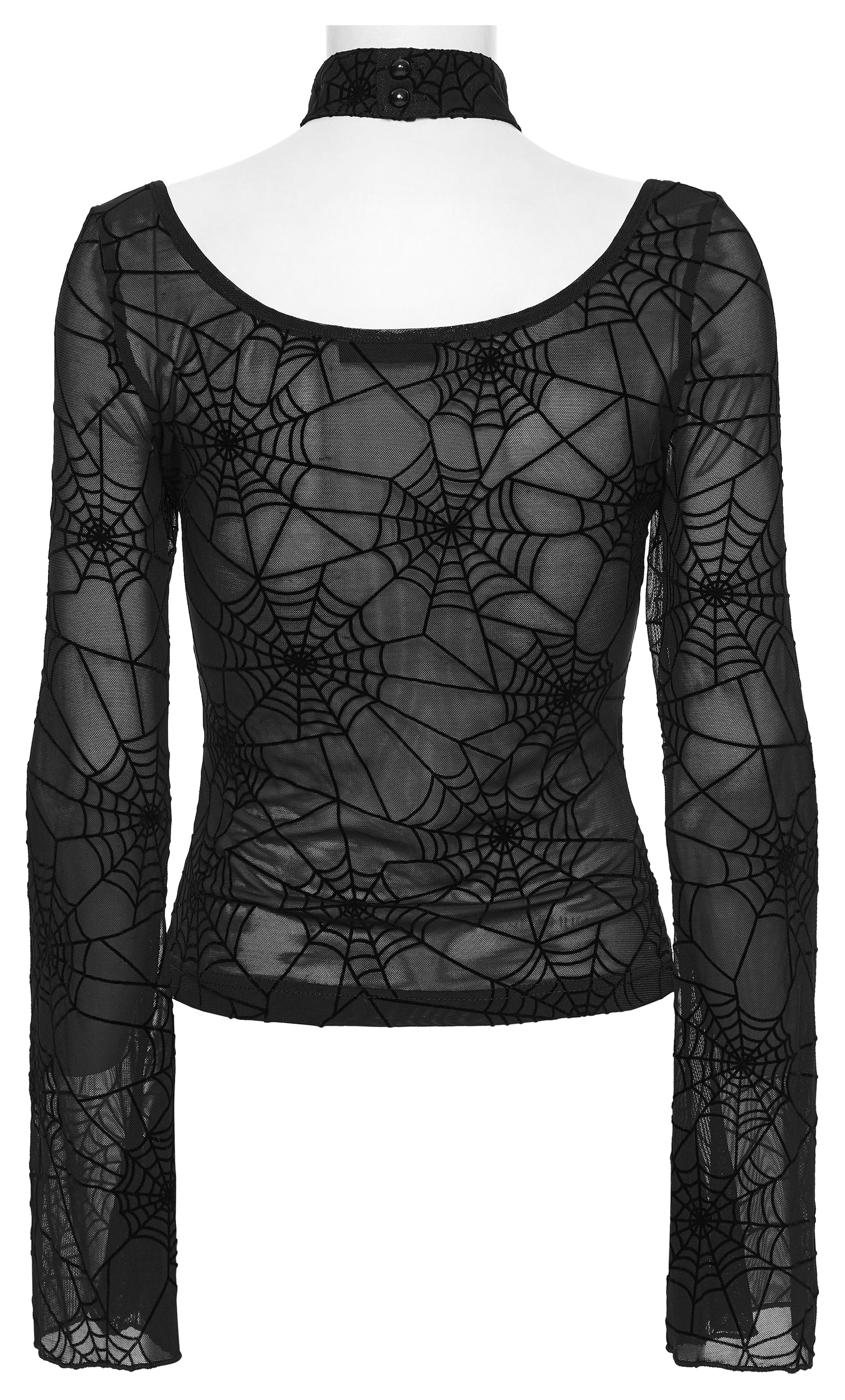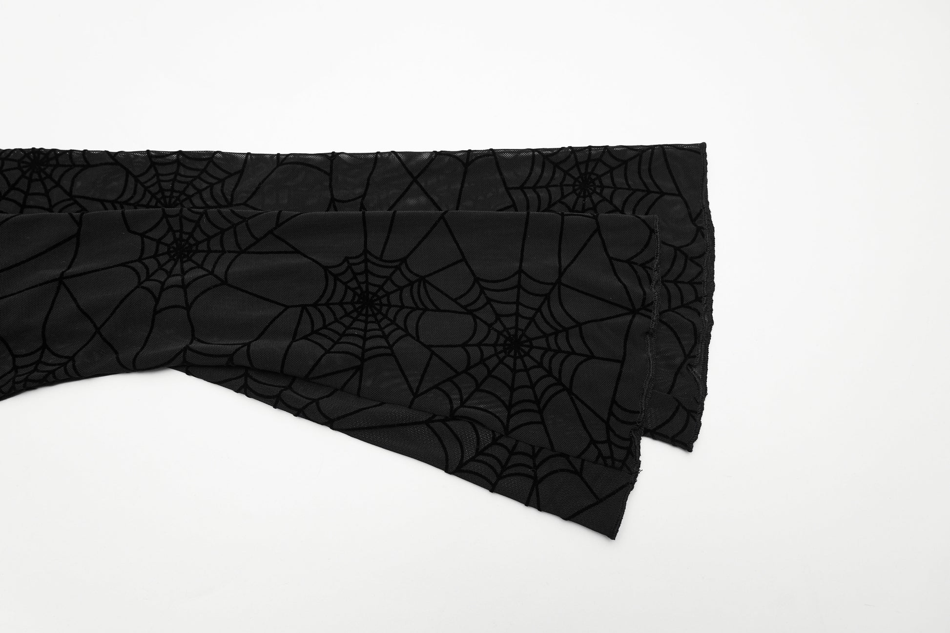 Spin your own web of dark elegance in the Punk Rave Lilith Gothic Spider Web T-Shirt. This alluring sheer mesh top features soft stretch fabric printed with intricate spider web patterns, giving your look a bold and artistic gothic edge.