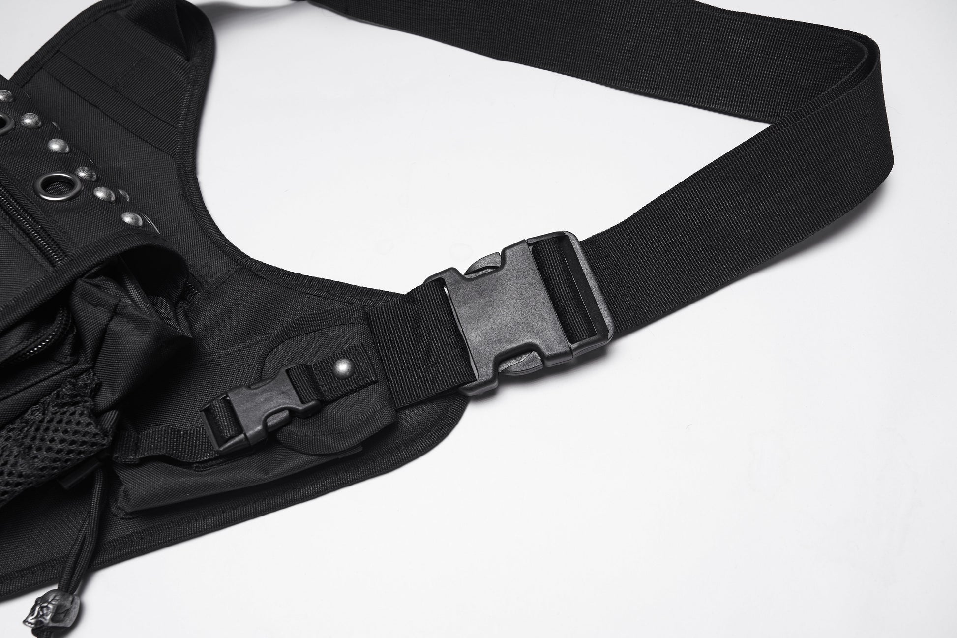 Go full tactical goth with this rugged canvas skull leg bag by Punk Rave. Loaded with punk utility, it features skull emblems, mesh pockets, heavy-duty rivets and an adjustable leg and waist fit. Ideal for festivals, urban roaming or everyday goth gear.