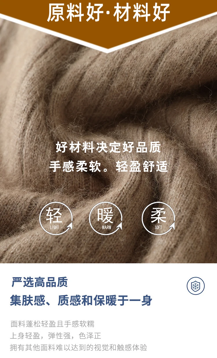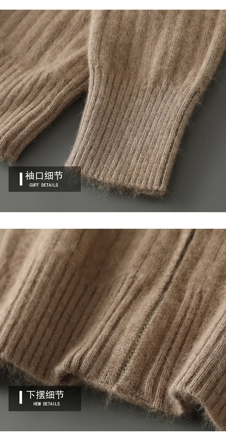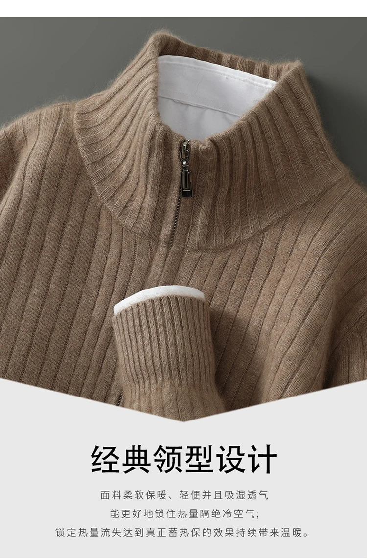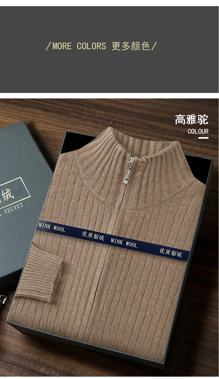 S-XXXL New Men's Knitted Cardigan 100% Mink Cashmere Sweater Business Long Sleeve Men's Half High Collar Sweater Regular style