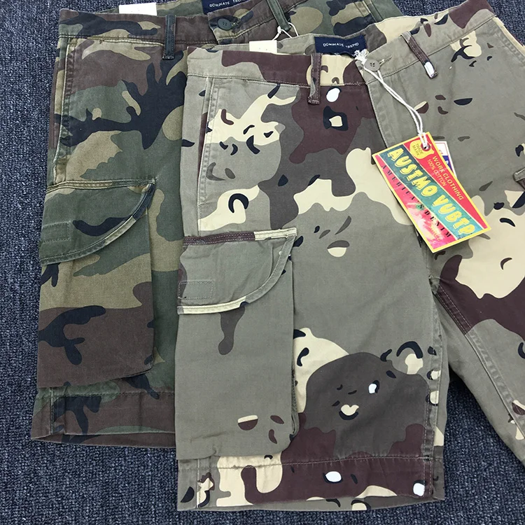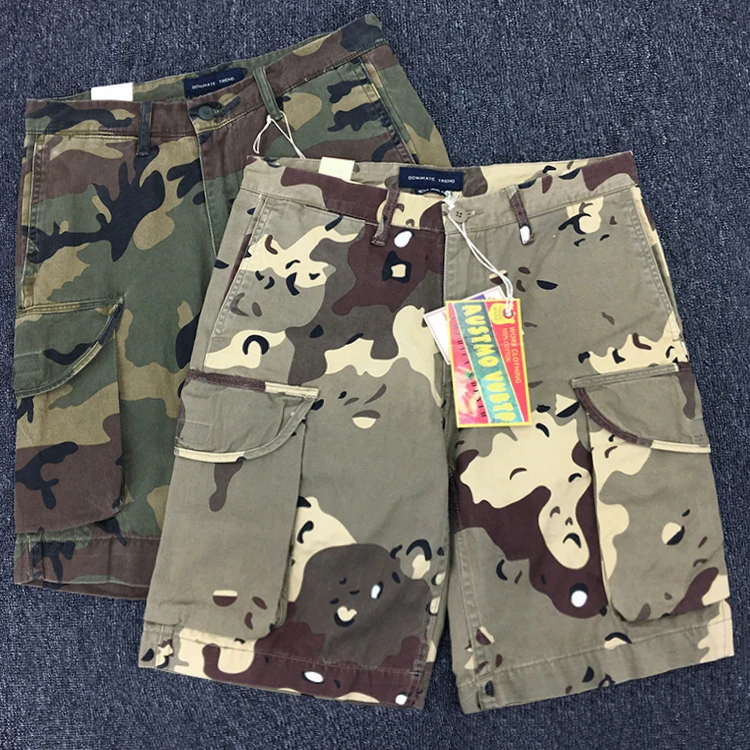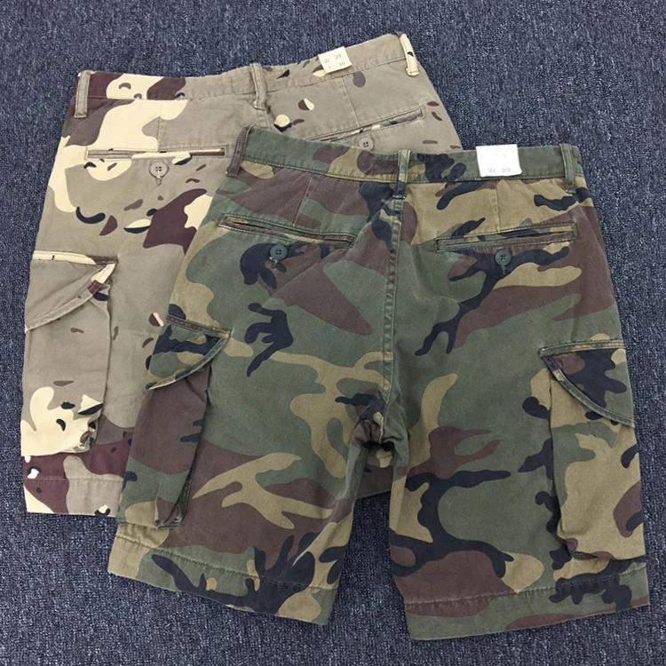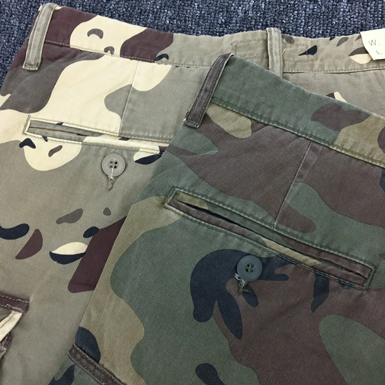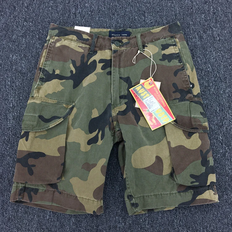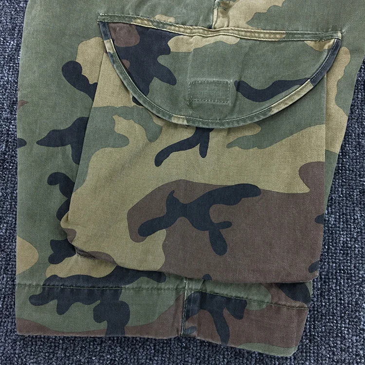 Summer New American Retro Heavyweight Camouflage Cargo Shorts Men's Pure Cotton Washed Loose Multi-pocket Casual 5-point Pants