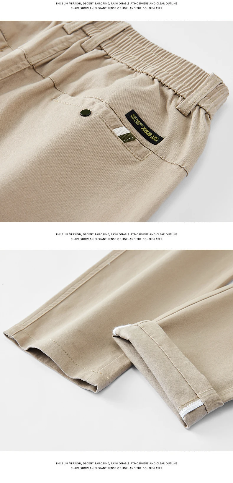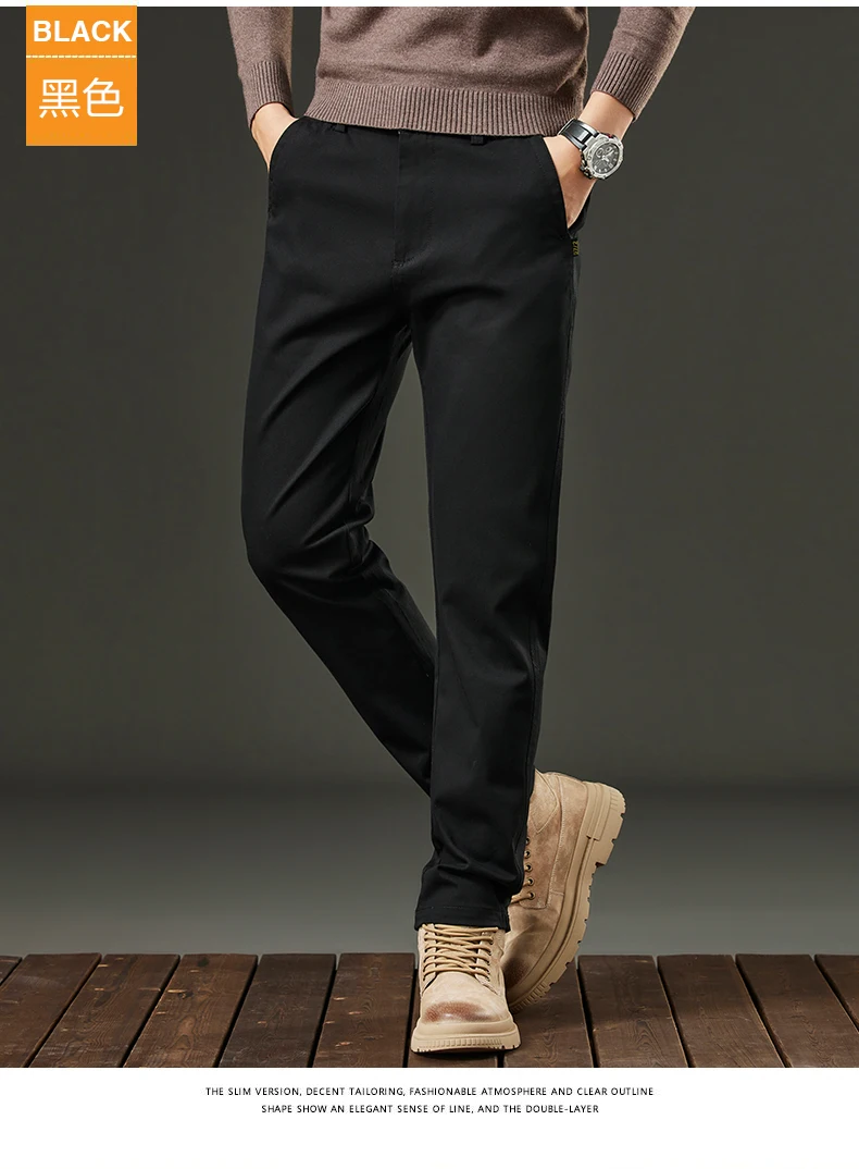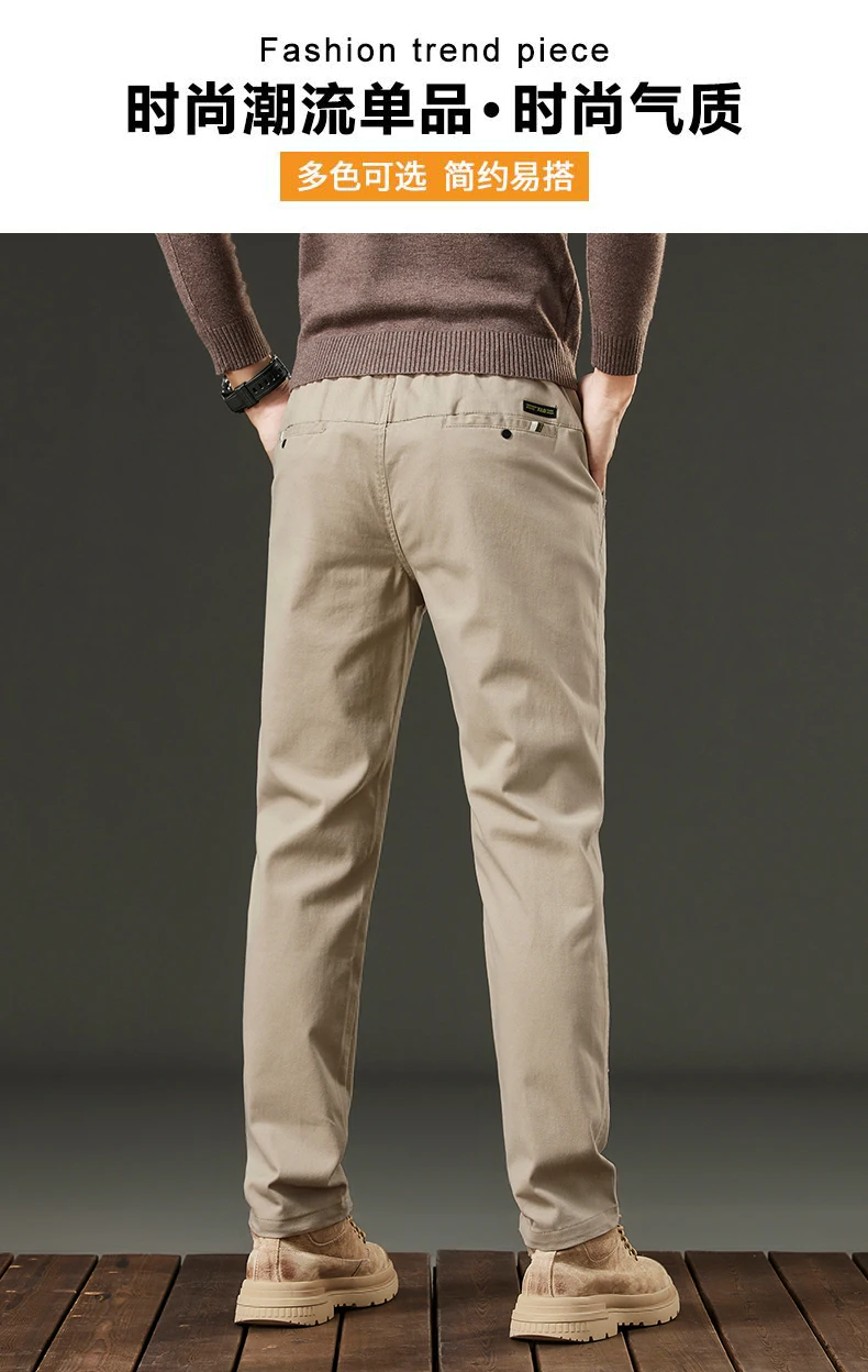 Threeproof Men's Pants Straight Fit Cotton Casual Trousers Male Elastic Waist Stretch Spring Antifouling Work Business Oil Proof