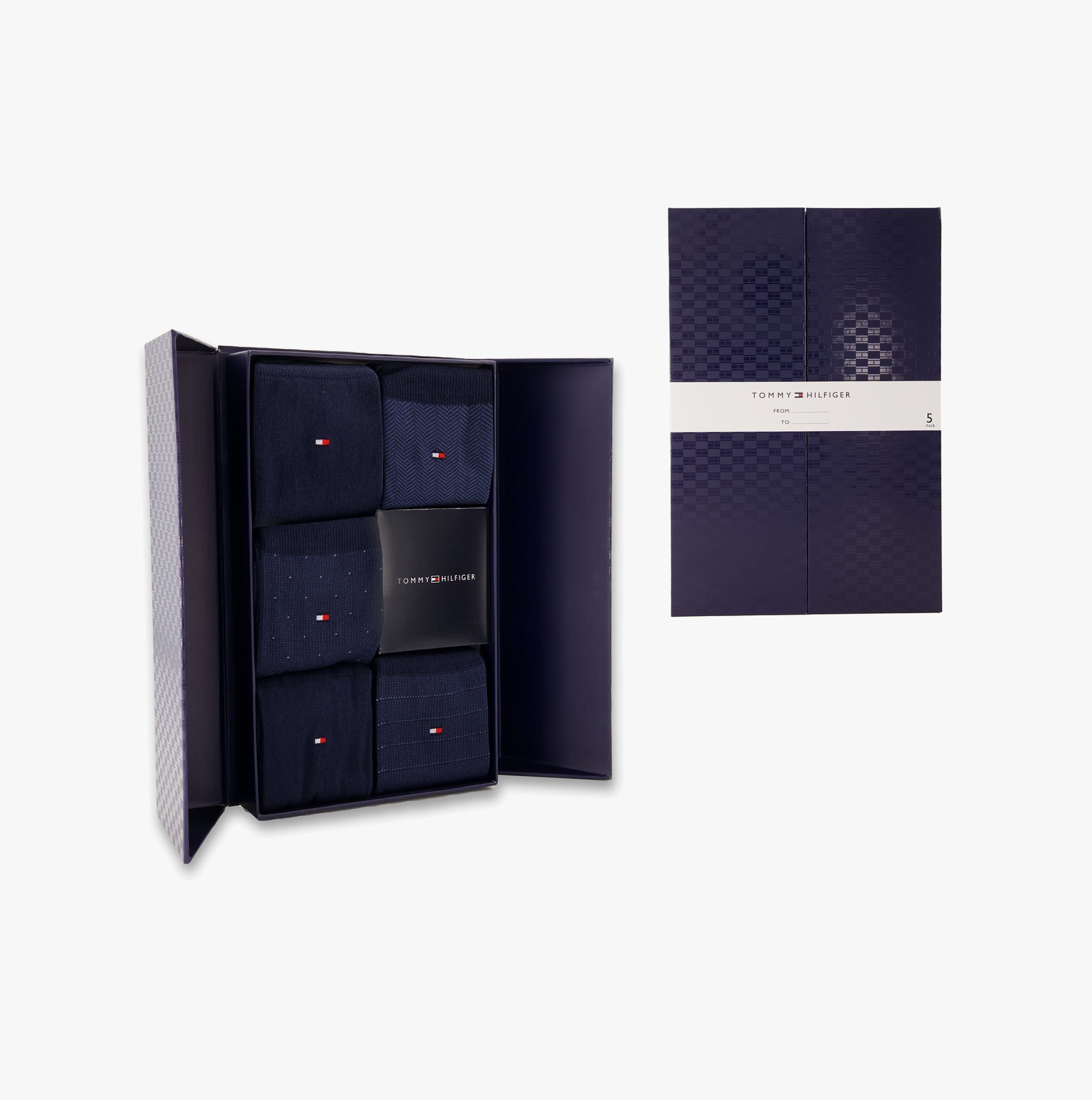 Tommy Hilfiger 5 Pack Giftbox Herringbone Mens Socks Navy