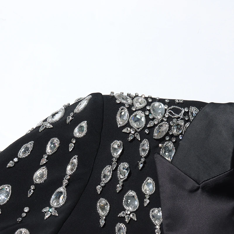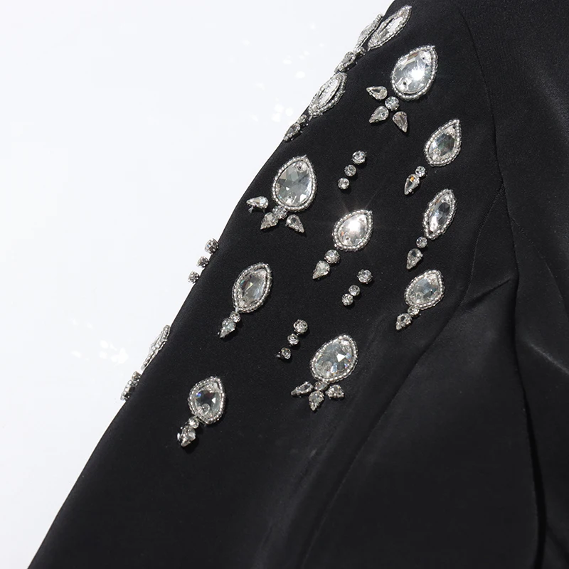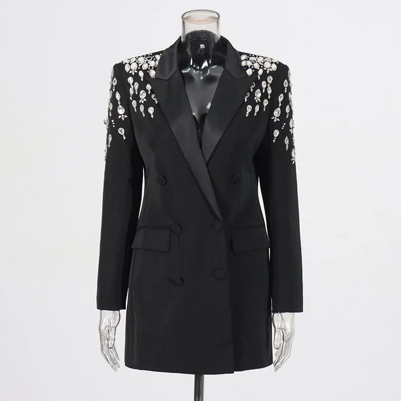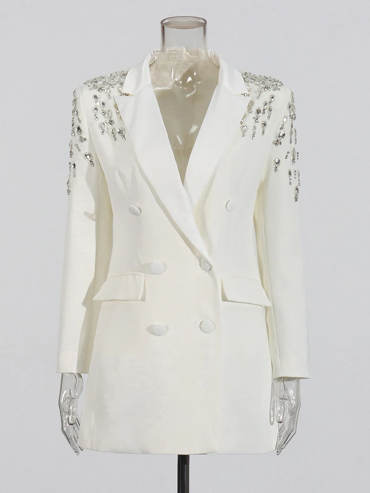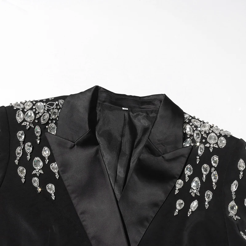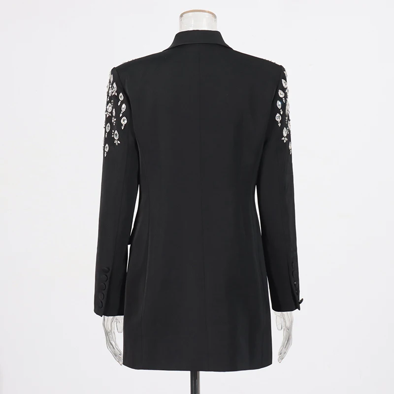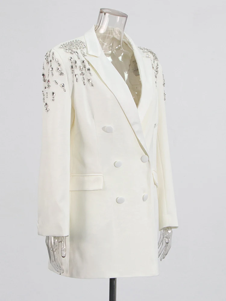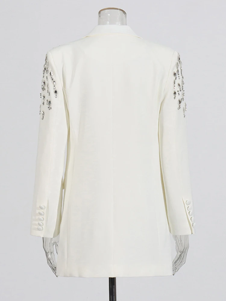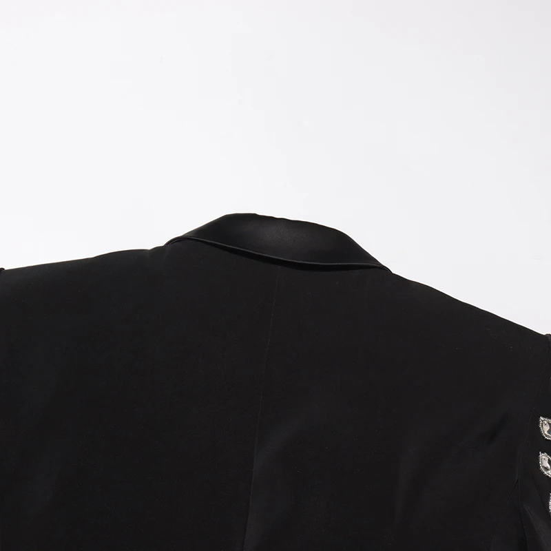 TWOTWINSTYLE Solid Patchwork Diamonds Chic Blazer For Women Notched Collar Long Sleeve Spliced Button Slimming Blazers Female