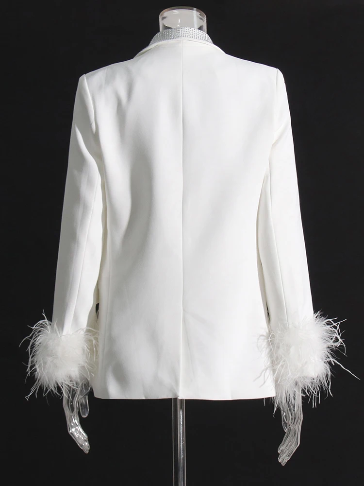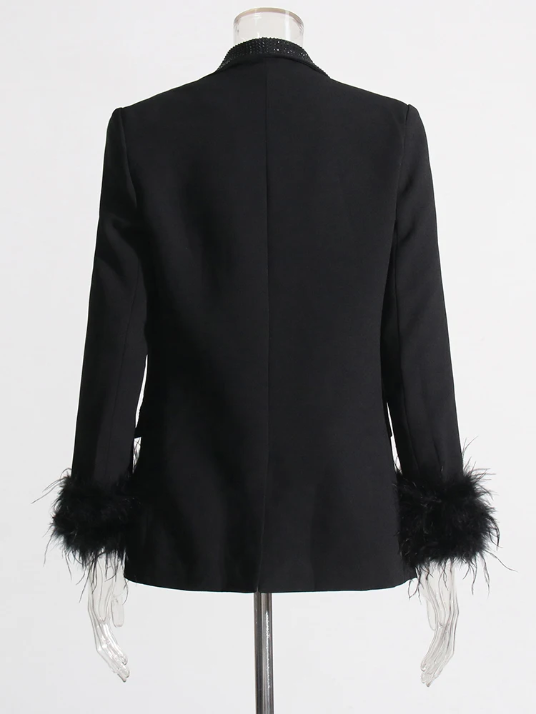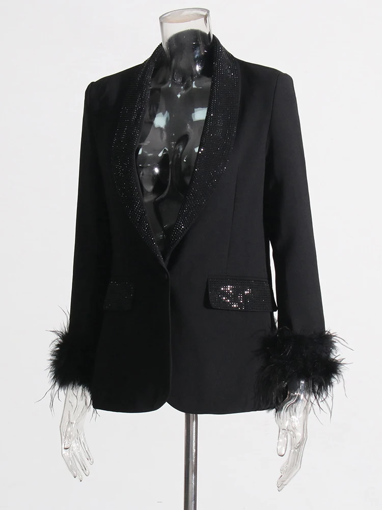 TWOTWINSTYLE Temperament Loose Blazers For Women Shawl Collar Long Sleeve Spliced Feather Chic Blazer Female Fashion Clothing